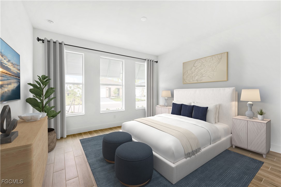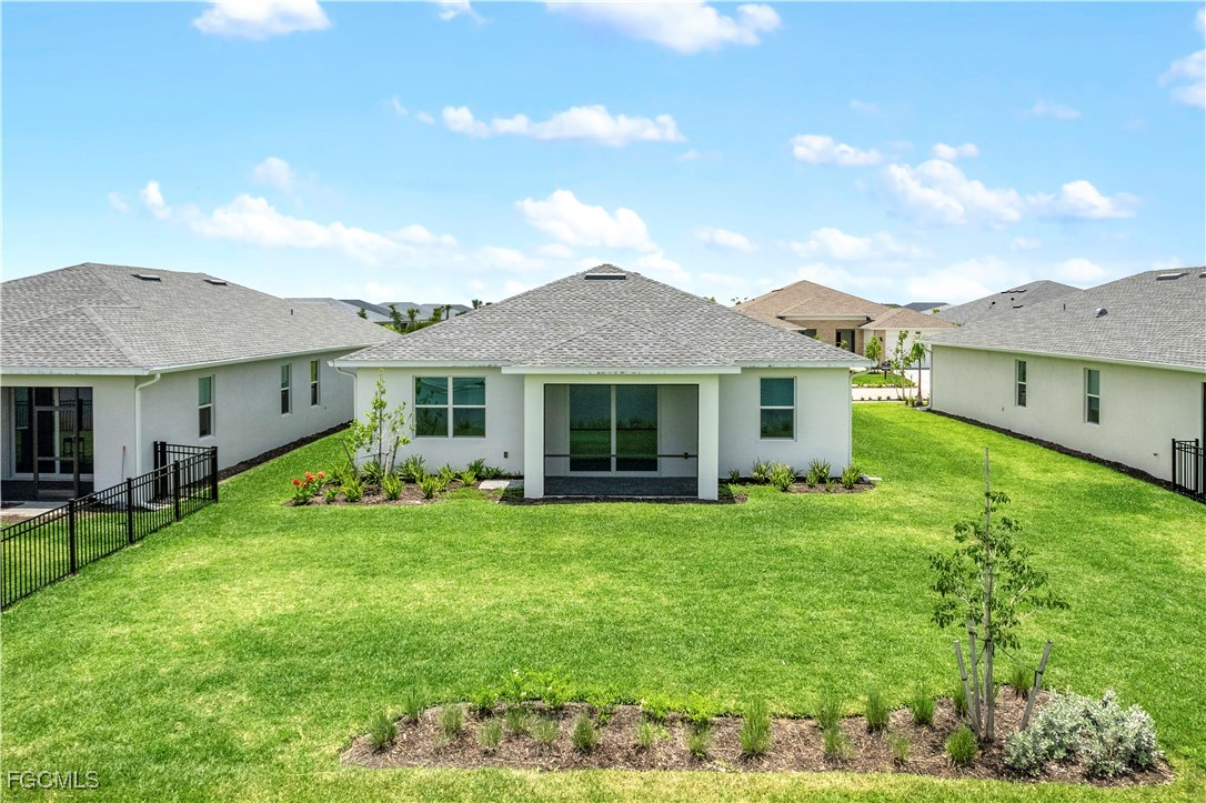 Discover refined Florida living in this beautiful new construction waterfront home, located in Babcock Ranch’s only 55+ community. Offering 1,979 square feet of thoughtfully designed living space, this home features stunning water views and a north-facing backyard with a private patio—perfect for peaceful mornings, comfortable afternoons, and enjoying Florida’s outdoor lifestyle. Inside, elegant tile flooring flows throughout the entire home, while the open-concept floor plan fills the main living areas with abundant natural light. The gourmet kitchen serves as the heart of the home, featuring a large center island with striking quartz countertops, beautiful wood cabinetry, stainless steel appliances, and natural gas cooking—ideal for both everyday living and entertaining. The primary bedroom suite offers serene water views and a luxurious ensuite bath with a spacious walk-in shower, dual vanities, and quartz countertops. A dual-sided walk-in closet provides exceptional storage and convenience. Additional highlights include a guest bedroom, a full guest bathroom, and a versatile flex space that can be customized to fit your lifestyle needs. Built with peace of mind, this home includes impact-resistant windows and doors, is not located in a flood zone, meets current builder codes, and is backed by a builder’s limited warranty. Just a short walk away, enjoy Regency’s state-of-the-art 55+ amenity center, featuring a clubhouse, resort-style pool, fitness center, shuffleboard, tennis, pickleball, bocce ball, yoga lawn, putting green, and a dedicated lifestyle director coordinating daily events. This home perfectly blends comfort, luxury, and an active lifestyle in one of Southwest Florida’s most sought-after communities. Please see MLS supplements for interior design selections/floor plan layout. Lot 4661.