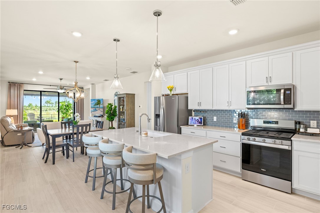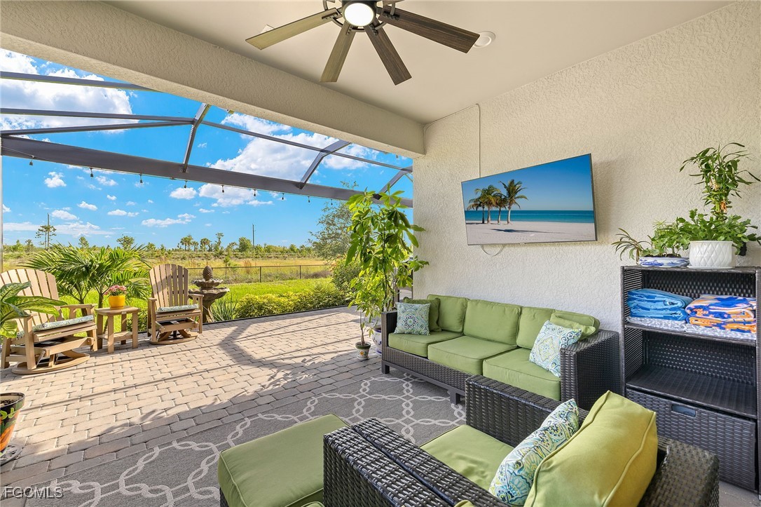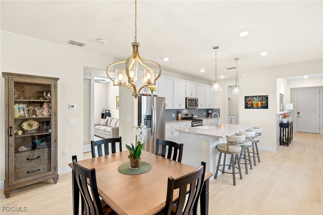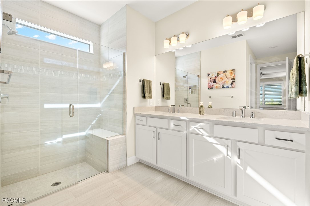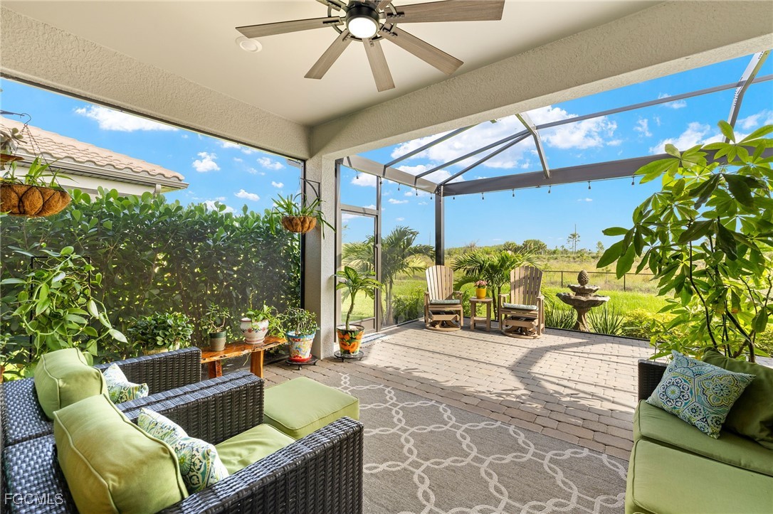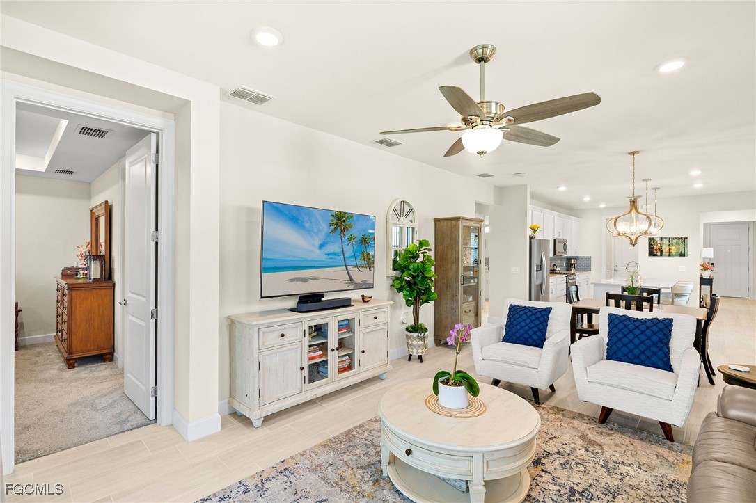 Motivated sellers invite you to discover this stunning Hallmark floor plan by Pulte Homes, featuring over $103,000 in both builder and owner upgrades! Throughout this 1677 square foot, 3/2 residence, you'll find a blend of premium comfort and great features, including extended 8’ doors and 5’1/4’ baseboards, plantation shutters, and upgraded tile flooring in an offset pattern. The upgraded kitchen features an entertaining layout with 42" upper cabinets and soft-close drawers, quartz countertops, matching Whirlpool appliances, a Blanco sink, a Moen faucet, and beautiful pendant lights complete the space. The upgraded laundry area blends with the kitchen finishes, including deep cabinets, soft-close drawers, quartz countertops, and a stainless-steel sink. The owner's suite provides a serene retreat with a tray ceiling and ample space. Its spa-like bathroom showcases quartz countertops, floor-to-ceiling tile in the shower, a heavy glass shower door, and dual square sinks. The guest bedrooms are tucked away nicely, with easy access to the guest bath, which features a walk-in shower with tiles extending to the ceiling and a glass shower door. You'll appreciate the additional wire shelving in every closet, a ceiling-mounted, wired Ubiquiti Wi-Fi extender, and sealed grout. Unlike most Hallmark models and other homes at this price, you step outside to your private oasis on the 12'x30' lanai. Enjoy a picture-window view and an extended outdoor living space with Edison lights and two large step-out pads. Additional 110- and 220-volt electrical outlets are located outside. The 2-car garage includes a pull-down attic ladder and attic board flooring installed for storage. Exterior features include an upgraded elevation, mature landscaping, a Ring doorbell, a motion-activated light at the entry, and a retractable front screen door. Ask your realtor for the complete upgrades list attached! At Verdana Village, you have endless activities at the Amenity Center. You will find the region's only indoor pickleball and tennis courts, along with an indoor basketball court. Enjoy the fitness center and a movement studio. Unwind by the stunning resort-style pool and an oversized hot tub/spa. Savor delicious meals at the on-site restaurant or visit the charming cafe and ice cream shop. Don't miss this opportunity to live the ultimate Florida lifestyle in this exceptionally upgraded Hallmark home in Verdana Village. Schedule your private showing today