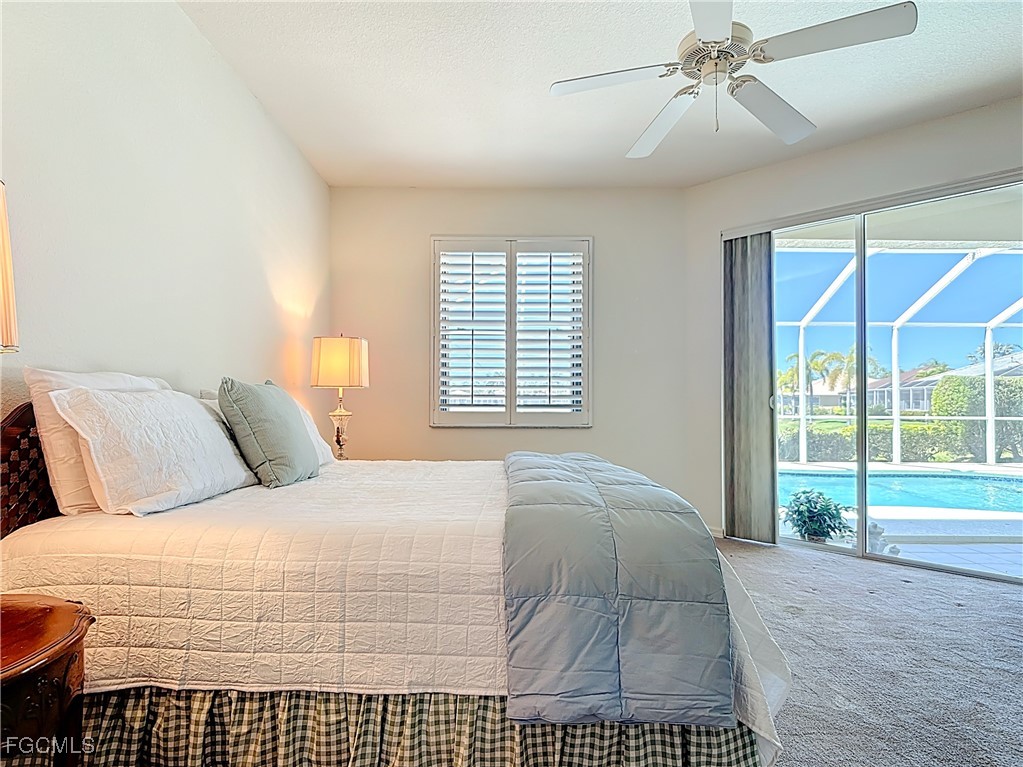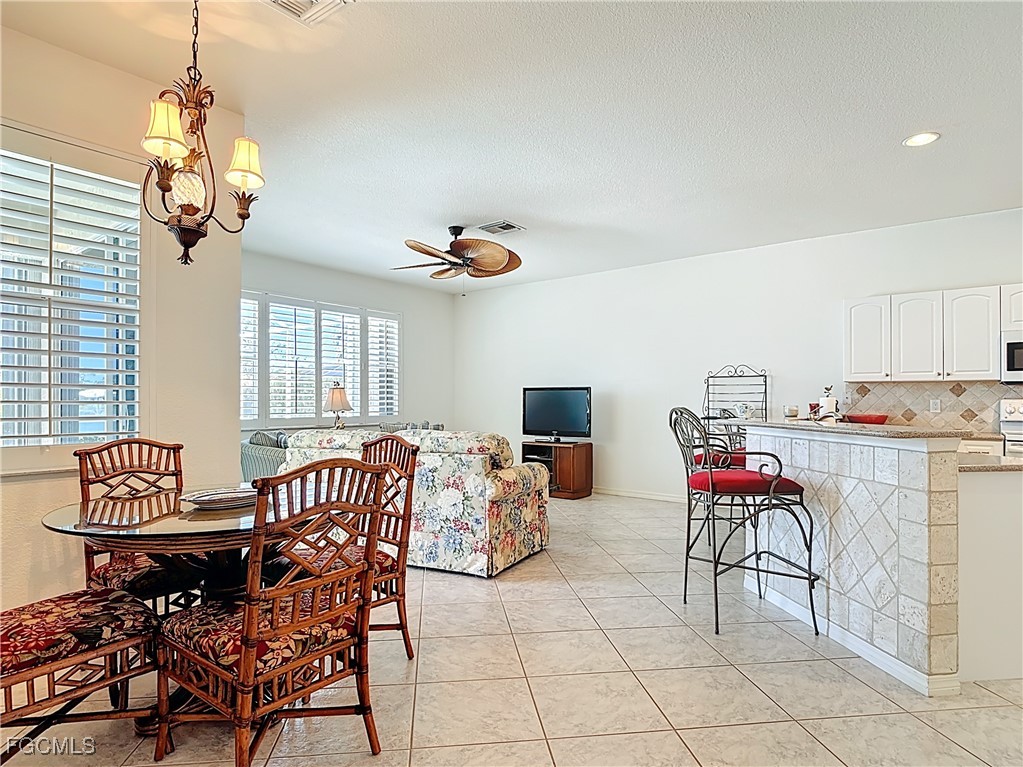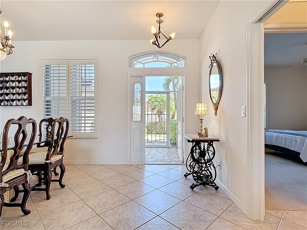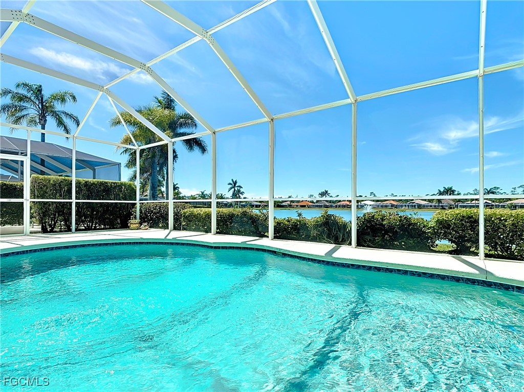 Wake up to vacation-style living in this Eagle model POOL HOME in the heart of HERONS GLEN COUNTRY CLUB. The 3-bedroom, 2.5-bathroom residence features beautiful LAKE AND FOUNTAIN VIEWS with stunning SUNSETS visible through three sets of sliding glass doors that open to the pool and lanai area. Natural light brightens the interior spaces, highlighting the 18-inch tile flooring throughout the main living areas. Elegant PLANTATION SHUTTERS grace the windows, while a leaded glass insert adorns the front door and sidelight. The kitchen offers fresh white cabinetry, decorative tile backsplash, Corian counters with a breakfast bar, tiled peninsula front, and a large double stainless steel sink. The spacious master bedroom connects to a bathroom with dual sinks, FRAMELESS SHOWER enclosure, and HIS AND HER WALK-IN CLOSETS. A pocket door creates a private guest suite from the main guest room and full guest bath. The second guest room makes a great bonus room and has its own walk-in closet. The indoor laundry area has extra storage, a work sink and a folding space. Practical updates include 2022 exterior paint, 2023 newer lanai screens, and a NEW ROOF installed in 2024. Ready hookups are available to add a pool heater for year-round swimming comfort. The home comes with accordion HURRICANE SHUTTERS throughout and a SKEETER BEATER on the garage door. A stamped concrete drive and walkway lead to the screened front entry. This TURNKEY property lets you immediately enjoy the resort-inspired Herons Glen lifestyle, complete with championship golf, tennis courts, pickleball facilities, a state-of-the-art fitness center, and a vibrant clubhouse where neighbors become friends through diverse social activities. From morning swims in the community pool to evening concerts on the clubhouse lawn, this active adult community balances recreation with relaxation in a setting where natural beauty and thoughtful amenities create the foundation for your finest chapter.