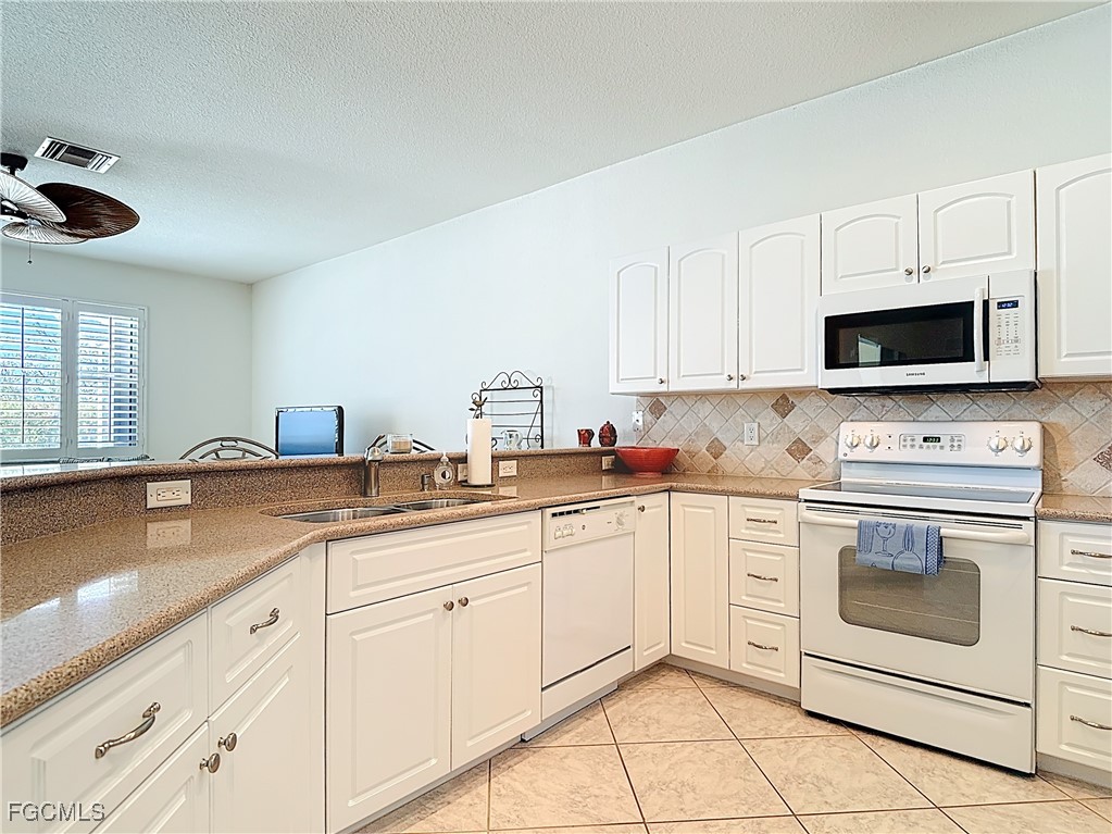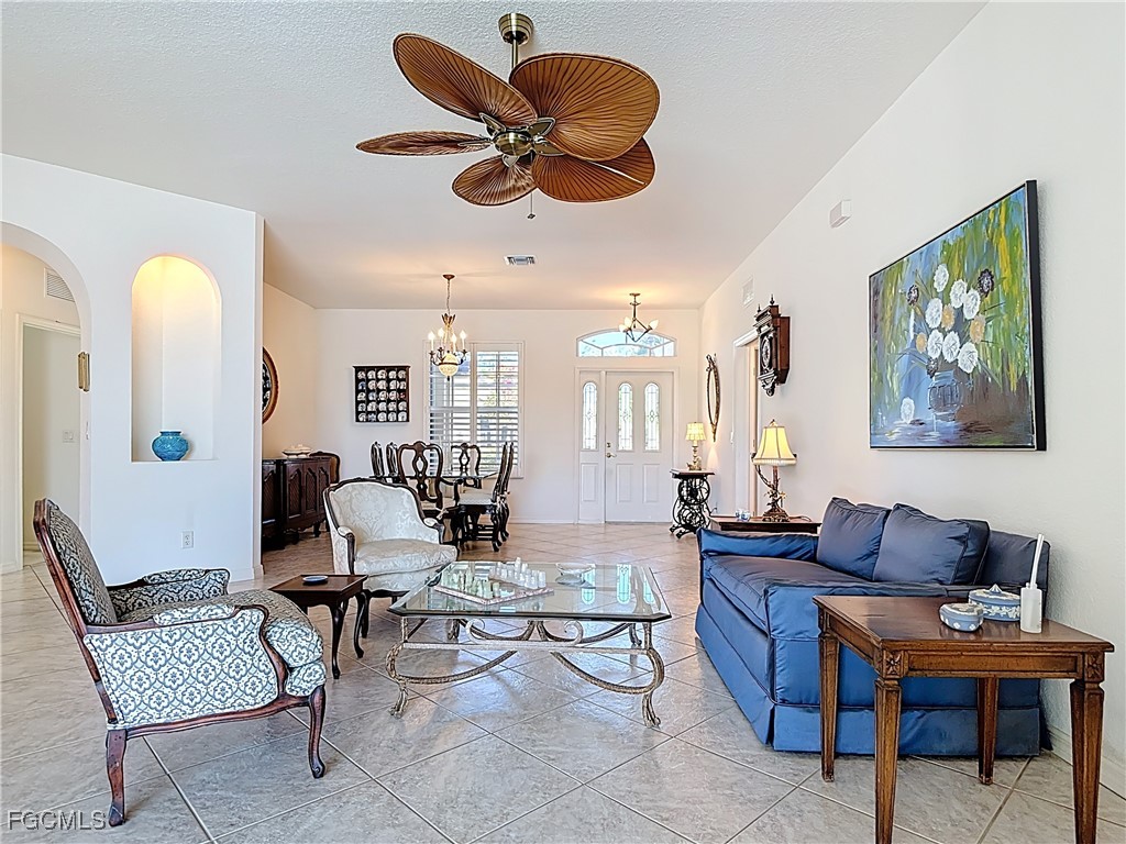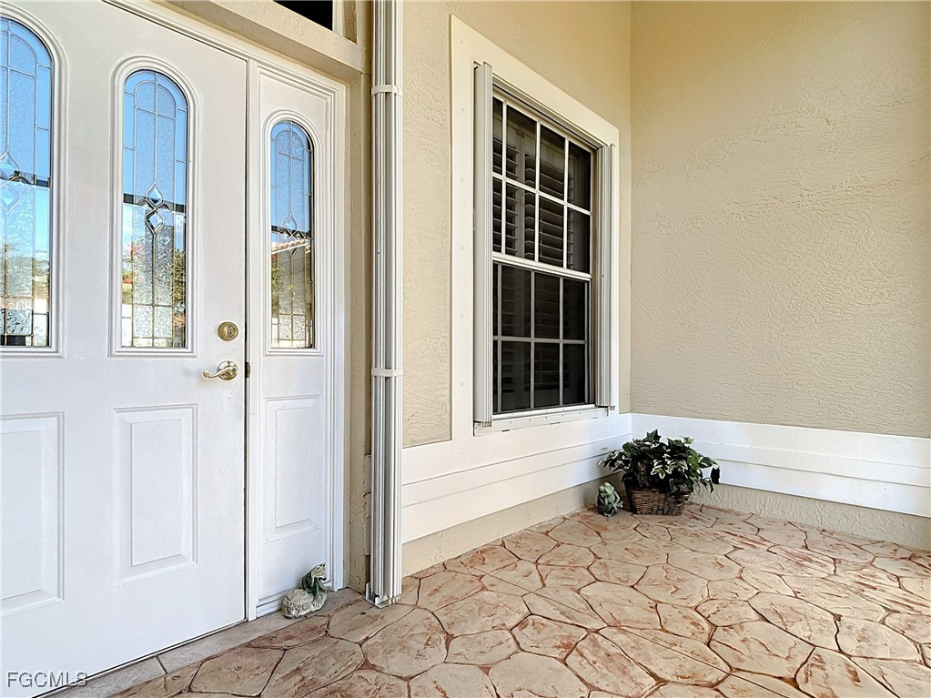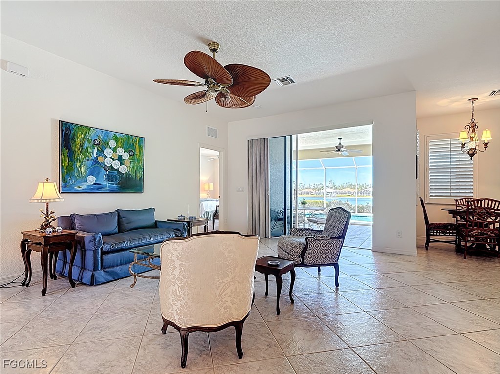 Wake up to vacation-style living in this Eagle model POOL HOME in the heart of HERONS GLEN COUNTRY CLUB. The 3-bedroom, 2.5-bathroom residence features beautiful LAKE AND FOUNTAIN VIEWS with stunning SUNSETS visible through three sets of sliding glass doors that open to the pool and lanai area. Natural light brightens the interior spaces, highlighting the 18-inch tile flooring throughout the main living areas. Elegant PLANTATION SHUTTERS grace the windows, while a leaded glass insert adorns the front door and sidelight. The kitchen offers fresh white cabinetry, decorative tile backsplash, Corian counters with a breakfast bar, tiled peninsula front, and a large double stainless steel sink. The spacious master bedroom connects to a bathroom with dual sinks, FRAMELESS SHOWER enclosure, and HIS AND HER WALK-IN CLOSETS. A pocket door creates a private guest suite from the main guest room and full guest bath. The second guest room makes a great bonus room and has its own walk-in closet. The indoor laundry area has extra storage, a work sink and a folding space. Practical updates include 2022 exterior paint, 2023 newer lanai screens, and a NEW ROOF installed in 2024. Ready hookups are available to add a pool heater for year-round swimming comfort. The home comes with accordion HURRICANE SHUTTERS throughout and a SKEETER BEATER on the garage door. A stamped concrete drive and walkway lead to the screened front entry. This TURNKEY property lets you immediately enjoy the resort-inspired Herons Glen lifestyle, complete with championship golf, tennis courts, pickleball facilities, a state-of-the-art fitness center, and a vibrant clubhouse where neighbors become friends through diverse social activities. From morning swims in the community pool to evening concerts on the clubhouse lawn, this active adult community balances recreation with relaxation in a setting where natural beauty and thoughtful amenities create the foundation for your finest chapter.