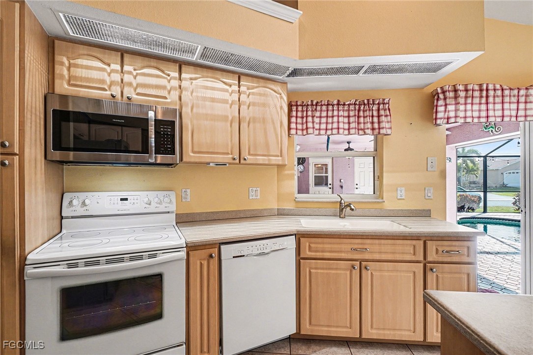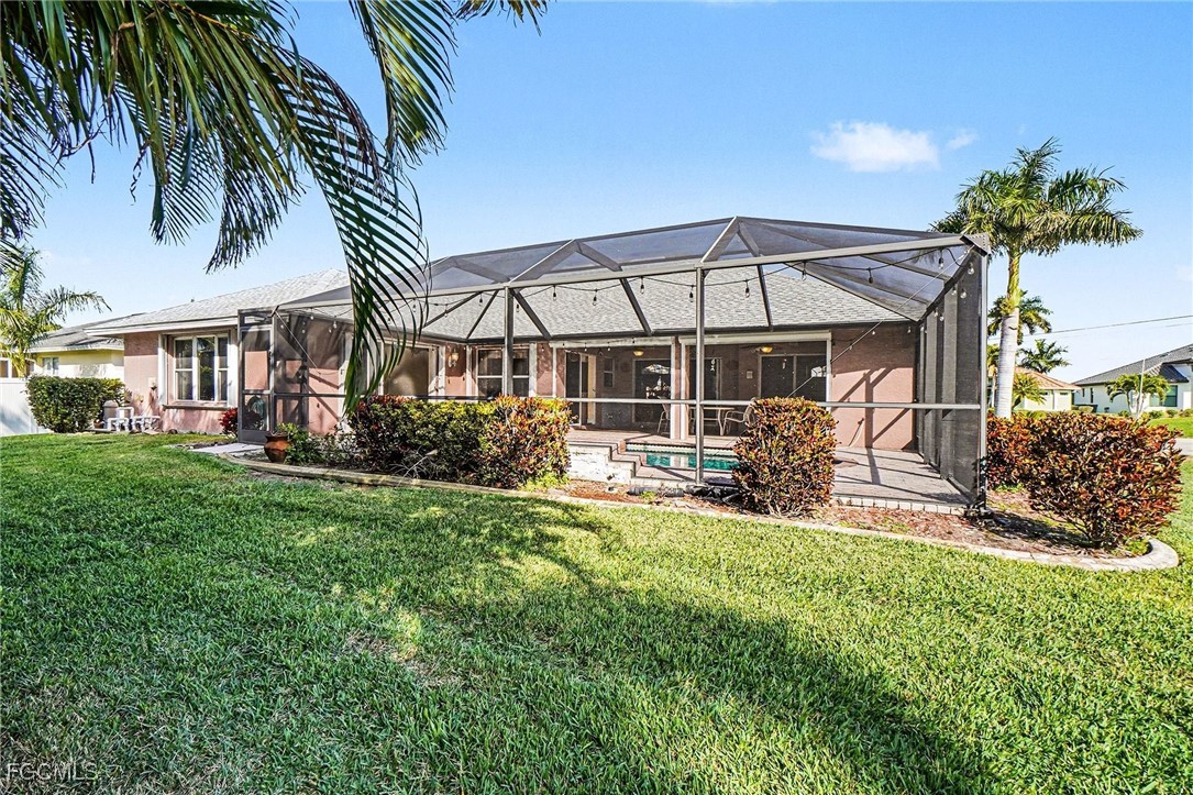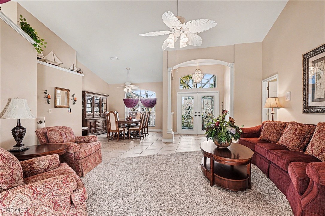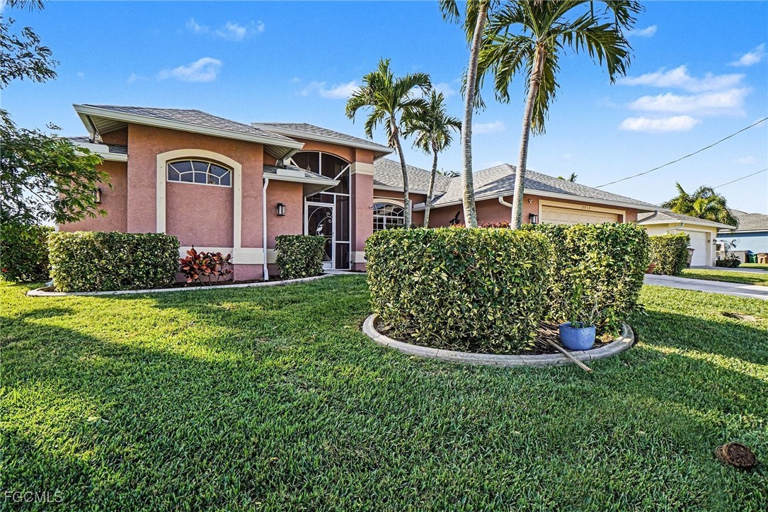 Located on a quiet cul-de-sac in a desirable SW Cape Coral neighborhood surrounded by Gulf-access homes, this one-owner, 3-bedroom, 2.5-bath pool home offers 2,286 sq ft under air on a corner lot with a slightly oversized 2-car garage. The home has been very well maintained. The spacious layout includes a large living room with sliders to the lanai, and an oversized dining room. There is a separate family room with vaulted ceilings, upgraded windows, tile flooring, and additional sliders to the pool area, creating an excellent indoor/outdoor living space. The kitchen features an island, solid surface countertops, pantry cabinets, roll-out shelving in most lower cabinets, dual-basin sink, breakfast nook area, and ample cabinetry offering so much storage.