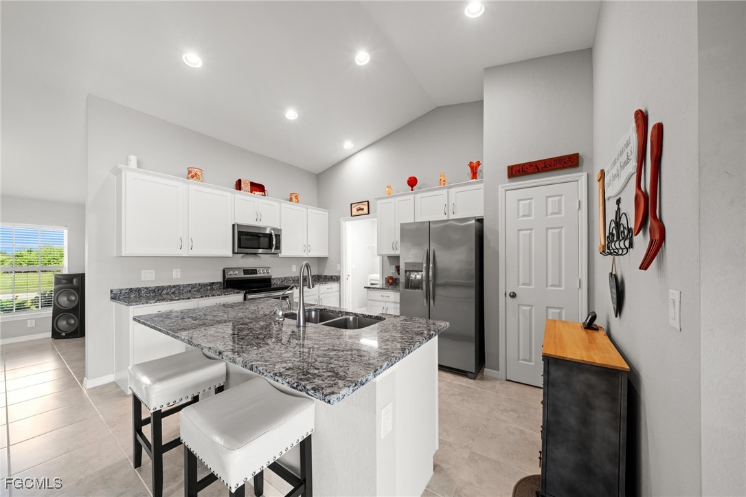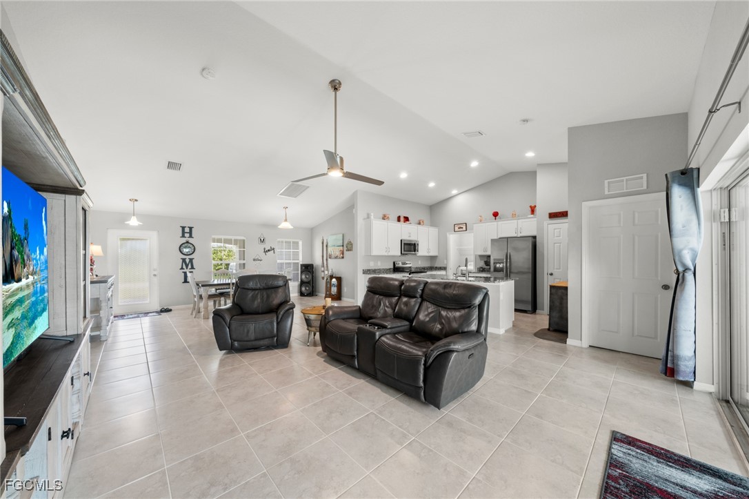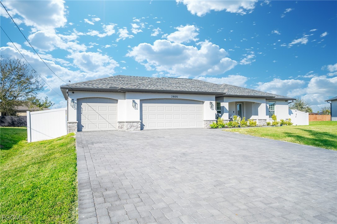NEW & IMPROVED PRICE! Skip the construction delays and builder-grade finishes with this upgraded 2022 Cape Coral pool home featuring 4 bedrooms, 2 bathrooms, and 1,827 sq ft of living space. Built on the popular St. Augustine floor plan, this home offers vaulted cathedral ceilings and comes with a transferable 10-year structural warranty for added peace of mind. Located in a quiet neighborhood surrounded by newer construction homes.