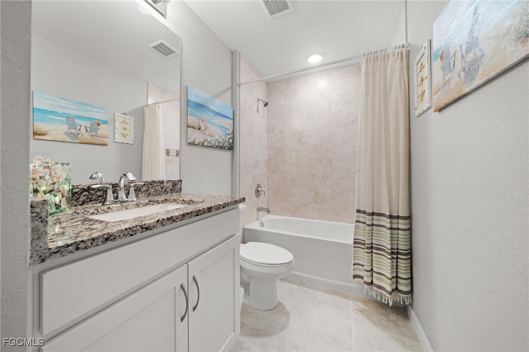 The 3-car garage is a standout, offering epoxy-coated floors, custom built-in shelving, and a dedicated workshop area. Inside, the open-concept kitchen features granite countertops, a center island, stainless steel appliances, and a separate pantry, while both bathrooms include matching granite finishes. The primary suite offers a dual-sink vanity and walk-in shower, while the guest bathroom includes a full-size tub.