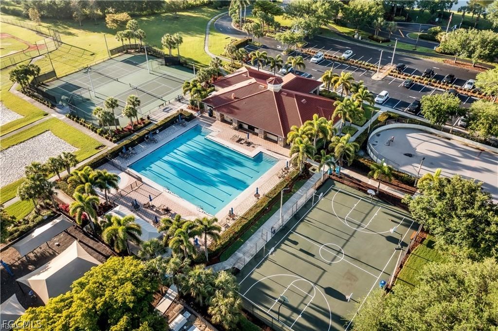 Welcome to Stoneybrook in Gateway! This beautifully maintained two-story pool home delivers space, style, and outstanding value in an amenity-rich community with low HOA fees. As you step inside, you’re immediately greeted by an impressive entryway with incredibly high ceilings, creating a bright, open, and welcoming first impression. The thoughtfully designed floor plan offers 2,745 square feet of living space, featuring three bedrooms, a spacious den, and three full bathrooms, all with durable, easy-care flooring throughout — no carpet anywhere in the home. The main living areas flow seamlessly toward the kitchen and outdoor space, making this home ideal for both everyday living and entertaining. The kitchen is both beautiful and functional, boasting granite countertops, rich wood cabinetry, and stainless-steel appliances. Upstairs, a versatile loft thoughtfully separates the guest bedrooms from the private primary suite, offering added privacy and flexibility. The primary retreat is truly special, featuring dual vanities, a separate soaking tub, two large closets, and a private balcony overlooking the pool and water view — a perfect spot to enjoy your morning coffee or a stunning Florida sunset. Step outside to your own private backyard oasis. The expansive lanai provides ample covered and open space for dining, lounging, and entertaining around the sparkling pool and spa, all overlooking a large backyard and serene water view with western exposure — ideal for breathtaking sunset skies. Additional highlights include an in-house washer and dryer, a two-car garage, a new roof in 2023, a 2021 A/C, and fully paid-off solar panels for added efficiency and long-term savings. Plus, the home is located in a non-flood zone for extra peace of mind. Stoneybrook at Gateway is known for its resort-style amenities, active lifestyle, and incredibly reasonable fees, making this home not just a great place to live — but a great value buy.