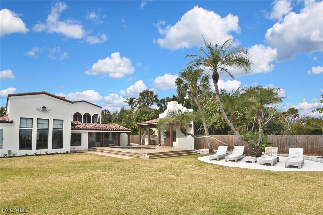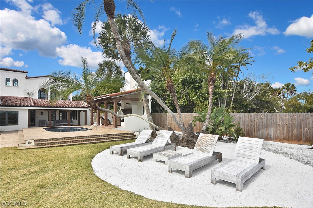 This extraordinary Spanish Colonial Revival waterfront estate spans approximately two acres of pristine island landscape and is ideally situated directly across from golf cart–accessible deeded beach access. Offering the rare combination of Gulf access and private waterfront living, this property presents a truly exceptional opportunity on Captiva Island. The main residence is thoughtfully designed to accommodate four spacious suite-style bedroom areas, including a stunning primary retreat. Expansive living spaces include a grand great room, formal dining area, wine cellar, and an exceptional game and recreation room ideal for entertaining. Distinctive architectural elements showcase the home’s authentic character, including exposed cypress beams, Saltillo tile flooring, and hand-fired decorative tile accents.