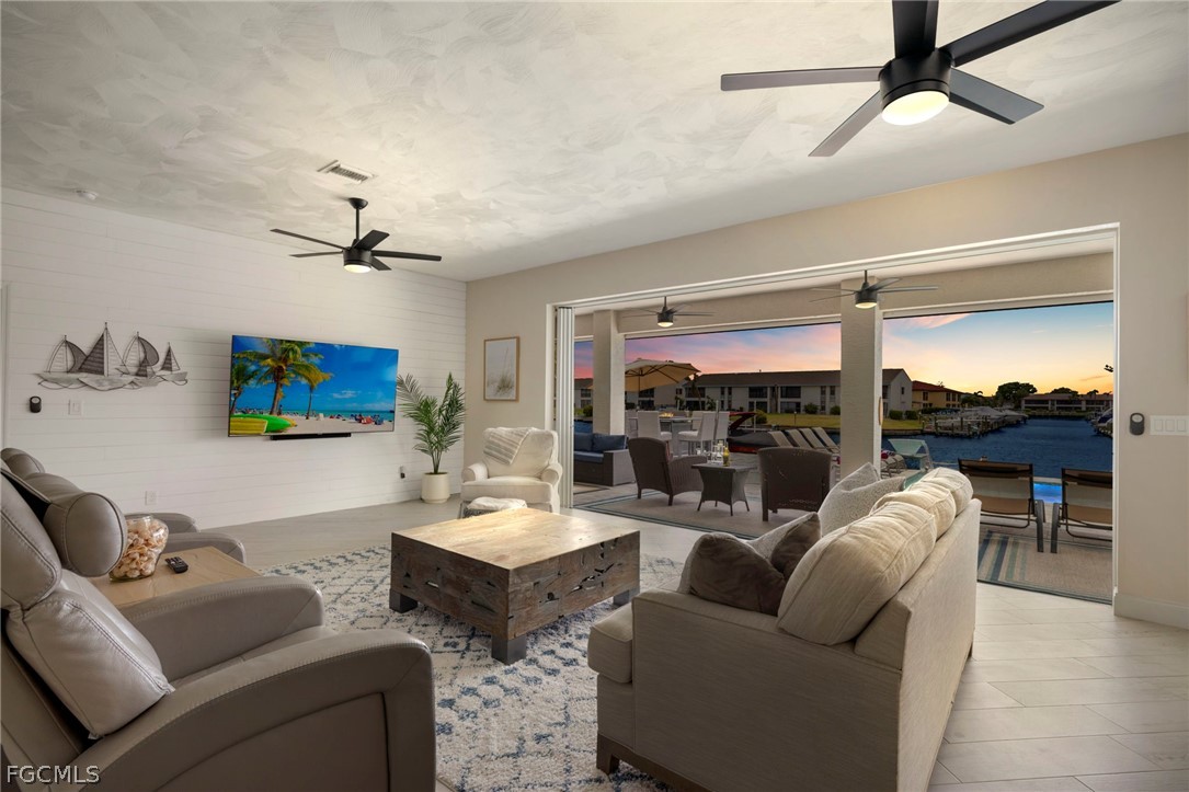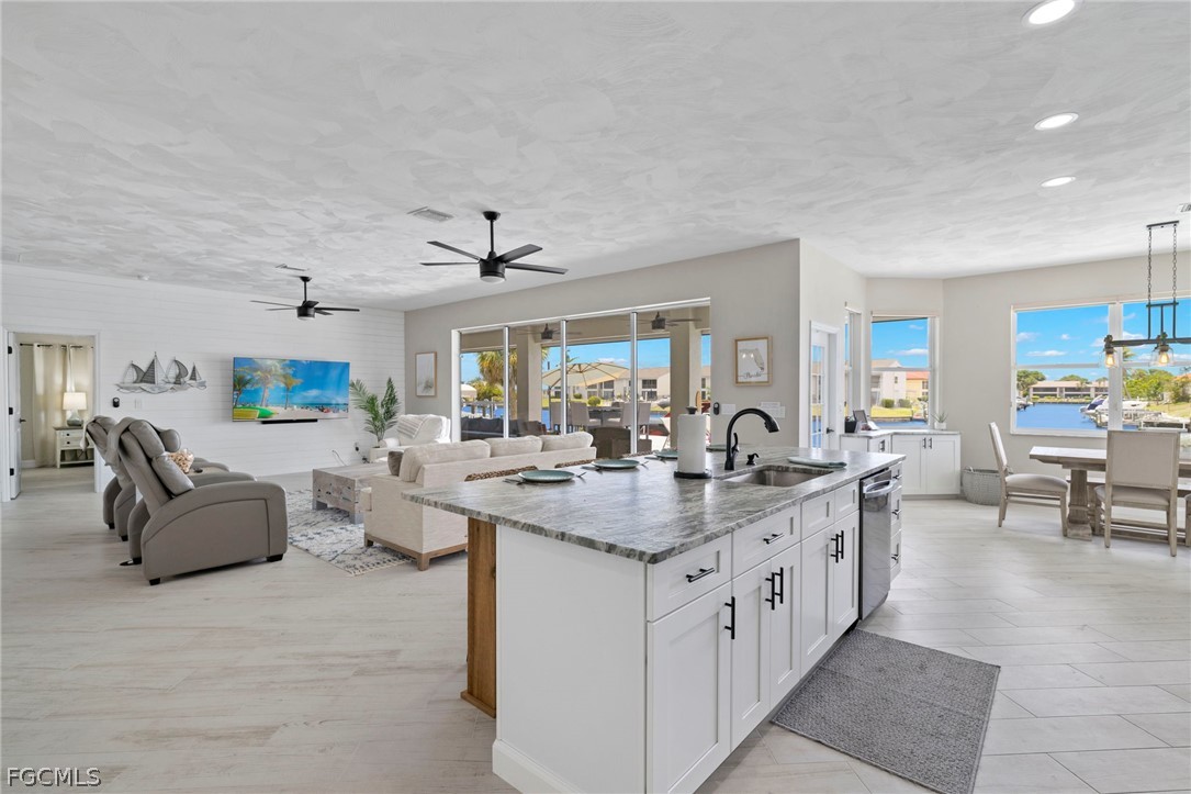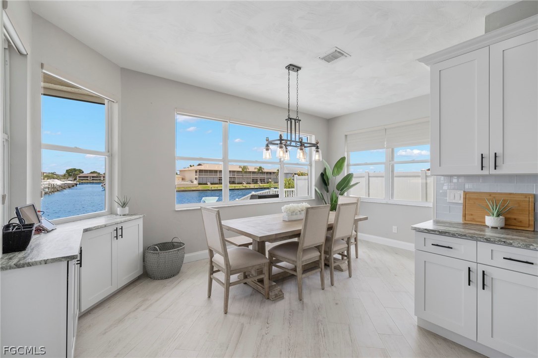 Inside, the home offers a bright, open living space with large windows and sliding glass doors that draw your attention to the pool area and canal views. The kitchen provides ample cabinet space and flows naturally into the dining and living areas, creating a comfortable setting for everyday living or entertaining guests.