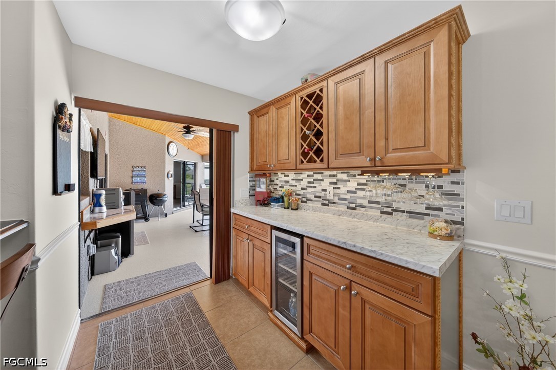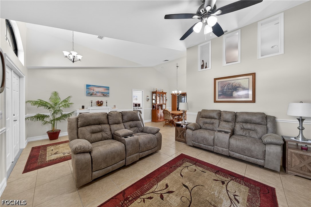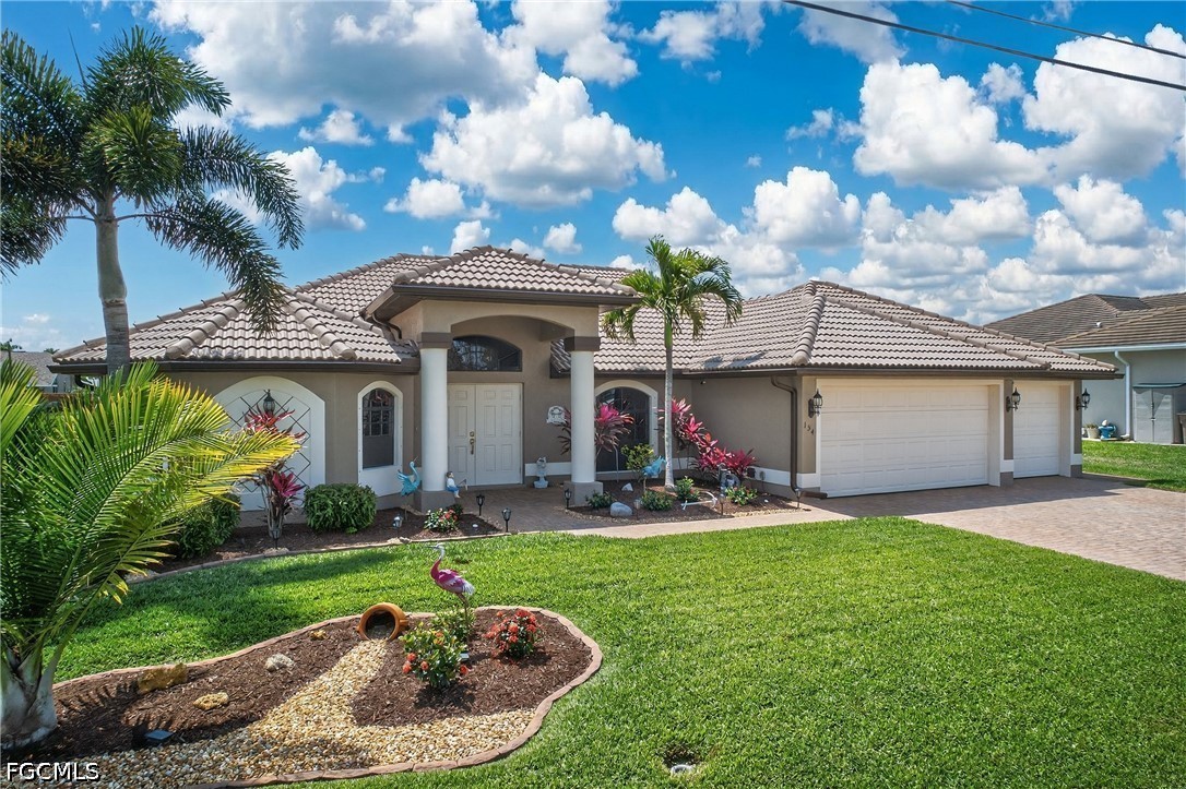 Room for everyone in this stunning, updated waterfront pool home in Cape Coral, offering 2,406 square feet with 4 bedrooms, 2 full bathrooms, and a spacious 3-car garage. From street to seawall, this property has been meticulously maintained and extensively upgraded, delivering exceptional curb appeal with lush tropical landscaping, mature palm trees, a paver driveway, newer interior and exterior paint, and a durable barrel tile roof. The home features soaring cathedral ceilings and a flexible layout with both a separate living room & family room, ideal for entertaining or everyday living. Light, bright, and neutral finishes create a timeless interior, enhanced by custom architectural details including pass-through windows for added natural light, shadow box trim in the dining area, chair rail accents, and updated lighting & fans. The updated kitchen featuring stainless steel appliances, granite countertops, modern tile backsplash, and custom wood cabinetry enhancements. A dry bar adjacent to the kitchen and family room creates the perfect space for entertaining, whether hosting guests or enjoying a quiet evening at home. The open living area is anchored by a coffered tray ceiling with crown molding, adding warmth and sophistication. The primary suite is generously sized and designed as a private retreat, offering space for a sitting area, abundant natural light from multiple windows, and sliding glass doors leading directly to the pool and waterfront views. The en-suite bath features dual vanities, walk-in closets, a Roman soaking tub, and a walk-through “car wash” shower. Guest bedrooms are all oversized, comfortably accommodating king or queen beds, making this home ideal for families and visitors. The guest bathroom also serves as a convenient pool bath. Step outside to your private waterfront oasis, where a resurfaced pool, freshly painted pool deck, and expansive under-truss lanai with knotty pine ceilings and Bahama fan create the ultimate setting for outdoor living. With desirable southern exposure, the pool receives optimal sunlight throughout the day—perfect for enjoying Southwest Florida’s year-round climate. Imagine hosting poolside gatherings, grilling, watching the game, or simply relaxing while taking in peaceful water views. Situated on a freshwater canal with access to miles of interconnected canals, this home is perfect for kayaking, paddleboarding, fishing, and small boating adventures. Centrally located in Cape Coral, quick access to shopping, dining, Sun Splash Water Park, Fort Myers, and area beaches, as well as nearby golf at Palmetto Pines Golf & Country Club.Just minutes away, exciting developments like The Cove at 47th and Bimini Square are transforming South Cape into a vibrant, walkable destination featuring waterfront dining, rooftop bars, boutique retail, and entertainment. Additional nearby highlights include Tarpon Point Marina, The Westin Resort, and more.