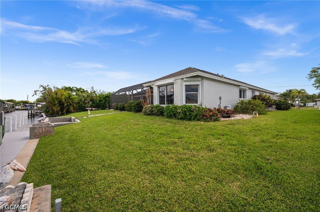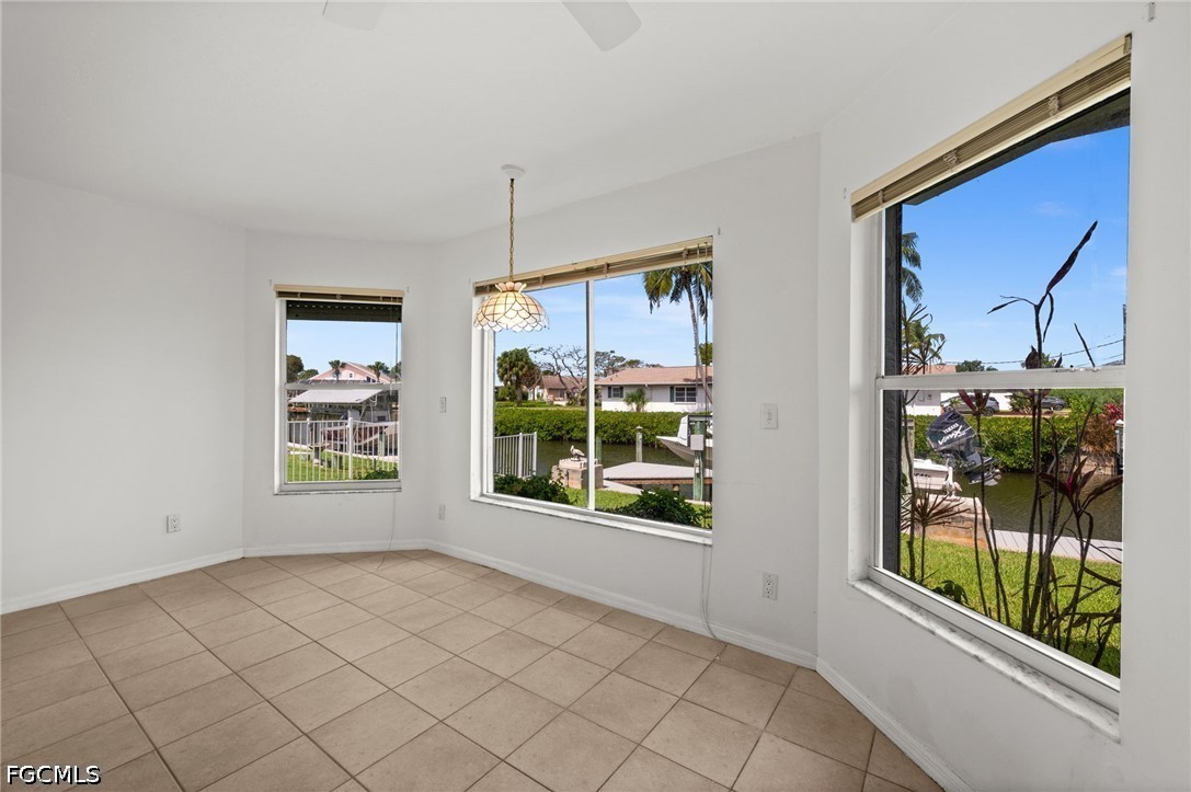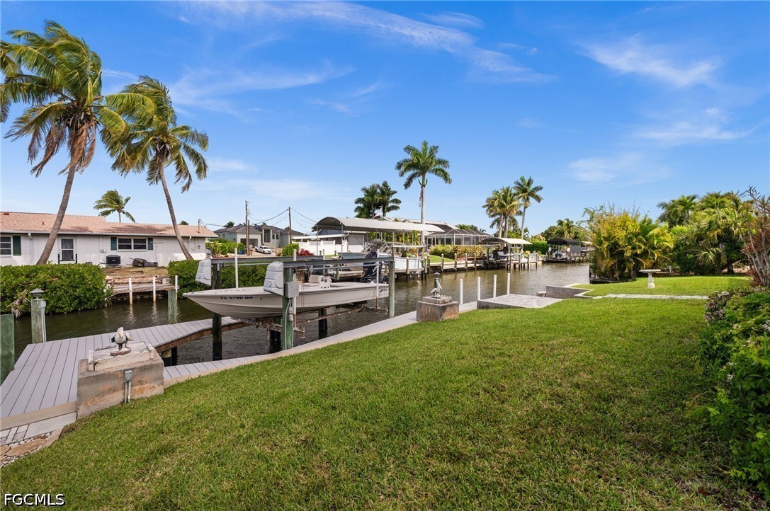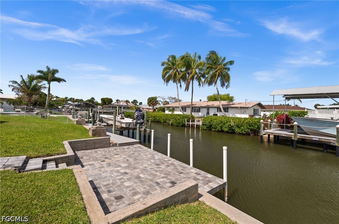 LOCATION! LOCATION! LOCATION! Tickets to the DOLPHIN SHOW on your backyard dock! Enjoy the manatee party too! Or play hide and seek with the hopping mullet and let the birds sing to you while you're fishing. However you want to enjoy natures beauty and bounty, this is the place to do it! Do you like big boats?! So do your neighbors!! This neighborhood loves the quick, easy & unrestricted access to the local beaches!! This neighborhood, Iona, will forever be a cherished FAVORITE in Fort Myers quietly tucked away -- yet minutes from world renowned FORT MYERS BEACH and SANIBEL ISLAND (pictured with the listing) boasting Causeway Park and world class boating and fishing. Your beautiful "home sweet home" is over 2200 sqft of SOLID BONES & structure with a newer roof (2022), new AC (2024), fresh paint and beautiful curb appeal. You will love earthing through the healthy, thick green grass and there's plenty of room in your backyard for a pool one day. Gorgeous new brick pavers have just been laid on the OVERSIZE back patio complete with electrical for a hot tub! Pavers continue through to your walk down pathway to a beautiful concrete dock. New trek decking for you on the captain's walk and new mechanics on the 7500 lb boat lift. All this backyard is waiting for is YOU, your boat & your fishing rod! Interior is move in ready! The home (kitchen especially!) abounds with natural light and has a nice eat-in area with a view of the water. The pocket sliders in the living room open all the way up to bring the outside IN! Drive by and call today - this house is the biggest, newest house in the neighborhood with soaring ceilings CERTAINLY a MUST SEE IN PERSON!!!