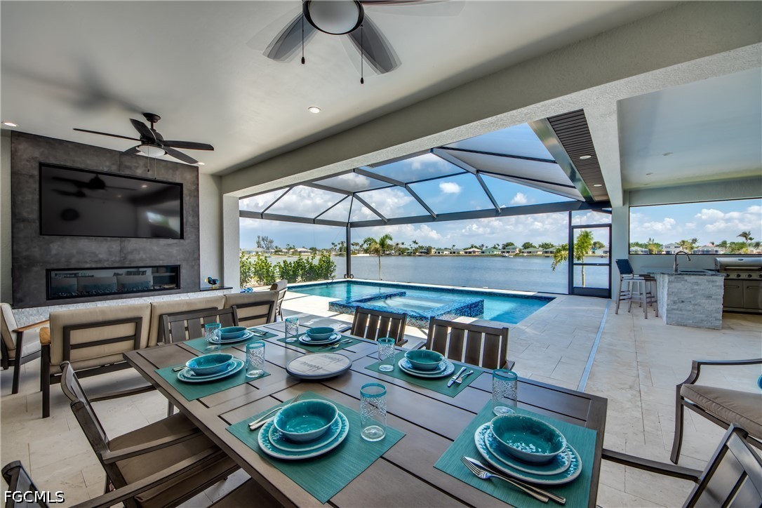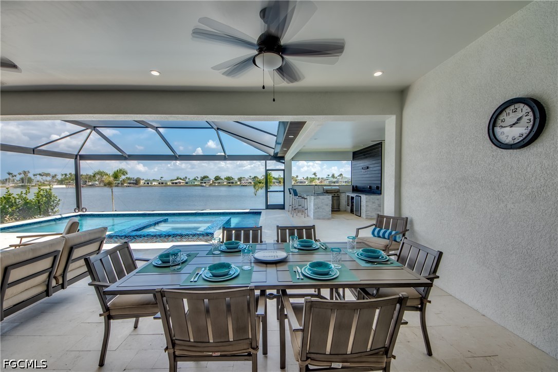 Spend countless hours at the pool, which is enclosed by a screened lanai large enough to accommodate outdoor dining and lounging. The outdoor bar area enhances the space, making it perfect for both daytime relaxation and evening festivities.