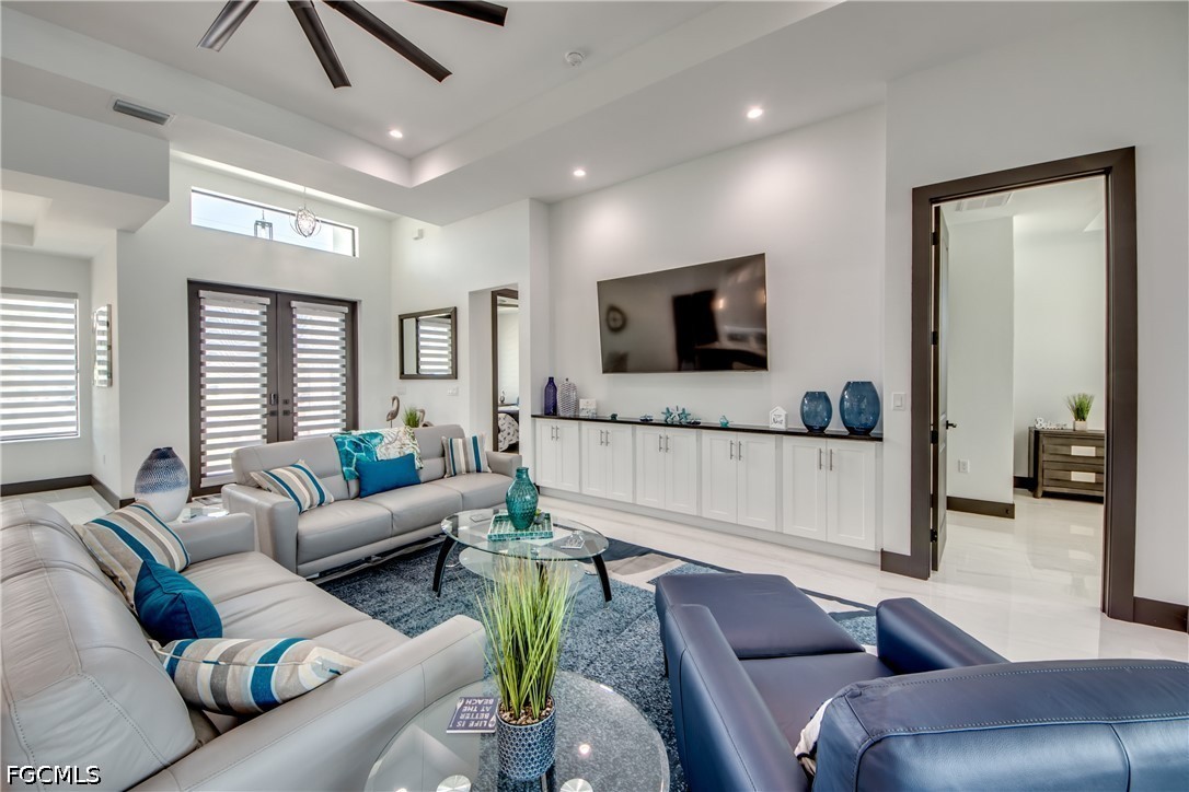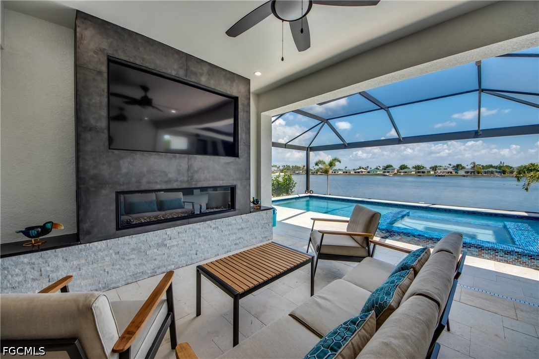 This stunning residence on Lake Weatherly is meticulously designed to impress from the very first step inside. With approximately 2,200 square feet of living space, the home features four spacious bedrooms and four modern bathrooms. The living room and lanai, complete with a cozy fireplace and stylish, comfortable furnishings, offer breathtaking views across Weatherly Lake, creating the perfect setting for relaxation and entertaining guests.