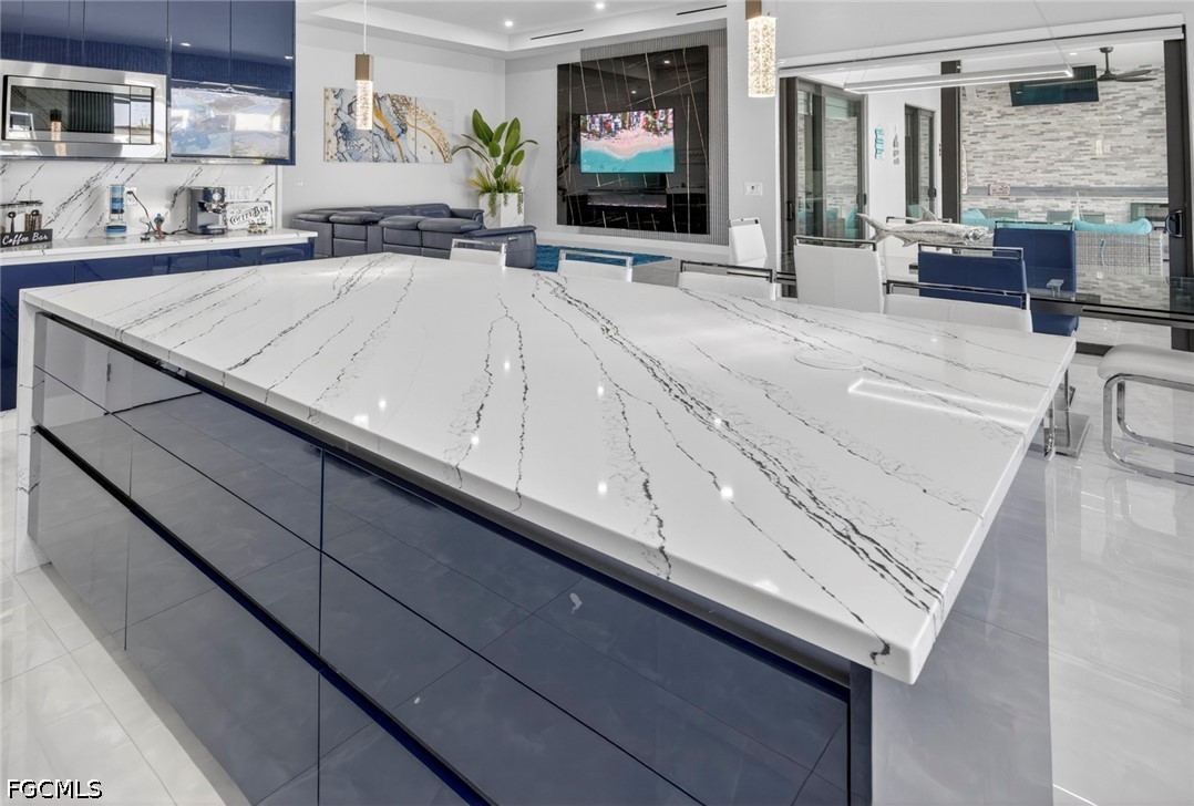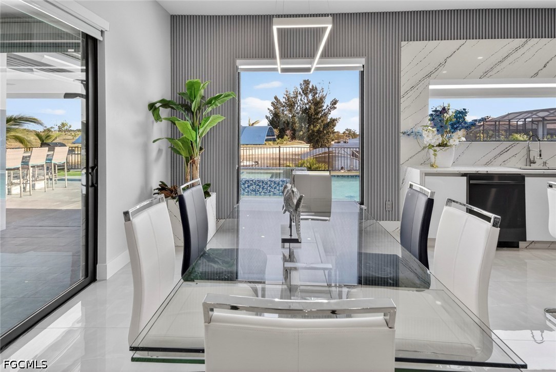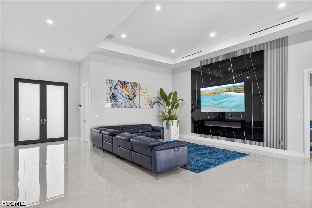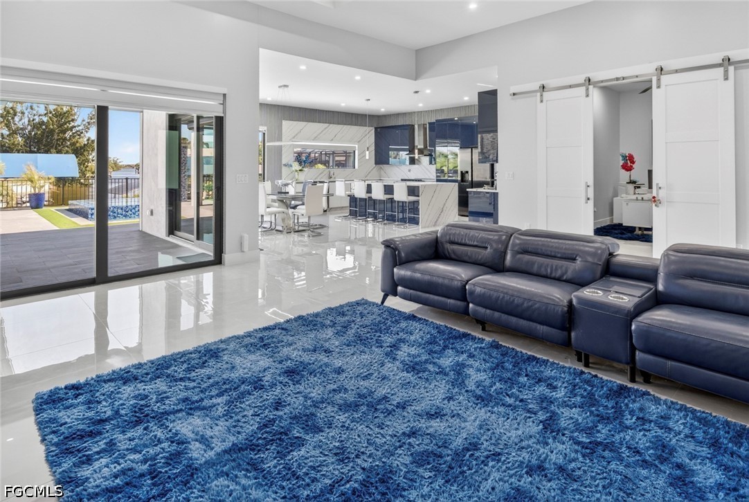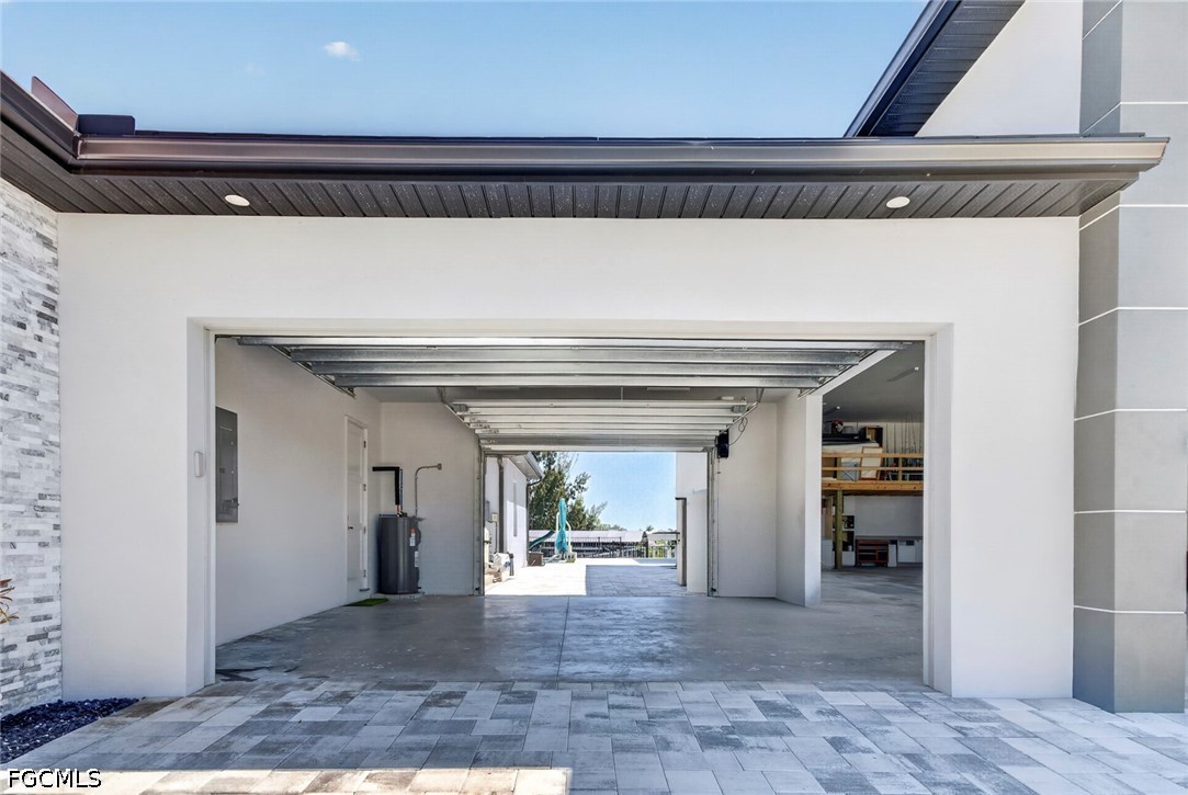 Custom-built luxury home on the Water with Gulf access, featuring a massive 2-RV garage, measuring 65' L x 30 ' W, making it ideal for RV owners, boat storage and car enthusiasts. This garage can fit one RV, plus 1 36' boat, or 1 boat and 5 cars. Built in 2024, the home provides 3,500 square feet under air with 4 bedrooms, an office, a home theater and 6 baths. The property includes a private newly constructed grey composite dock with a large canopy, a custom fish cleaning table, and a heavy-duty boat lift up to 36 feet. One of the home's most desirable features is a huge 23' x 17' home theater with a high-quality surround sound system, screen projector, bar with quartz countertop, mini fridge, microwave, custom European cabinets and 2 big closets with shelves. A panoramic picture-window screen enclosure maximizes canal views without visual obstruction. The kitchen offers quartzite countertops with a waterfall island, a huge walk- in pantry with shelves, custom cabinetry, high-end fixtures and several closets throughout the home. High-quality, large porcelain tile throughout all bathrooms. Wired speakers (two inside and 3 outside) provide an integrated entertainment experience. Wire security cameras all around home, Situated on an oversized .0.48-acre, Gulf access canal lot, this remarkable residence offers a total of 6,542 square feet under roof. The stunning outdoor living area includes a HUGE swimming pool around 50' L x 16'w with heated pool and spa, outdoor shower with cold/hot water, travertine deck, irrigation system, exterior lighting, and covered lanai, also features are new remote-control hurricane shutters. The expansive lanai along with a full outdoor kitchen, equipped with gas stove, extractor hood, ice maker and beer machine, refrigerator, double oven and two mounted televisions. whole-house reverse osmosis RO system, 6 fans with remote control, Kids Park area with turf and powerful solar lights This property combines, unique modern design, quality construction, and a prime waterfront setting to deliver a refined and distinctive waterfront living experience Minutes to Coral Oaks and Royal Tee golf courses, Publix, and the future 7 Islands waterfront dining and shopping district. Impact doors and windows, grey tile roof showings for SERIOUS buyers only!