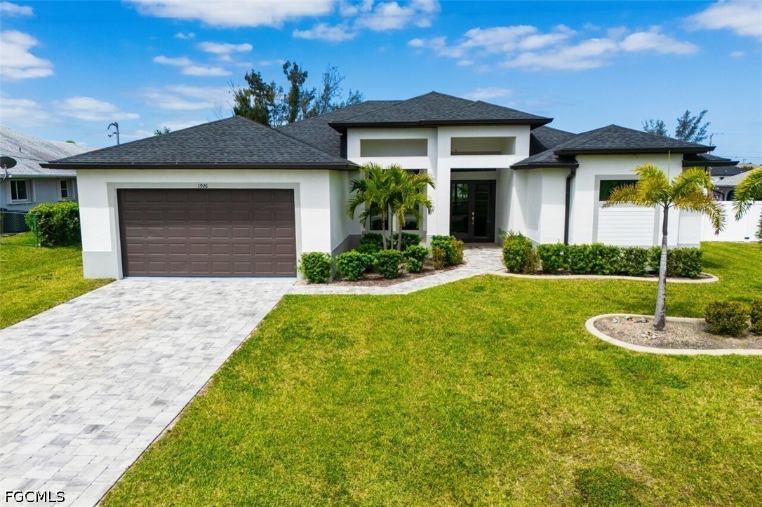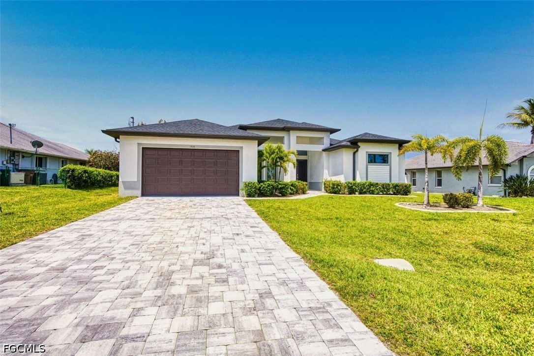 Discover modern Florida living in this beautifully built 2022 home, ideally situated on a freshwater seawalled canal in Cape Coral. Designed with a clean, contemporary style, this 3-bedroom + den residence offers both comfort and sophistication.
