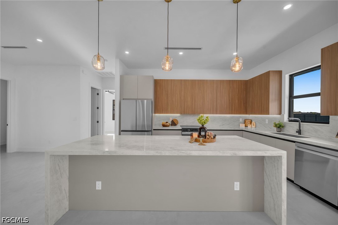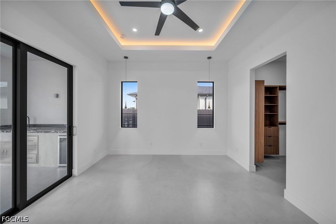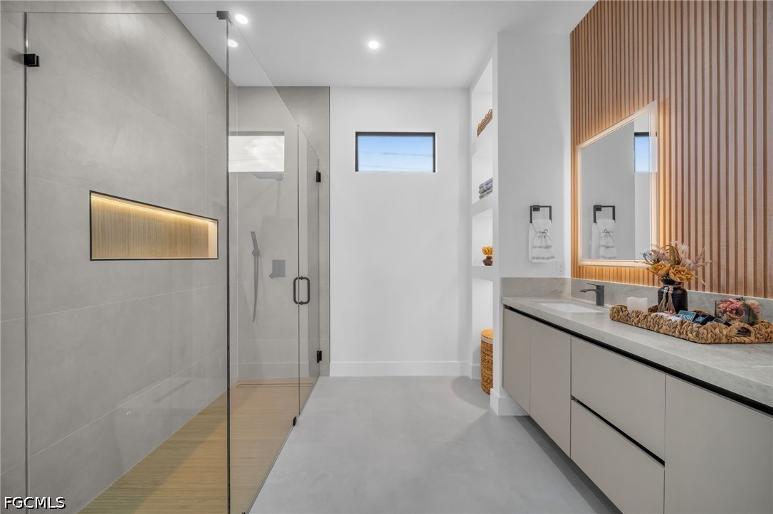 Experience unparalleled luxury in this 4 bedrooms & 3.5 Bathrooms masterpiece featuring a 2nd in-suite layout, high ceilings, and a designer kitchen with Taj Mahal quartz waterfall countertops, custom cabinetry, and smart appliances. This high-tech home boasts luxury lighting, ceiling cove lights, and a master bath with a smart toilet and LED shower niches. Set on a flat, fully fenced lot with city water/sewer, the property includes a circular paver driveway, epoxy garage floors, and professional tropical landscaping. The outdoor resort-style oasis features an extended lanai, summer kitchen, and a full deck surrounding a modern smart pool and spa with bubble jets and a sun beach. Equipped with full impact windows and doors, automated sprinklers, a pool bathroom/shower, and custom walk-in closets throughout, this home perfectly blends sophisticated design with ultimate security and comfort.