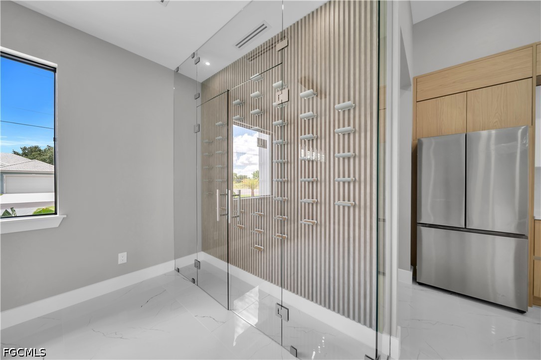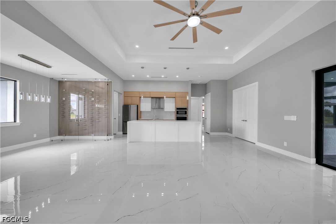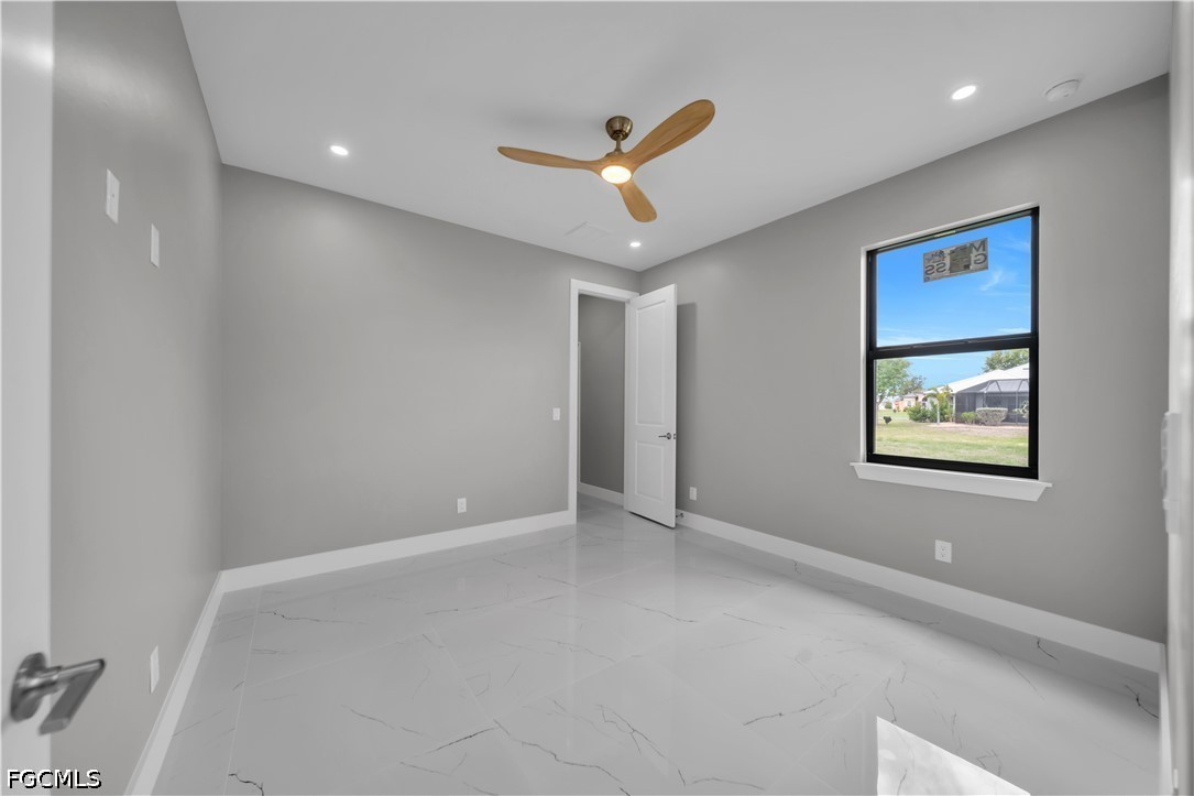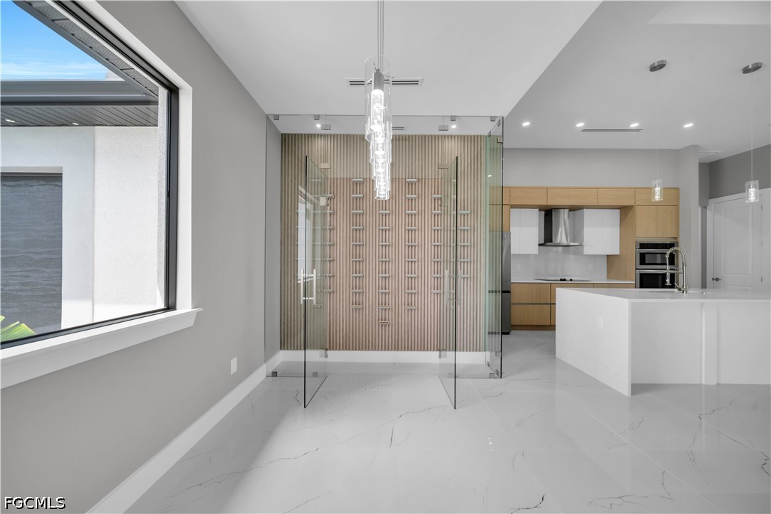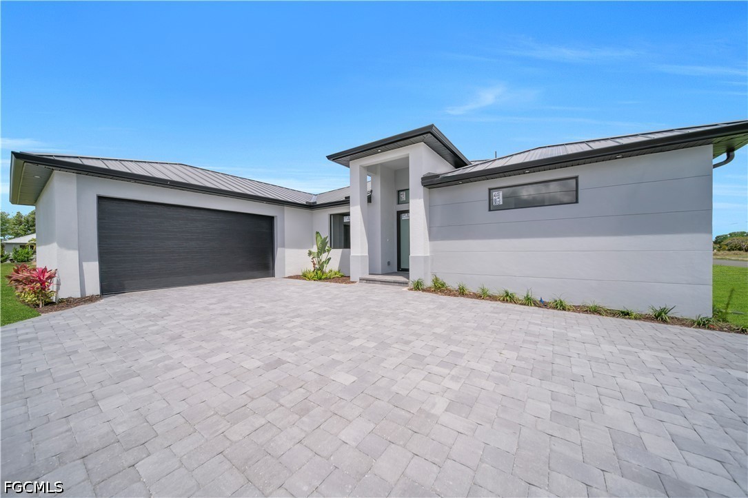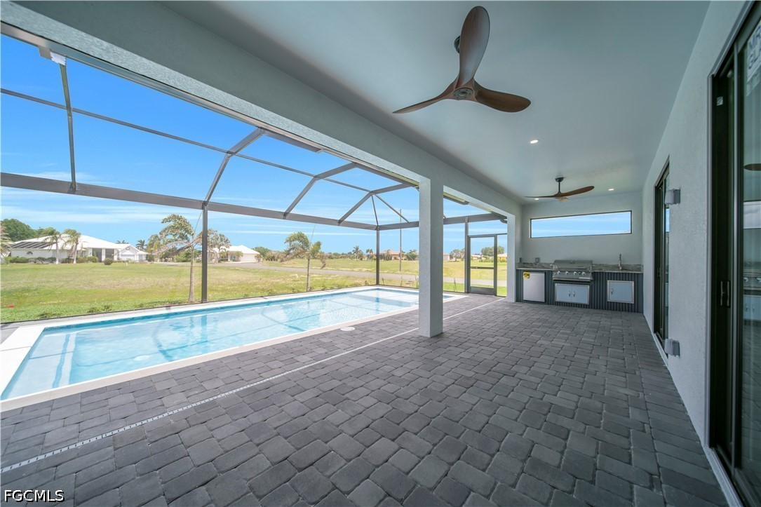 READY TO MOVE IN!! Modern New Construction home located in the desirable Burnt Store Lakes community with city water and sewer. Situated on a spacious corner lot (0.24 acres), this stunning residence offers 4 bedrooms, 3 bathrooms (2 full, 1 half) with a flexible layout where one of the bedrooms can be used as a den or home office. The open floor plan features tile flooring throughout, upgraded lighting fixtures, and ceiling fans throughout the home. The gourmet kitchen includes custom cabinets, quartz countertops, pantry, built-in microwave, and wall oven. The dining area features a designer wall-mounted wine cellar, perfect for entertaining. Custom closets are found in every room, including a walk-in closet in the primary suite. A dedicated laundry room with washer and dryer included adds convenience. Enjoy outdoor living with a screened lanai featuring a private pool and an outdoor kitchen equipped with a gas grill and small refrigerator. Additional upgrades include hurricane impact windows and doors, paver driveway, irrigation system, and an oversized 2-car garage with opener. Located in a quiet, deed-restricted community, this home is a must-see and will not last long.