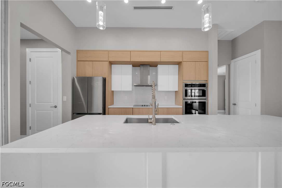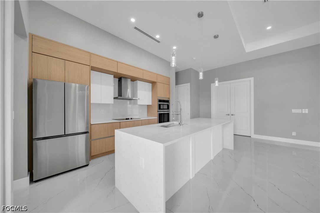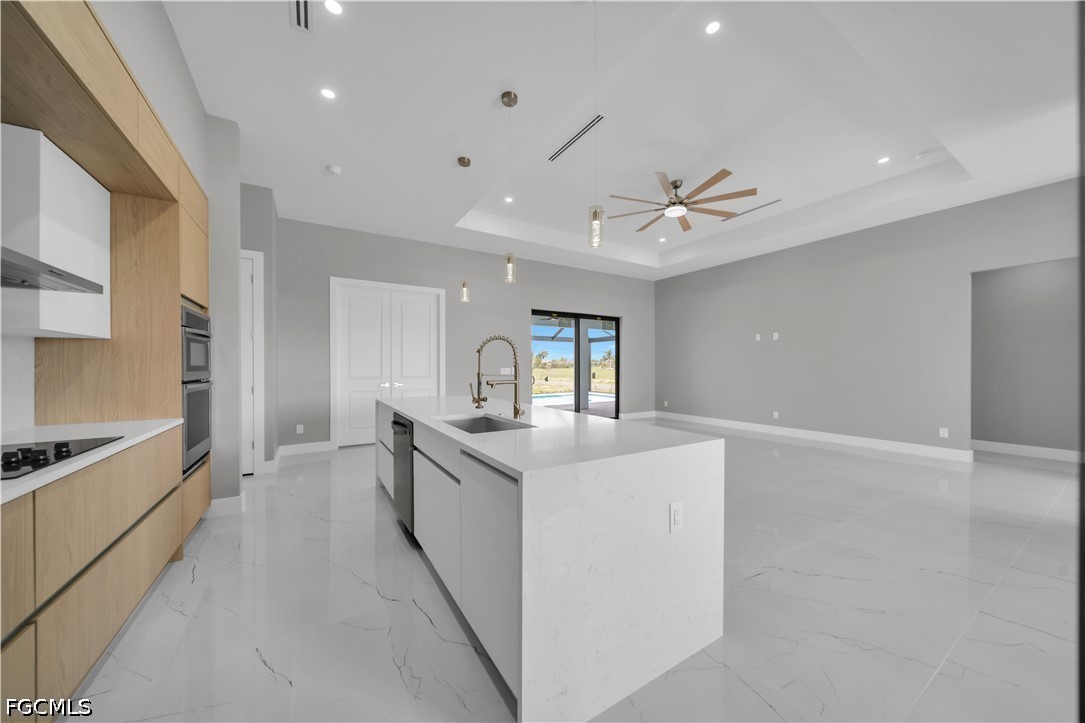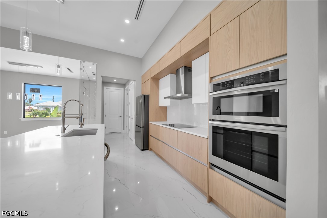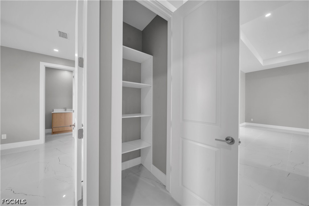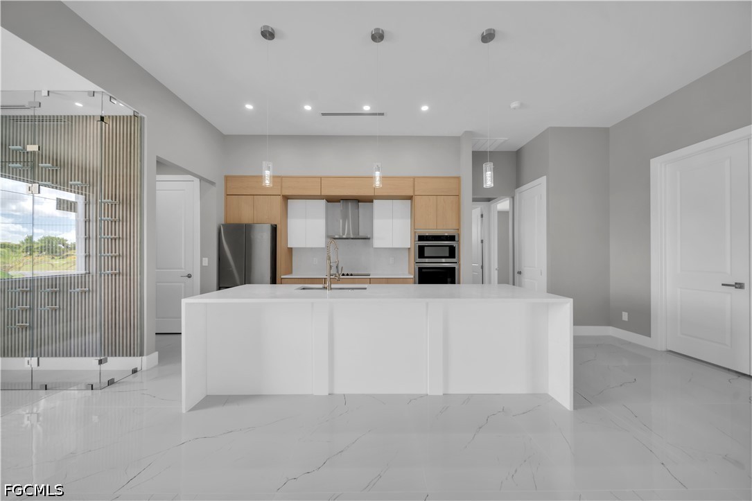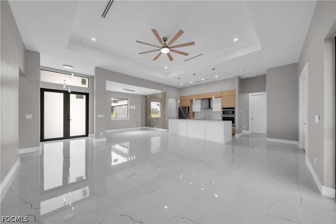 READY TO MOVE IN!! Modern New Construction home located in the desirable Burnt Store Lakes community with city water and sewer. Situated on a spacious corner lot (0.24 acres), this stunning residence offers 4 bedrooms, 3 bathrooms (2 full, 1 half) with a flexible layout where one of the bedrooms can be used as a den or home office. The open floor plan features tile flooring throughout, upgraded lighting fixtures, and ceiling fans throughout the home. The gourmet kitchen includes custom cabinets, quartz countertops, pantry, built-in microwave, and wall oven. The dining area features a designer wall-mounted wine cellar, perfect for entertaining. Custom closets are found in every room, including a walk-in closet in the primary suite. A dedicated laundry room with washer and dryer included adds convenience. Enjoy outdoor living with a screened lanai featuring a private pool and an outdoor kitchen equipped with a gas grill and small refrigerator. Additional upgrades include hurricane impact windows and doors, paver driveway, irrigation system, and an oversized 2-car garage with opener. Located in a quiet, deed-restricted community, this home is a must-see and will not last long.