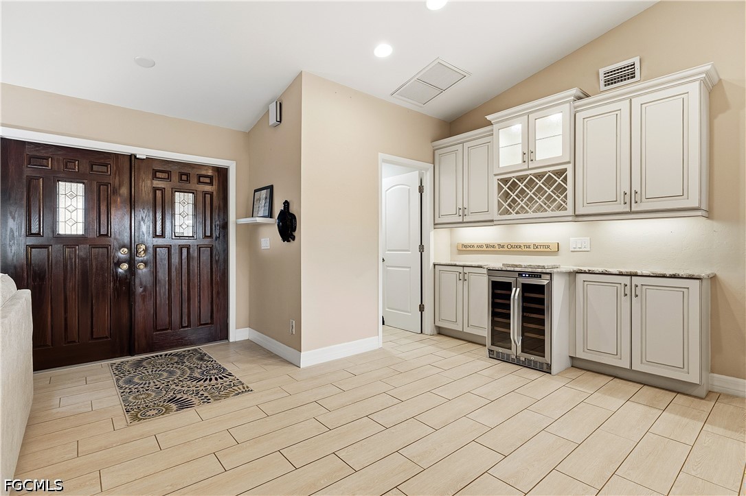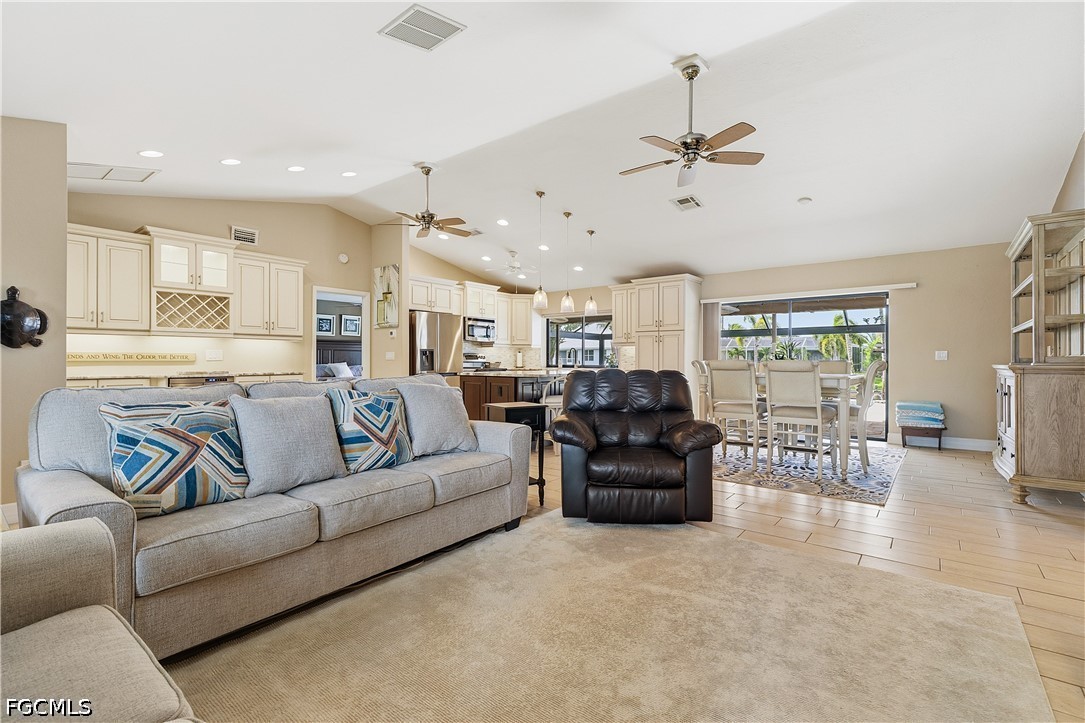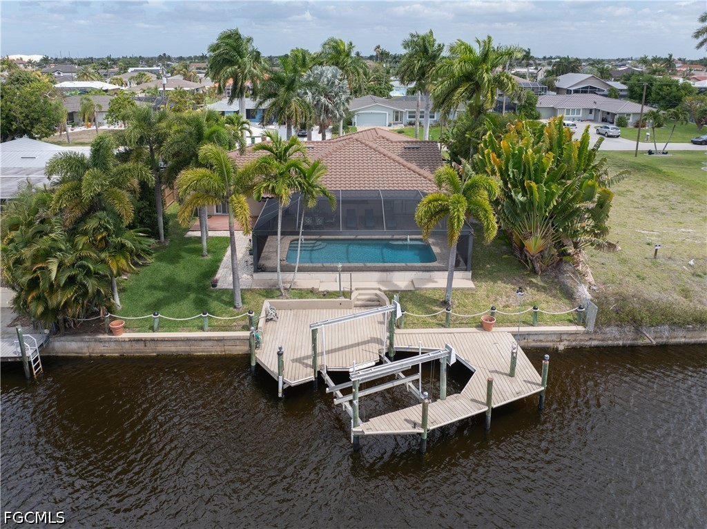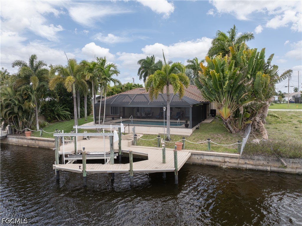 Beautifully remodeled and upgraded Direct Gulf Access Pool Home in the Cornwallis neighborhood. This home has been immaculately maintained and is move-in ready with furnishings included. This is the waterfront Florida lifestyle you are looking for! The front exterior features a pavered circular driveway surrounded by lush landscaping with stately Royal Palms. Step into the double front doors to a spacious open floorplan with high ceilings. The large kitchen has upgraded cabinetry, granite counter tops, a huge island and plenty of cabinet space with an added built-in wine cooler. Sliding glass doors open up to the sparkling pool and screened lanai with a highly desired Southern exposure. Primary bedroom also has a slider leading to the pool area. Primary bath features dual vanities, a large glass shower and walk-in closet with built-in shelving. Two furnished guest bedrooms, and one has a sliding door leading to a wood deck in the back yard with plenty of foliage for privacy. Impact Windows give peace of mind for storm protection. The dock features a Captain’s Walk and 10,000 lb boat lift, and just a few minute boat ride to open water! New Roof 2021, New A/C 2024, New Pool Cage 2020, New Pool Pump and Heater, No Flooding! Schedule your personal tour today...you won't be disappointed!