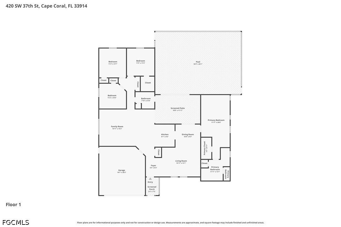 Move-in ready POOL HOME in one of Cape Coral’s most desirable family-friendly neighborhoods—perfectly positioned for convenience and lifestyle! This 4 bedroom, 2 bathroom split floor plan offers privacy for the primary suite while keeping living spaces open and functional for everyday living and entertaining.