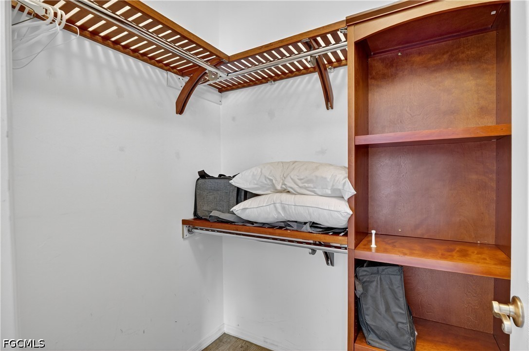The primary suite is positioned to take advantage of the water, with triple pocket sliders, dual custom walk-in closets, and a bathroom that feels more like a retreat than just another room.