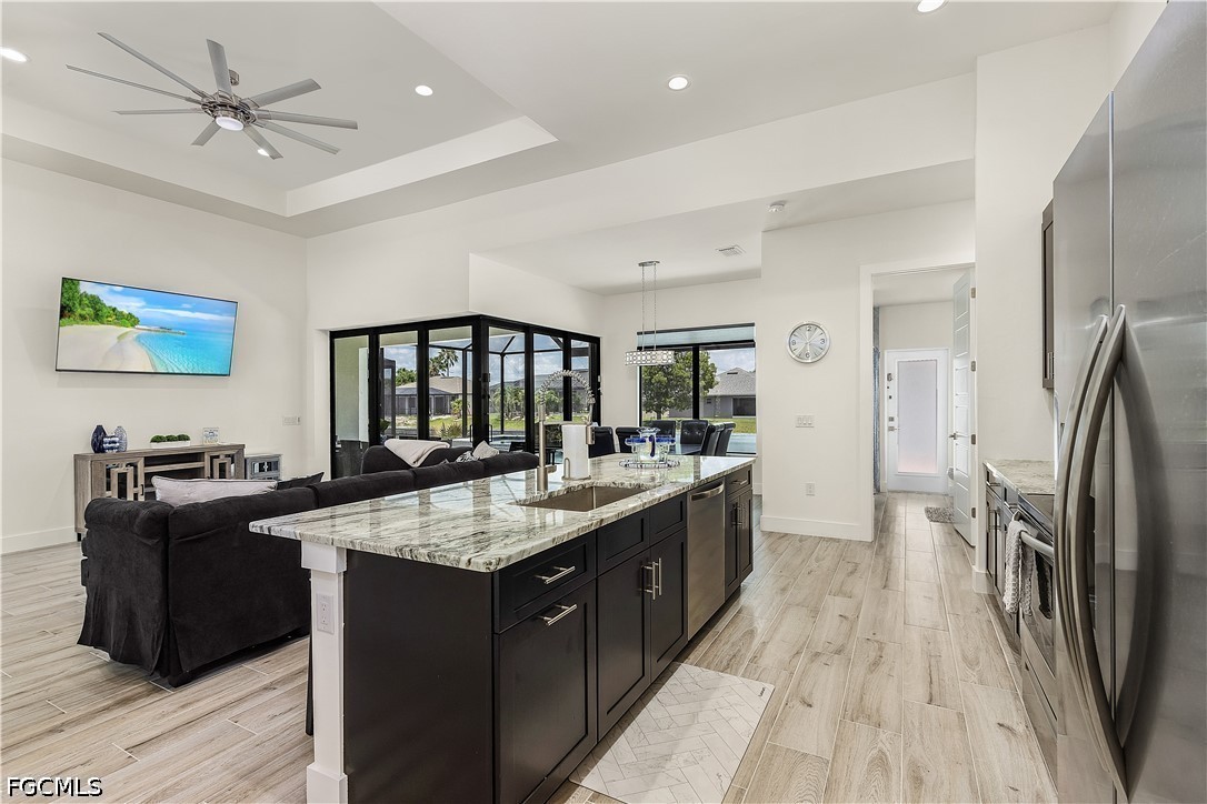 Price improvement! Newer construction modern waterfront home on freshwater canal. Desirable split floor plan and currently a very successful short term vacation rental that is being sold turnkey. This can accommodate so many guests with the 4 bedrooms and den. Tasteful upgrades throughout. Enjoy the tranquil outdoor space from the upgraded pool package that includes a sun shelf and overspill spa that provides the calming noise of the flowing water and oversized screened lanai. Saltwater electric heated pool and spa. Enjoy the panoramic views of the canal and the opportunity to view the endlessly changing wildlife. All while being able to get a glimpse of the outdoors inside from your 90 degree slider. Very close proximity and walking distance to local restaurants, shops and just a 10 minute drive to Matlacha.