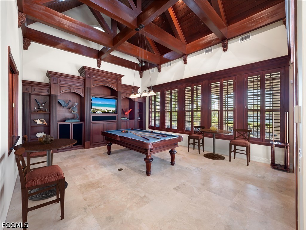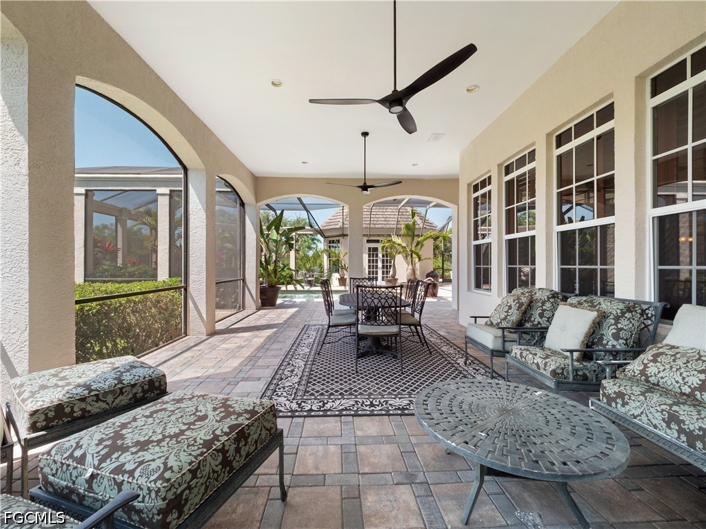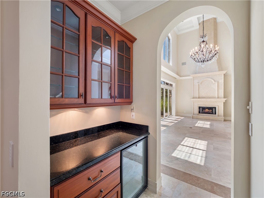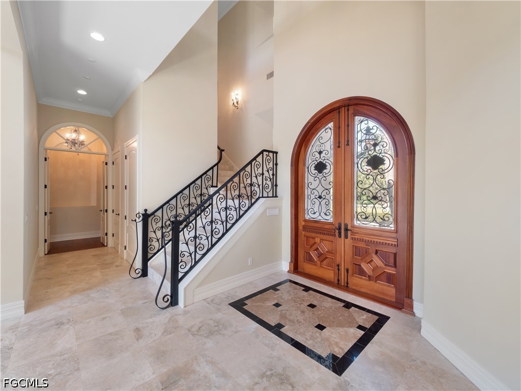 Experience timeless elegance and exceptional waterfront living in this custom-designed French Colonial estate by renowned architect Bud Lawrence. The home is ideally situated on a private, one-acre homesite within the prestigious gated community of St. Charles Harbour Yacht Club. Located on Waite Island, a private exclusive enclave within St. Charles that 1 of only 8 enjoy. Surrounded by serene waterways and offering deep-water boating access, this property is a rare blend of architectural beauty, privacy, and lifestyle. From the moment you arrive, the home’s charm is undeniable — featuring a grand courtyard and striking architectural elements and details throughout. Inside, the dramatic foyer opens to soaring 25-foot coffered ceilings and a breathtaking 20-foot stone fireplace wall, complemented by intricate faux finishes, custom columns, and elegant wrought iron accents. Designed for both refined living and entertaining, the home offers a gourmet kitchen with butler’s pantry, spacious family room, formal living areas, and a private office with custom cabinetry and library walls. A dedicated media room with full bar, wine cellar, and private elevator further elevate the experience. The residence features five bedrooms, including an impressive VIP suite with dual baths, along with a separate cabana guest suite — ideal for hosting guests or creating a private retreat. Step outside to enjoy incredible water views from nearly every angle, with expansive outdoor living spaces and a private dock equipped with two boat lifts — perfect for accommodating multiple vessels and enjoying direct deep-water access to the Gulf. Located just minutes from Sanibel and Fort Myers Beach, as well as shopping, dining, the airport, and top schools, this home offers both convenience and exclusivity. Residents of St. Charles Harbour also enjoy access to a private marina, clubhouse, tennis, and pickleball. A truly exceptional opportunity to own a private waterfront estate where luxury, boating, and timeless design come together.