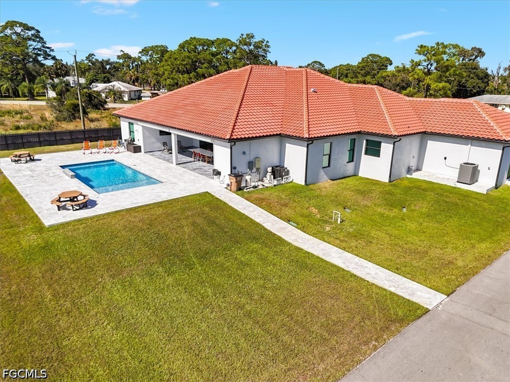 The property features a 3,000 sq ft main shed (50x60), a second shed measuring 14x30 with an office and full-size bathroom, and a 14x100 chicken coop—ideal for storage, workspace, or agricultural use. All appliances are included, including washer and dryer located in a private laundry room. Conveniently located near Riverdale High School, Southwest Florida International Airport, and Edison Mall.