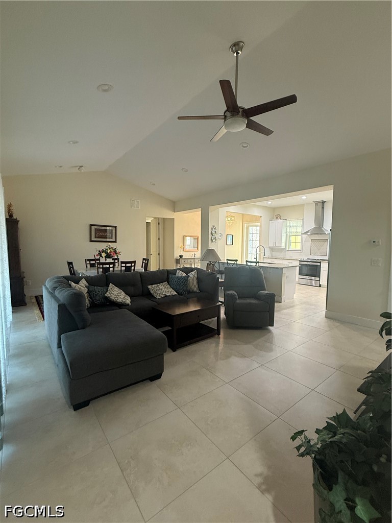 The home has all tile flooring throughout for a clean, modern look and easy maintenance. High ceilings and an open-concept layout create an airy, light-filled atmosphere, perfectly complemented by a large kitchen featuring a stunning backsplash and ample space for cooking and entertaining.