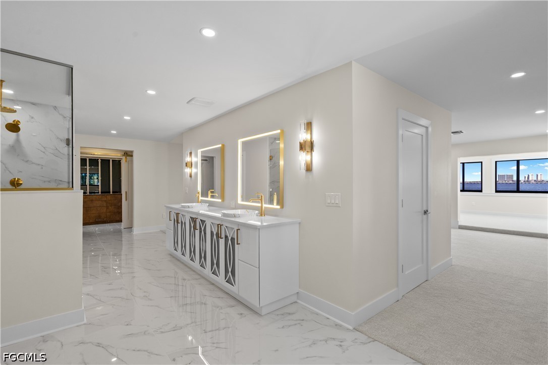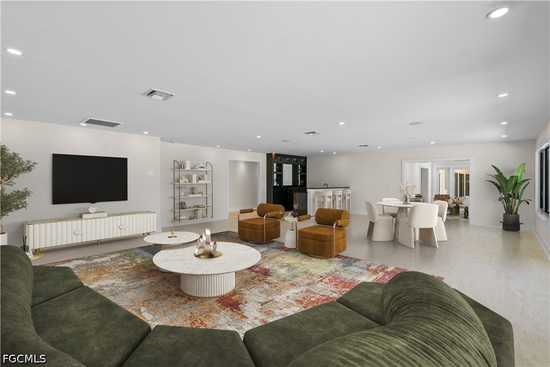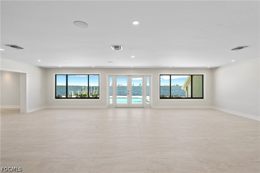 Welcome to 752 Overiver Drive. This stunning estate offers unobstructed panoramic views of the Caloosahatchee River with the Downtown Fort Myers skyline shimmering across the water. Set in the quiet residential enclave of Overiver Shores in North Fort Myers, this fully reimagined waterfront residence offers the rare combination most buyers only dream about: complete privacy and serenity on one side, and one of Southwest Florida's most dynamic urban skylines on the other. Offering 5 bedrooms, a workout room, 5 full bathrooms, and over 6,000 square feet of living space, this estate offers a uniquely expansive layout unlike anything available today. The home has been transformed from the ground up — no compromises, no shortcuts, nothing left unfinished. Completely replumbed with PEX, all new electric panels & wiring, four brand new state-of-the-art HVAC systems & duct work, PGT impact windows & doors, high impact garage doors, and so much more, this home is the definition of move in ready. The design work throughout is unmatched. Step through the front door and the first thing you notice is the staircase. Designed by a world renowned interior designer and hand-fabricated by master craftsman Lawrence Voytek — a collaborator of Robert Rauschenberg — it is a functional sculpture, one born from a genuine creative collaboration. It sets the tone for everything that follows. And everything that follows delivers. The interiors were conceived by an artist from start to finish and exudes Hollywood regency design, creating a sense of flow and intention that moves through every room. Finishes were curated, not selected off a shelf: plumbing by Ferguson, tile and surfaces by ProSource, custom cabinetry crafted by Designs by Distinction, closet systems by Florida Closets, Emtek hardware by Smith & DeShields, lighting and accessories by Lighting First, and luxury appliances from FUSE Specialty Appliances. High-end Berber carpeting and tile floors are throughout. Outside, a resort-caliber pool anchors a professionally landscaped yard with turf that extends to the water's edge. An irreplaceable feature of the back yard is the private boat launch. A fully monitored alarm system, sound system, and Wi-Fi infrastructure are already in place. For this home, there is nothing to renovate, nothing to update, nothing to wait on. Just an exceptionally designed waterfront estate. Where the river is your backyard and the skyline as your view, this property offers more than any other in Southwest Florida.