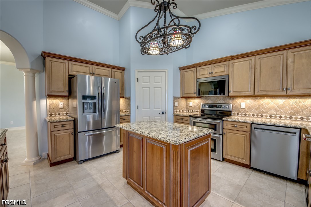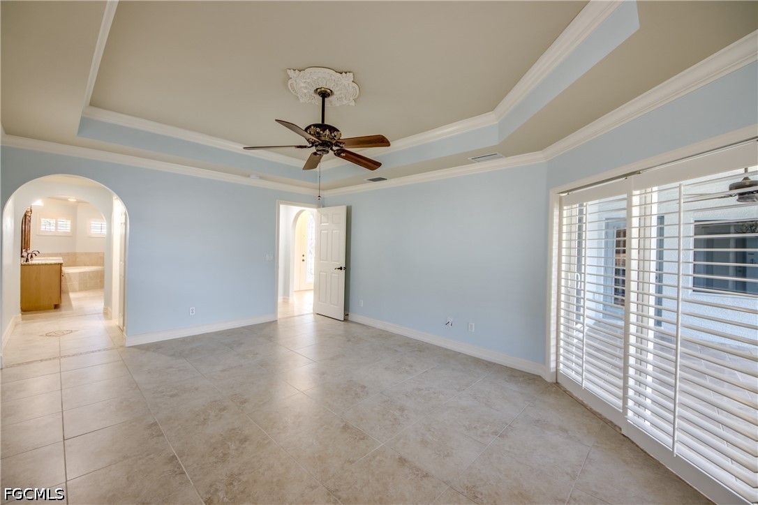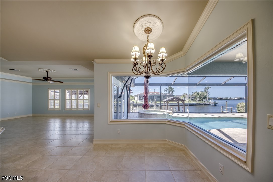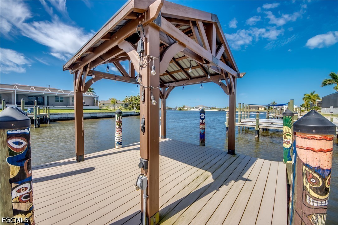 GORGEOUS HOME FEATURING AMAZING SUNSETS! . . . This stunning three-bedroom, two and a half-bath Mediterranean-style home with a three-car garage, offers breathtaking water views and welcomes coastal living. Built by Villa Homes and lovingly maintained by its owners, the property is designed to maximize enjoyment of the water, featuring an angled kitchen window that showcases both the pool and intersecting canals. High ceilings in the main area and tray ceilings in the great room and primary bedroom. The primary bedroom opens out onto the pool deck and has a large ensuite with soaking tub, walk-in shower and a large, shared closet with built-ins. Two guest bedrooms are on the opposite end of the home with a shared bath between them. The gourmet kitchen, fully renovated in 2025, features rich wood cabinets, granite countertops, stainless steel appliances, under-counter lighting, pull-out shelving, a built-in ice maker and a walk-in pantry - perfect for entertaining. The screened lanai includes a heated pool, raised spa and a dedicated pool bath. Stairs descend to the Captain’s Walk, where benches offer a place to relax and enjoy nature. The wrap-around composite dock has a 13,000-pound boat lift, tiki hut, providing direct access to Pine Island Sound. Inside, the home boasts wood plantation shutters, crown molding, and a freshly painted interior in serene pale blue tones. Additional highlights include a new barrel tile roof, hurricane shutters and impact-rated openings, tile throughout, a full-house osmosis system, new air conditioner, EV hook-up, fenced yard, and an exterior shed rated for 150 mph winds. Near Crystal Lake Park and Burnt Store Marina, this exceptional home captures the best of Florida’s waterfront lifestyle.