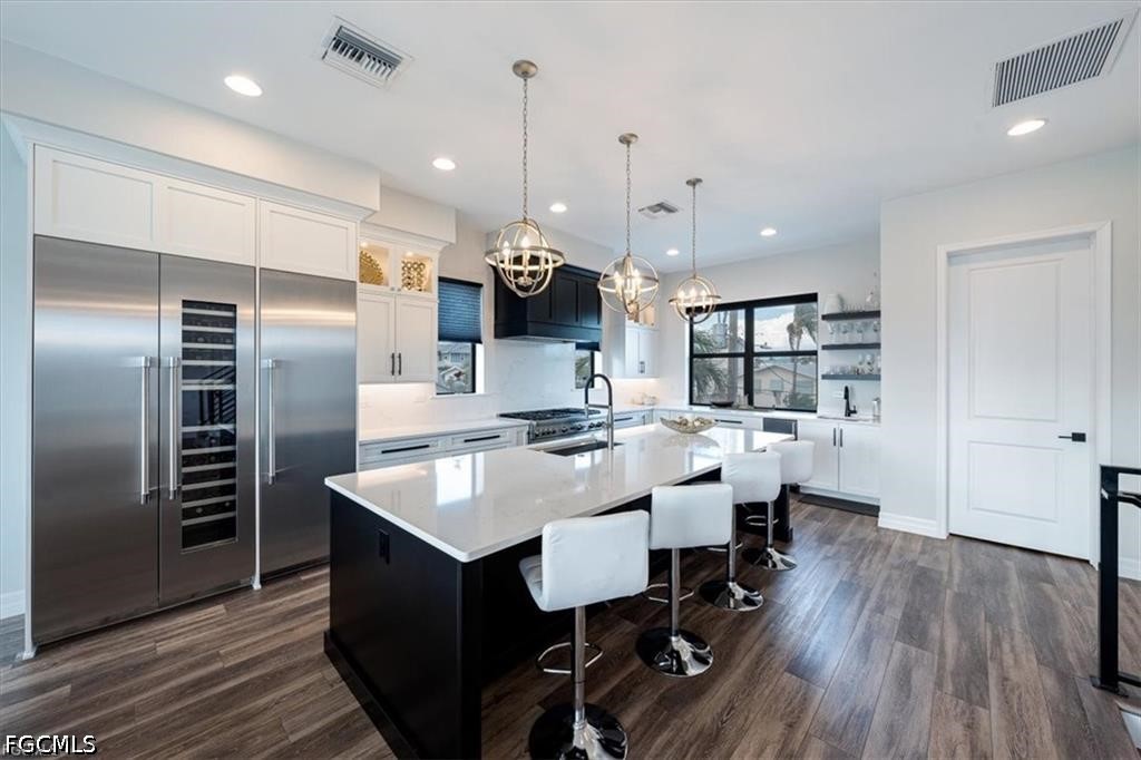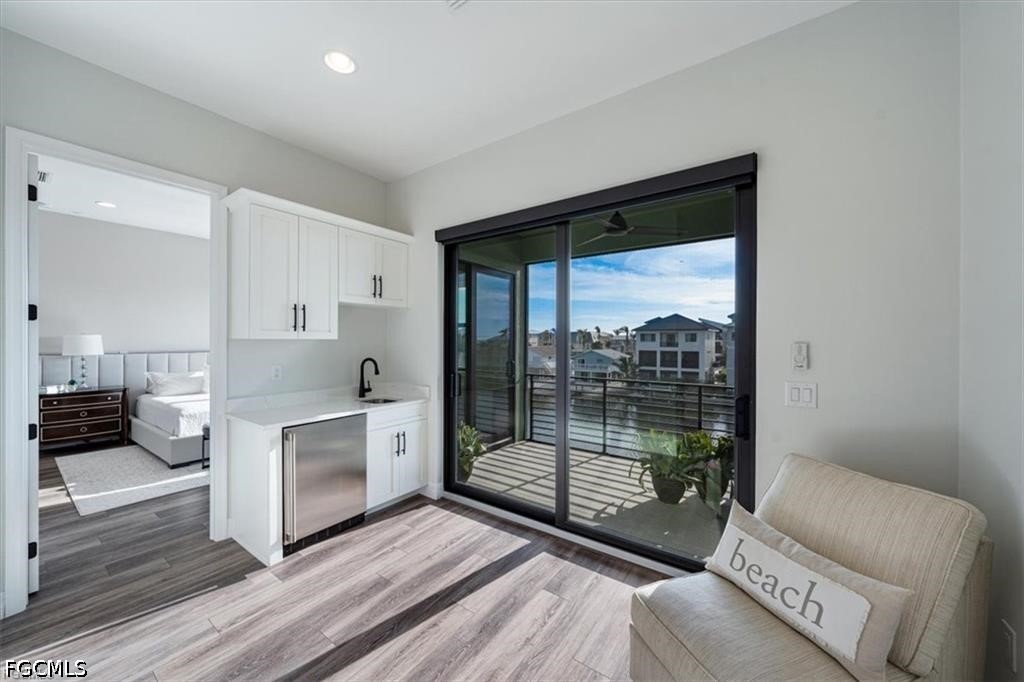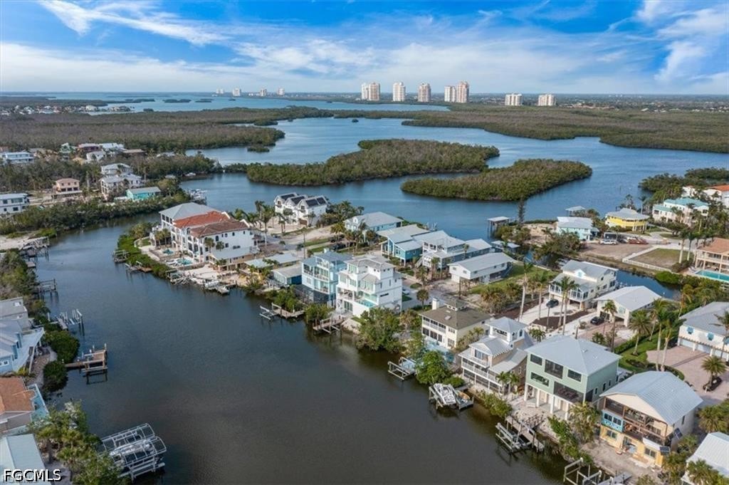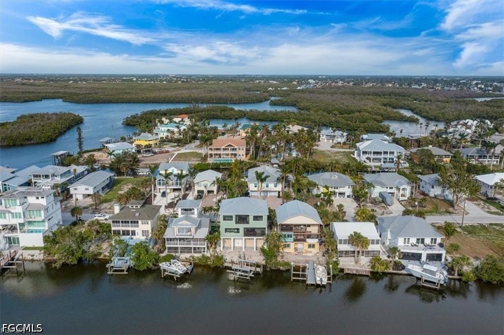 This 2021 coastal custom home captures the easy rhythm of Bonita Beach living. Set in a quiet, protected cove with no HOA, just steps to Beach Access 1, Doc’s Beach House, and Coconut Jack’s, offers 15 min Gulf access, a private dock with shore power, and a 16,000 lb. lift that makes boating part of everyday life. Impact-rated windows and doors bring peace of mind, a bright main level centers around a Thermador gourmet kitchen, custom cabinetry, quartz counters, large island made for gathering. The great room opens to a breezy screened lanai with water views. Every bedroom is ensuite, including a serene primary suite with lanai, wet bar, and sunset views. A second ensuite guest room, a flex ensuite with Murphy bed, and not 1 but 2 laundry centers add comfort and convenience. A private elevator connects all levels, along with generous storage and a spacious 2.5 car garage. This is coastal living where boating, beach days, and sunsets come naturally.