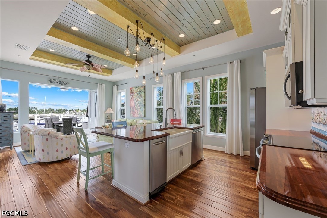 Welcome to your dream waterfront home in Cape Harbour! This "Funky Fish House" home offers everything you could desire. With 2 spacious bedrooms each with an on suite luxurious bathroom plus an extra bedroom/efficiency, there is plenty of room for the whole family to enjoy. The 2 car garage provides ample space for vehicles and storage needs. The custom teak wood flooring throughout the home adds a touch of elegance and warmth, while the metal roof ensures durability and longevity. Beautifully crafted ceilings, Two laundry areas in residence, Impact windows and doors, you can rest easy knowing your home is protected from the elements. Custom woodwork can be found throughout the entire home, adding a touch of sophistication and charm. The elevator provides easy access to all levels of the home, making it convenient for everyone. Animal lovers will appreciate the air-conditioned dog room with a water system. After a long day, unwind and sit on the patio to watch the picturesque sunset surrounded by nature and tranquility. Don't miss your opportunity to make this your forever home. Schedule a showing today and experience the luxury and comfort that awaits you.