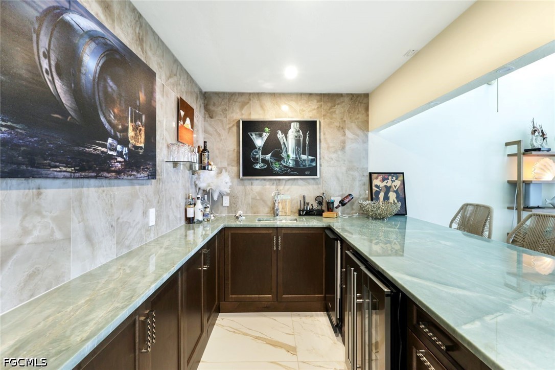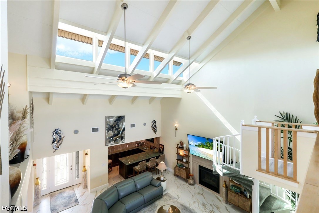 Stepping into this home, you’re immediately welcomed by a bright, open living space designed for both comfort and entertainment. The expansive great room flows seamlessly into the chef’s kitchen, with exotic Brazilian Quartzite countertops, a large center island with generous seating, Bosch double ovens, cooktop, and dishwasher, LG refrigerator makes dual ice, Sharp Pull-out drawer Microwave, A pot-filler and Kraus sink create a true culinary experience. A full bar with matching Brazilian Quartzite, beverage cooler and icemaker opens to the living area complete with a fireplace, making the entire space ideal for gatherings. 2024 updates include all new kitchen cabinetry, new porcelain 3x3 tile floors throughout the entire first floor. Impact windows and doors throughout, with the exception of one upstairs slider equipped with manual hurricane shutters.