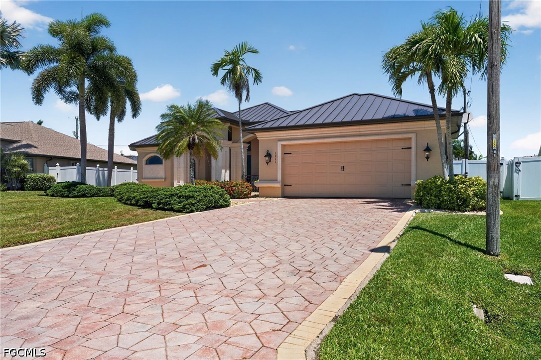 High-end construction in desirable Cape Coral! This 4 bed, 2.5 bath home offers 2,775 sq ft with a private pool and spa. Enjoy peace of mind with a generator hookup, standing seam metal roof, and high-impact doors and windows. High-end touches include plantation shutters, 10’ ceilings, 8’ solid core doors, and crown molding throughout. Spacious primary suite with dual California closets. Quality craftsmanship and upscale finishes throughout. High-end construction for less than $300 per sq ft—don’t miss this opportunity!