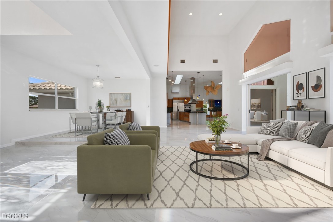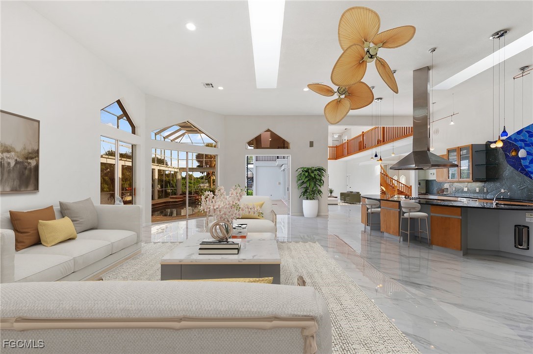 Updated SAILBOAT ACCESS pool Home! Experience the ultimate in waterfront lifestyle just minutes to Charlotte Harbor and the Gulf with no bridges to open water. Perfect for larger vessels and yachts, the property features an 80-foot DOCK with a lift and room for multiple boats. Step inside nearly 4,000 sq. ft. of living space, where soaring ceilings and natural light highlight the open concept design. A grand Bamboo wood spiral staircase sets the tone the moment you enter. The gourmet kitchen is a chef’s dream, showcasing sleek countertops and top-of-the-line appliances, ideal for both everyday living and entertaining. Propane cooktop. The renovated primary suite boasts a spa-inspired bathroom with a custom shower, soaking tub, dual sinks and designer lighting. Additional bathrooms have also been beautifully updated with modern finishes and new porcelain tile. Oversized 3-car garage. Whole-house generator & underground utilities Multiple A/C units and mini splits. Relax by the pool, host guests or set out on the open water. The choice is yours. Located between Sarasota and Fort Myers, with easy access to US-41, I-75 and 10 miles from Punta Gorda airport. Port Charlotte is a boater’s paradise, within close proximity to beautiful Gulf beaches and waterfront destinations throughout Southwest Florida. Whether you are seeking a full-time residence, seasonal escape or investment property, this one-of-a-kind waterfront retreat delivers the luxury, comfort and convenience you’ve been searching for. Living room, Family room and first floor primary suite photos have been virtually staged.