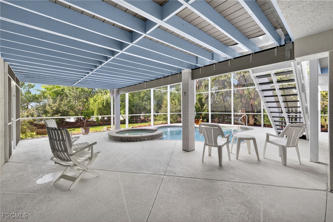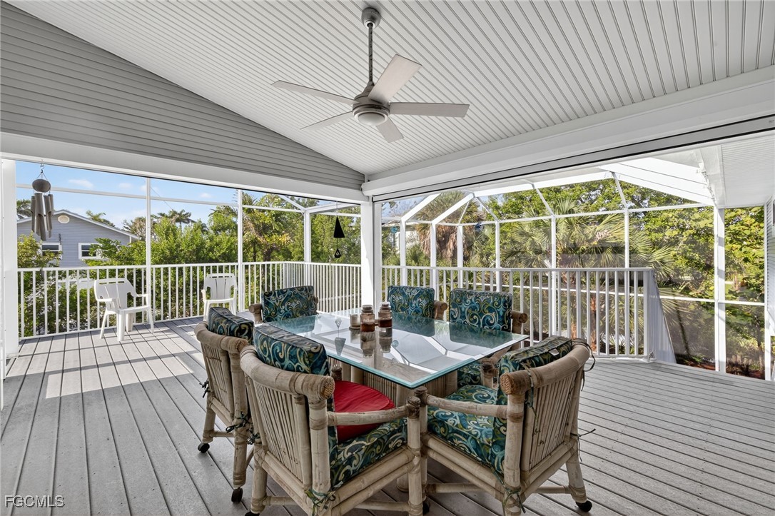Welcome to the Sanibel lifestyle. Step inside this inviting elevated home, where vaulted ceilings and abundant natural light create a bright and welcoming atmosphere. The spacious living and dining areas flow seamlessly into a large kitchen, complete with a laundry/pantry room offering extra cabinetry, counter space, and a convenient sink. This residence features four bedrooms, including two expansive ensuite bedrooms, each with private access to outdoor sitting areas, and two additional bedrooms that share a full bath. Thoughtfully placed impact-resistant skylights with southern exposure bathe the interior in warm, natural light. The heart of the home extends outdoors to an expansive screened lanai, surrounded by mature landscaping that ensures privacy and tranquility. Perfect for entertaining or unwinding, the lanai offers both covered and open spaces, along with a sparkling pool and spa for year-round enjoyment under Sanibel’s sunny day and stunning night skies. Practical updates and features include a new roof (2023), impact windows, electric storm screens, manual shutters on the ground level, and an oversized two-car garage with additional storage. Ideally located on 1714 Atlanta Plaza, this property is just a short walk or bike ride to Sanibel’s renowned shell beaches and island amenities, making it the perfect blend of comfort, convenience, and paradise living.