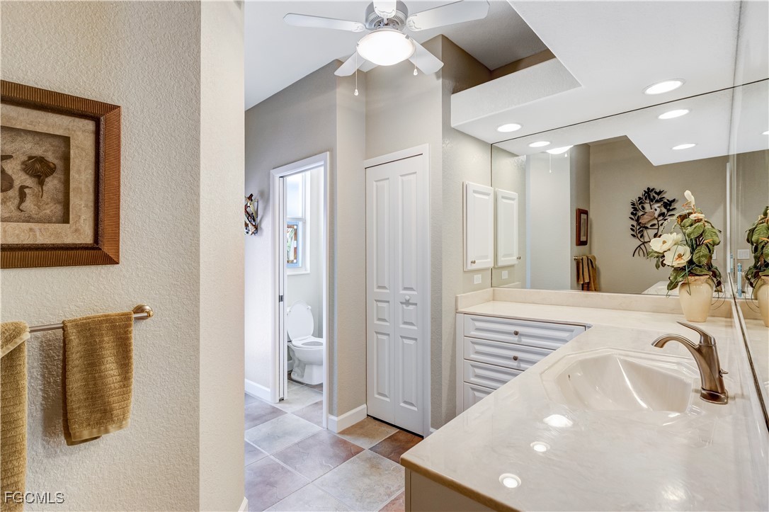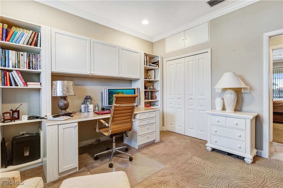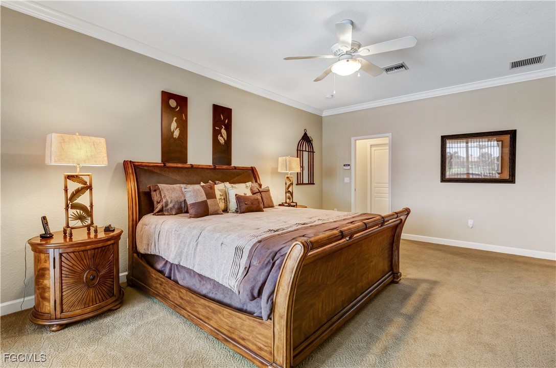 The spacious master suite is a true retreat, featuring a massive walk-in closet with custom built-in shelving.