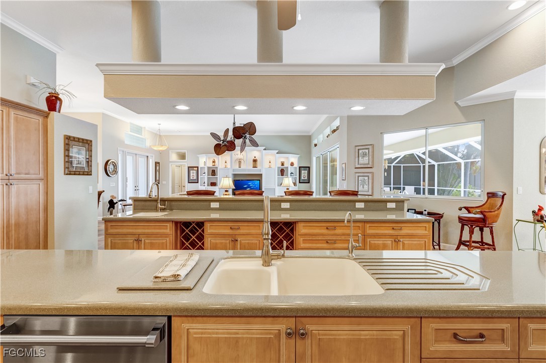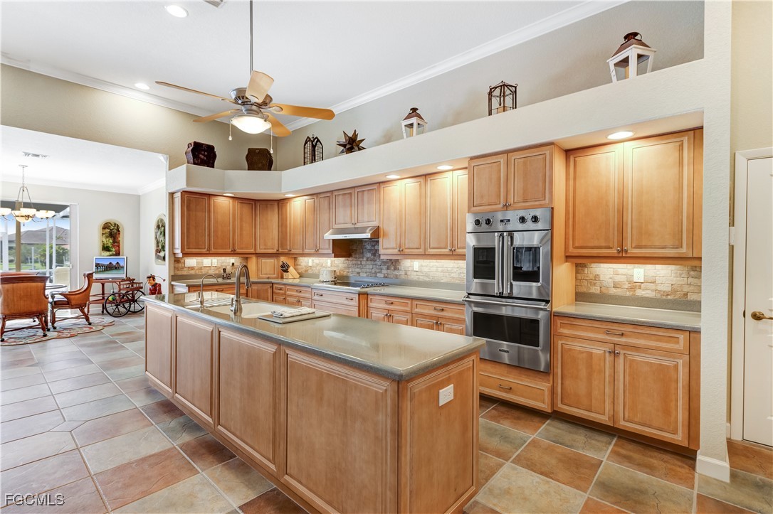 Inside, the home showcases a spacious kitchen outfitted with brand-new Viking stainless steel appliances, including a French door refrigerator, double oven with French door, cooktop and hood, dishwasher, and an under-counter microwave. Every detail has been thoughtfully upgraded for both style and convenience. 3 bedrooms feature slider access to the lanai which allows for the perfect Florida indoor/outdoor living.