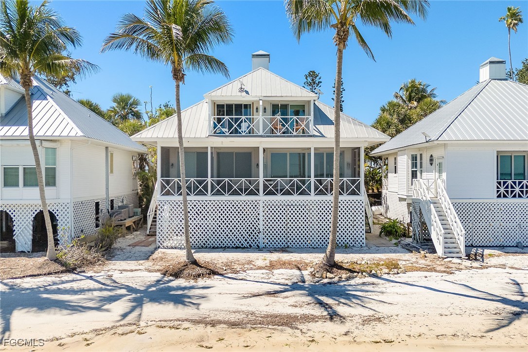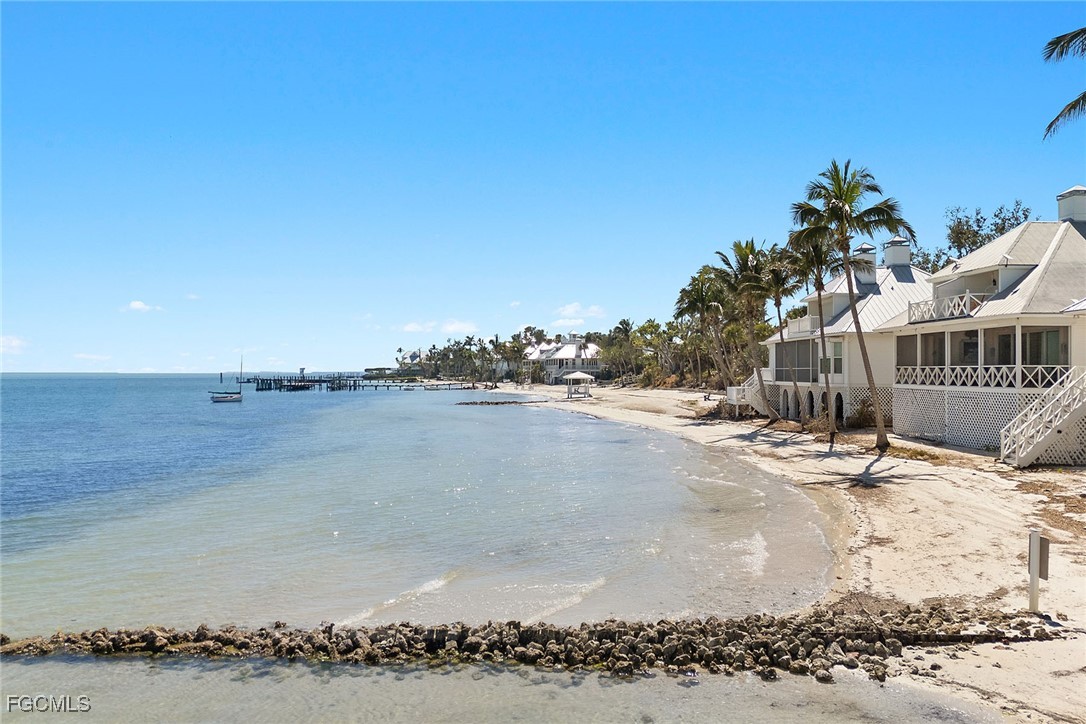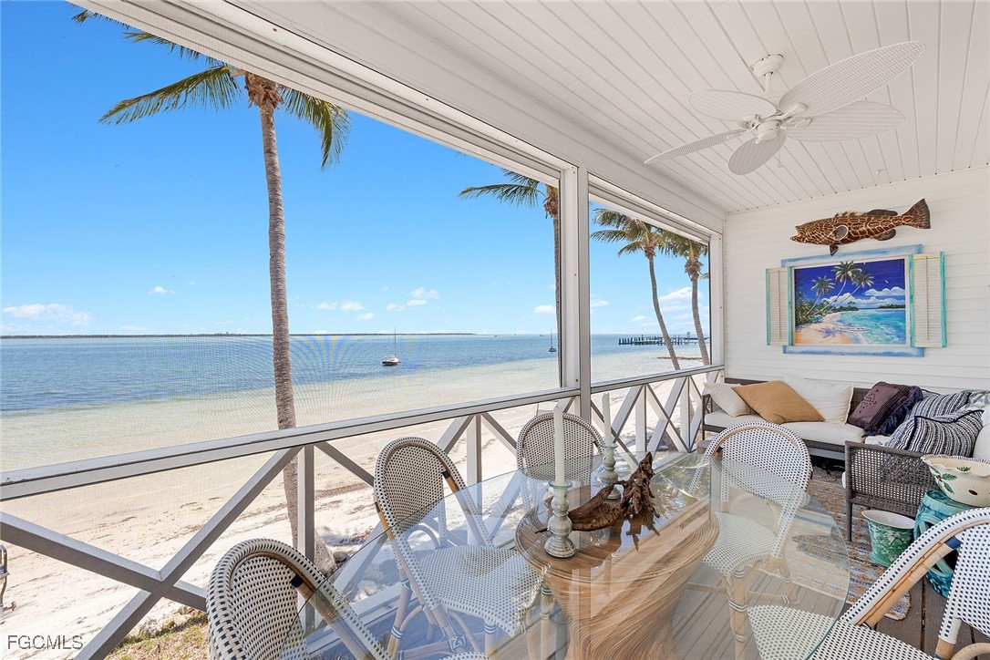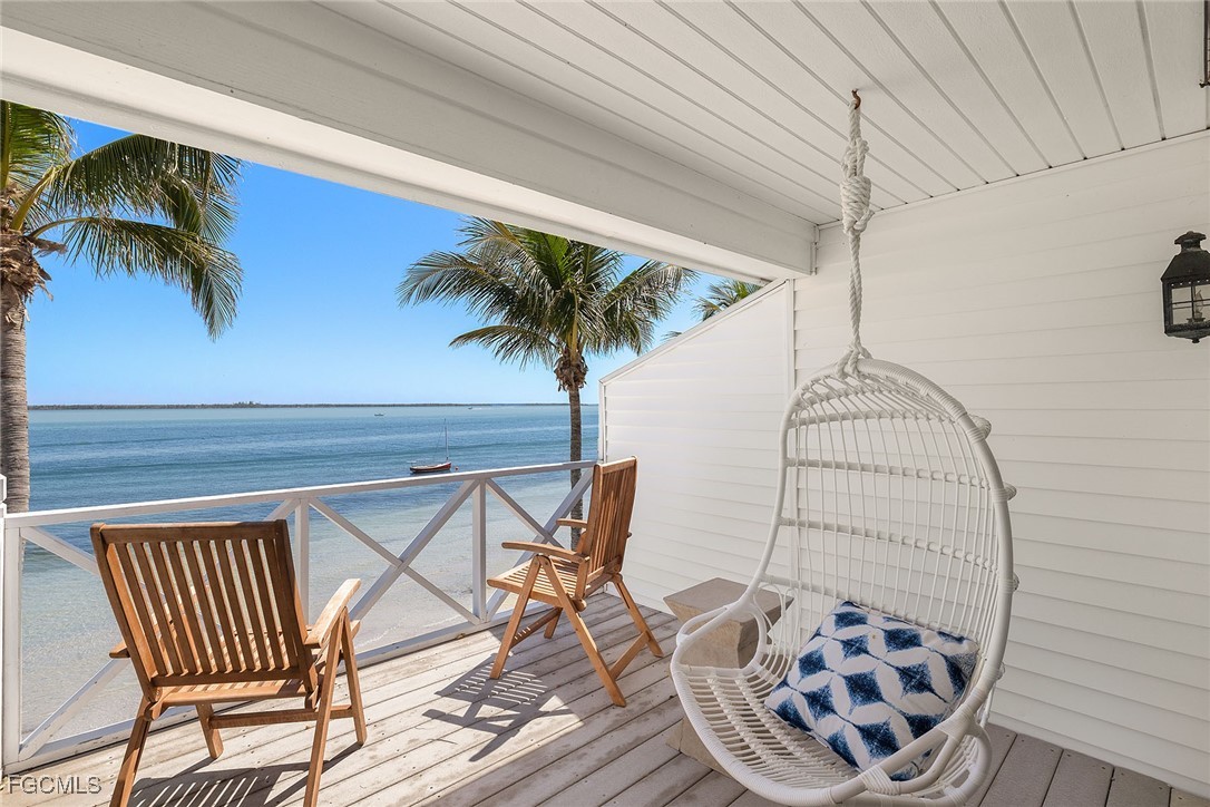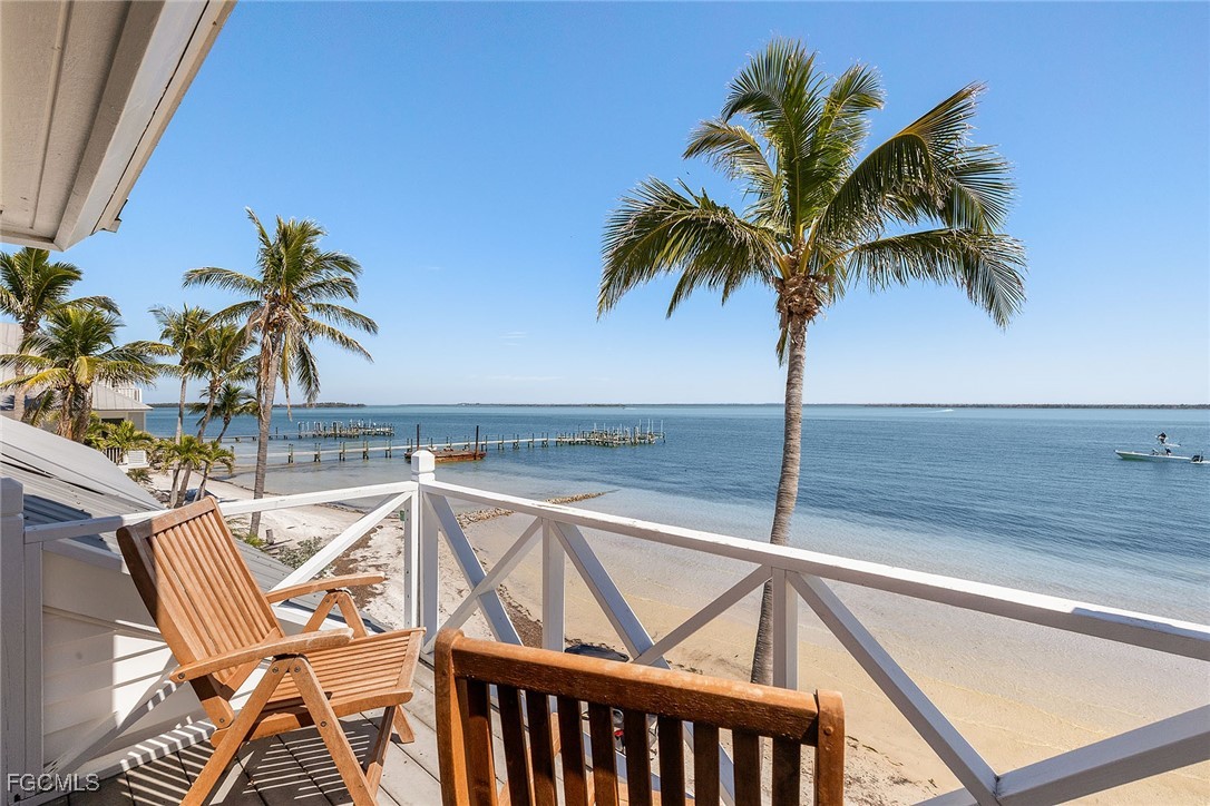 114 North Useppa Island is a rare and distinguished island beach property that offers a luxurious and functional family waterfront/beach lifestyle while providing its new owners seamlessly never ending breath breathtaking views of Pine Island Sound and the historic Cuban rancheros stilt houses. In the summer of 2020, the home went through extensive renovation. New Bosch kitchen appliances, wide plank ceramic wood-look tile flooring throughout the house, new furniture and refreshed interior painting throughout. In 2022, the home received new storm sliders to open up to the living room, and new slider doors in the main. All windows were resealed to hurricane code and the metal roof refastened with upgraded screws. The exterior of the house is white vinyl siding and has spacious decking with direct access to the beach to the east, and to the west the Useppa Island Club Marina and the historic pink path. The interior boasts a high-grade elevated architectural layout and design utilizing all 1,206 square feet to the upmost potential. The living area features ceramic wood-look tile flooring, custom plantation shutters and solid core doors are found throughout the home. First-floor living features a chef's kitchen with Bosch appliances and gas stove, marble countertop, open living room with a dining area all with stunning open water and beach views. There is a downstairs bedroom with en suite that could serve as a ground floor main bedroom and with western views toward Useppa Marina. Your villa comes with a deeded under 24-foot boat slip in the Useppa Island Club Marina which is conveniently a few hundred feet directly west of the house. Second floor living, the upstairs primary main bedroom suite is spacious and has dual custom sinks, and convenient upstairs laundry room. A private deck of the main bedroom overlooks the expanse of Pine Island Sound.