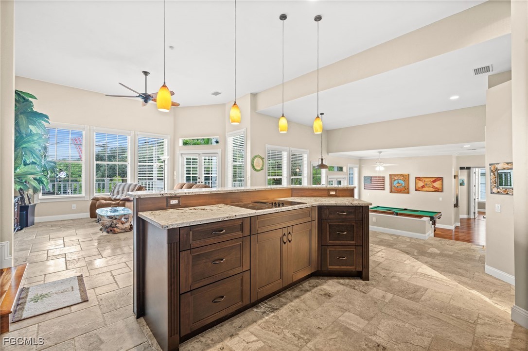 The multi-level custom floorplan creates the feel of a luxurious treehouse, with expansive living spaces and panoramic views. A standout feature of the home is the custom built-in bar, ideal for entertaining or relaxing after a day on the water. The open-concept design flows seamlessly into indoor and outdoor living areas, making it perfect for hosting family and friends.