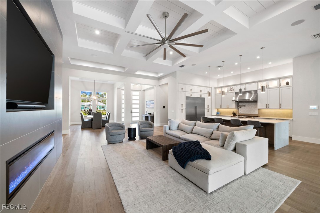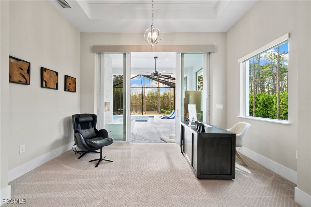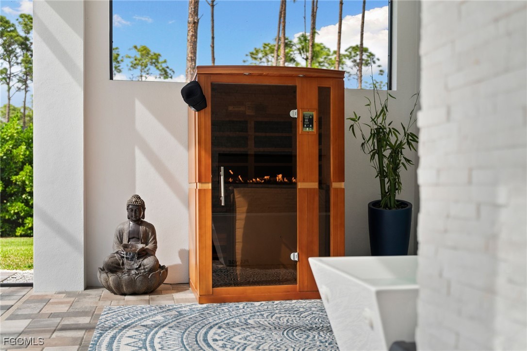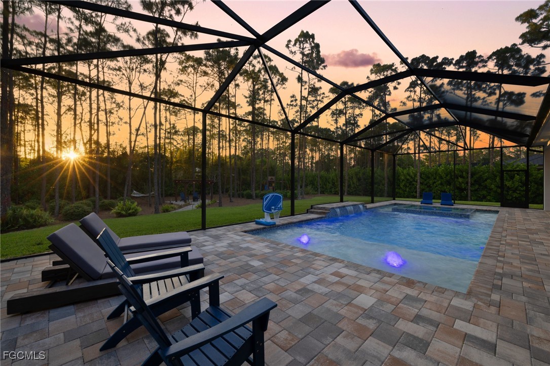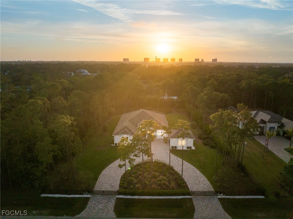 A rare opportunity to own a newer construction luxury estate home in the highly sought-after San Carlos Estates of Bonita Springs—an extremely private, lushly landscaped, and GATED 1.25-acre retreat where modern sophistication meets resort-style living. Available FULLY FURNISHED, showcasing designer pieces from Restoration Hardware, West Elm, and select curated brands. Spanning 3,054 sq ft under air (5,336 total), this open-concept residence features 3 bedrooms plus a dedicated office (easily convertible to a 4th bedroom; plans for a closet are available), 3 full baths, a Dining Room, and two oversized 2-car garages. A wall of 10-foot sliding glass doors creates seamless indoor-outdoor flow to a resort-style lanai with a fully automated custom 40’ pool and spa featuring a 360° negative-edge spillover spa, LED-lit bubblers, three sheer-descent waterfalls, and an oversized sun shelf. The fully equipped outdoor kitchen—with leathered granite, gas grill, hood, sink, and beverage refrigerator—plus a dual-sided gas fireplace, infrared sauna, and cold plunge create a private wellness retreat. Inside, the chef’s kitchen showcases over $40K in Thermador appliances, a massive quartz waterfall island, white shaker cabinetry, and a stylish dry bar with wine refrigerator. The great room centers around a custom fireplace and TV wall, while the primary suite offers a private sitting area/workspace, freestanding soaking tub, dual Pompeii quartz vanities, two spacious walk-in closets, in-ceiling Sonos speakers, and designer lighting. Secondary bedrooms include a VIP en-suite and a third that can be closed off with its own bath for guest privacy. Additional highlights of this fully integrated smart home include two new Lennox A/C systems (2024), a whole-house Generac generator, 1,000-gallon buried propane tank, multi-zone Sonos audio, automatic motorized shades, iSmartGate entry, security cameras, and centralized control via the in-wall iPad. Garage doors, cameras, and every light switch can be controlled remotely with ease—at the touch of a button from anywhere in the world. Fully fenced and DUAL GATED, this property is perfectly positioned near the end of Dietz Dr—most desirable street in neighborhood—offering stunning west-facing sunsets, exceptional privacy, and quiet surroundings while being minutes from everything. Built to the latest codes, the home sits high and dry (not in a flood zone/no flood insurance required) for total peace of mind. Professionally landscaped grounds feature mature greenery, bamboo, clusia hedges, a lit pergola, fire pit, garden, butterfly garden, hammock, and play area. No HOA or rental restrictions. Ideally located minutes from Coconut Point, Bonita Beach, and the area’s best shopping and dining, this exceptional home combines luxury, technology, and tranquility in one perfectly executed estate. Be sure to inquire or visit the HIGHNOTE link for tons of additional details, including the feature sheet, plans, 3D tour, video and more!