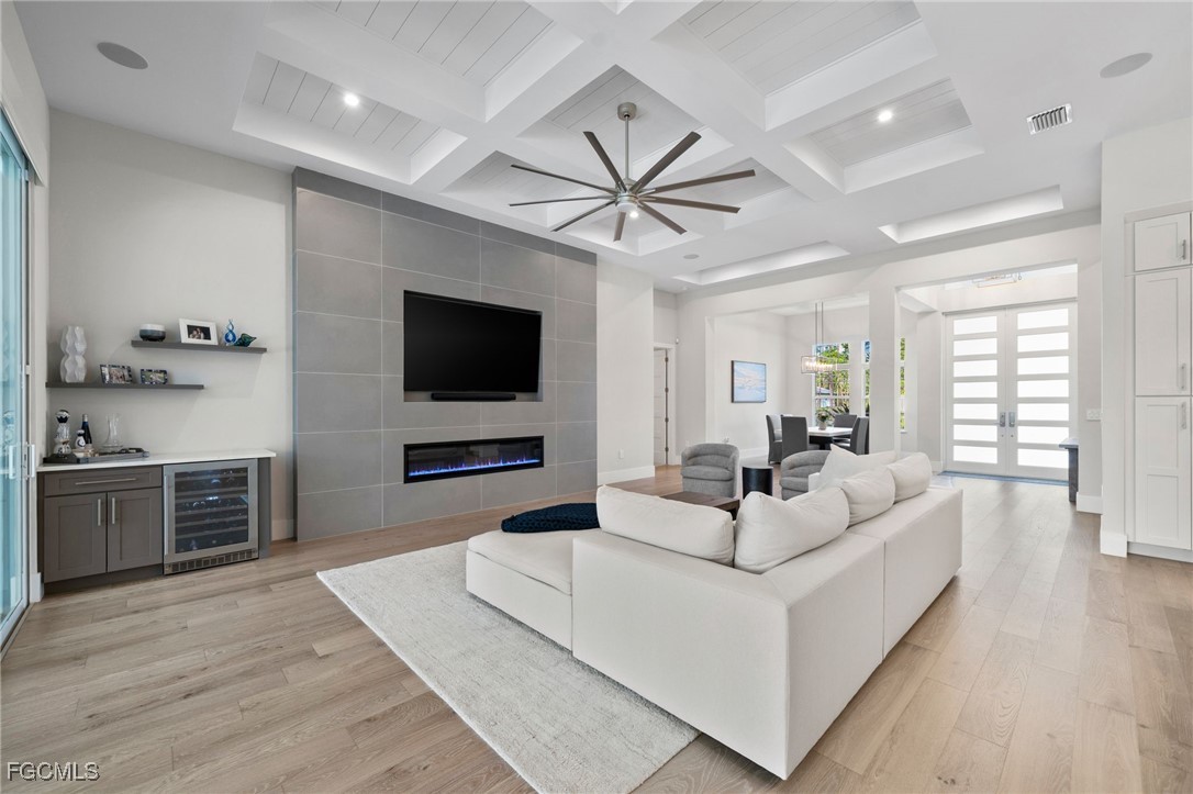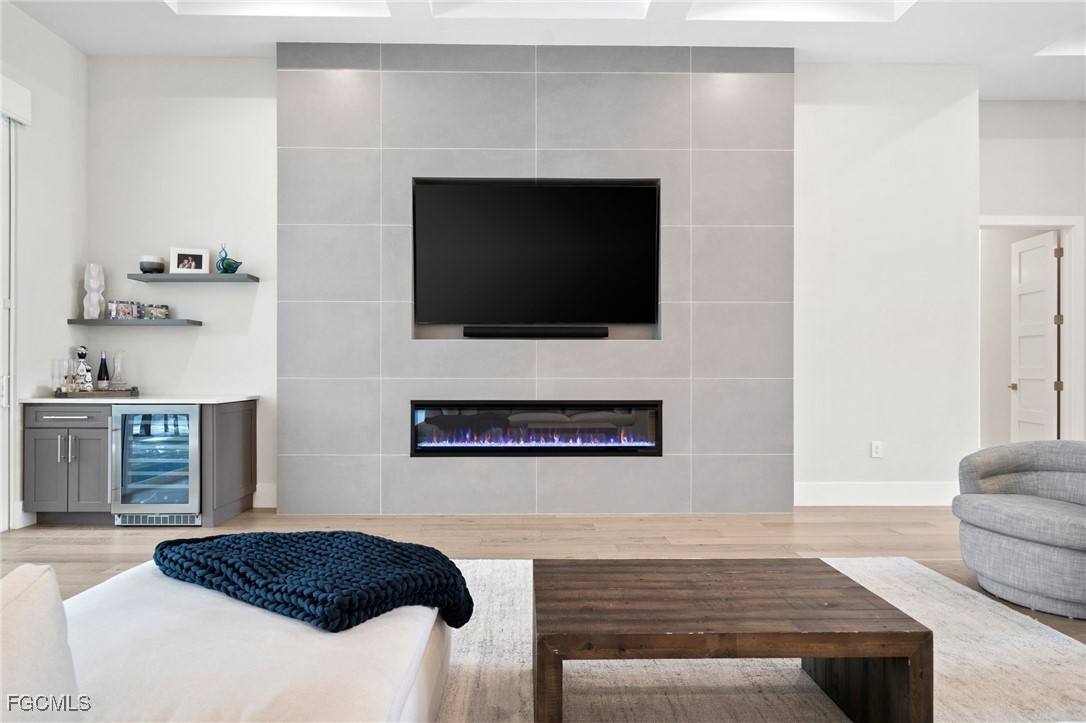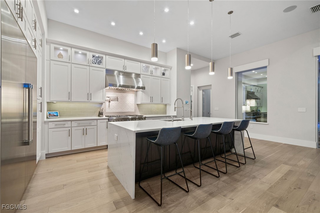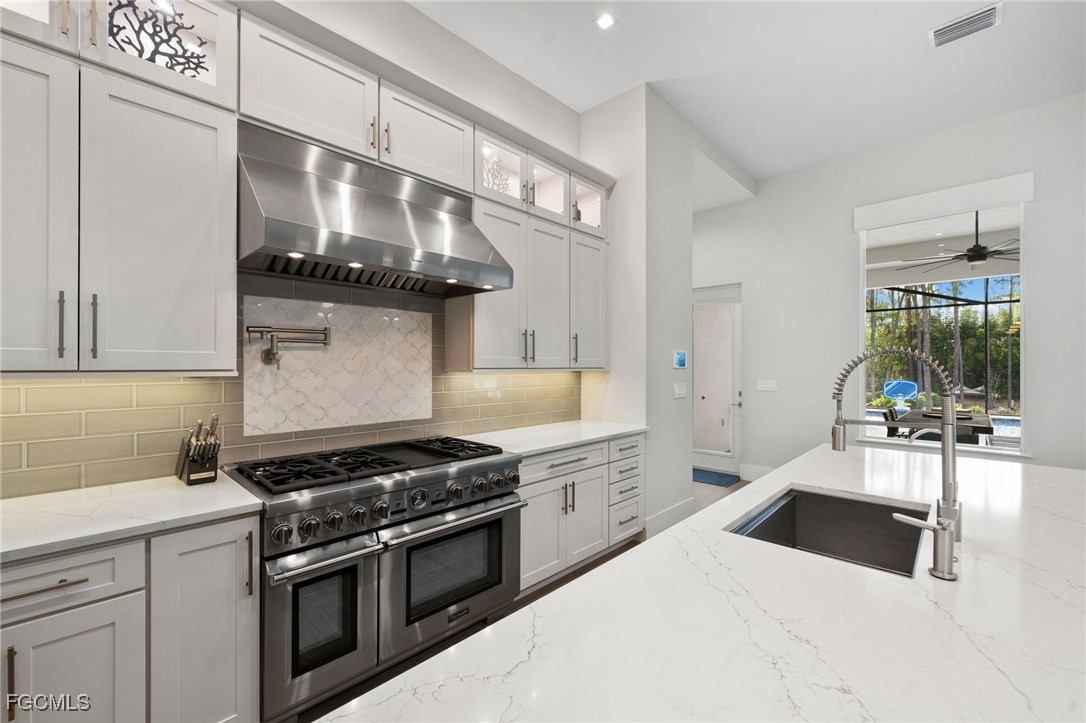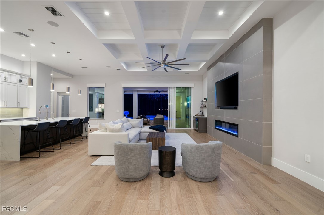 A rare opportunity to own a newer construction luxury estate home in the highly sought-after San Carlos Estates of Bonita Springs—an extremely private, lushly landscaped, and GATED 1.25-acre retreat where modern sophistication meets resort-style living. Available FULLY FURNISHED, showcasing designer pieces from Restoration Hardware, West Elm, and select curated brands. Spanning 3,054 sq ft under air (5,336 total), this open-concept residence features 3 bedrooms plus a dedicated office (easily convertible to a 4th bedroom; plans for a closet are available), 3 full baths, a Dining Room, and two oversized 2-car garages. A wall of 10-foot sliding glass doors creates seamless indoor-outdoor flow to a resort-style lanai with a fully automated custom 40’ pool and spa featuring a 360° negative-edge spillover spa, LED-lit bubblers, three sheer-descent waterfalls, and an oversized sun shelf. The fully equipped outdoor kitchen—with leathered granite, gas grill, hood, sink, and beverage refrigerator—plus a dual-sided gas fireplace, infrared sauna, and cold plunge create a private wellness retreat. Inside, the chef’s kitchen showcases over $40K in Thermador appliances, a massive quartz waterfall island, white shaker cabinetry, and a stylish dry bar with wine refrigerator. The great room centers around a custom fireplace and TV wall, while the primary suite offers a private sitting area/workspace, freestanding soaking tub, dual Pompeii quartz vanities, two spacious walk-in closets, in-ceiling Sonos speakers, and designer lighting. Secondary bedrooms include a VIP en-suite and a third that can be closed off with its own bath for guest privacy. Additional highlights of this fully integrated smart home include two new Lennox A/C systems (2024), a whole-house Generac generator, 1,000-gallon buried propane tank, multi-zone Sonos audio, automatic motorized shades, iSmartGate entry, security cameras, and centralized control via the in-wall iPad. Garage doors, cameras, and every light switch can be controlled remotely with ease—at the touch of a button from anywhere in the world. Fully fenced and DUAL GATED, this property is perfectly positioned near the end of Dietz Dr—most desirable street in neighborhood—offering stunning west-facing sunsets, exceptional privacy, and quiet surroundings while being minutes from everything. Built to the latest codes, the home sits high and dry (not in a flood zone/no flood insurance required) for total peace of mind. Professionally landscaped grounds feature mature greenery, bamboo, clusia hedges, a lit pergola, fire pit, garden, butterfly garden, hammock, and play area. No HOA or rental restrictions. Ideally located minutes from Coconut Point, Bonita Beach, and the area’s best shopping and dining, this exceptional home combines luxury, technology, and tranquility in one perfectly executed estate. Be sure to inquire or visit the HIGHNOTE link for tons of additional details, including the feature sheet, plans, 3D tour, video and more!