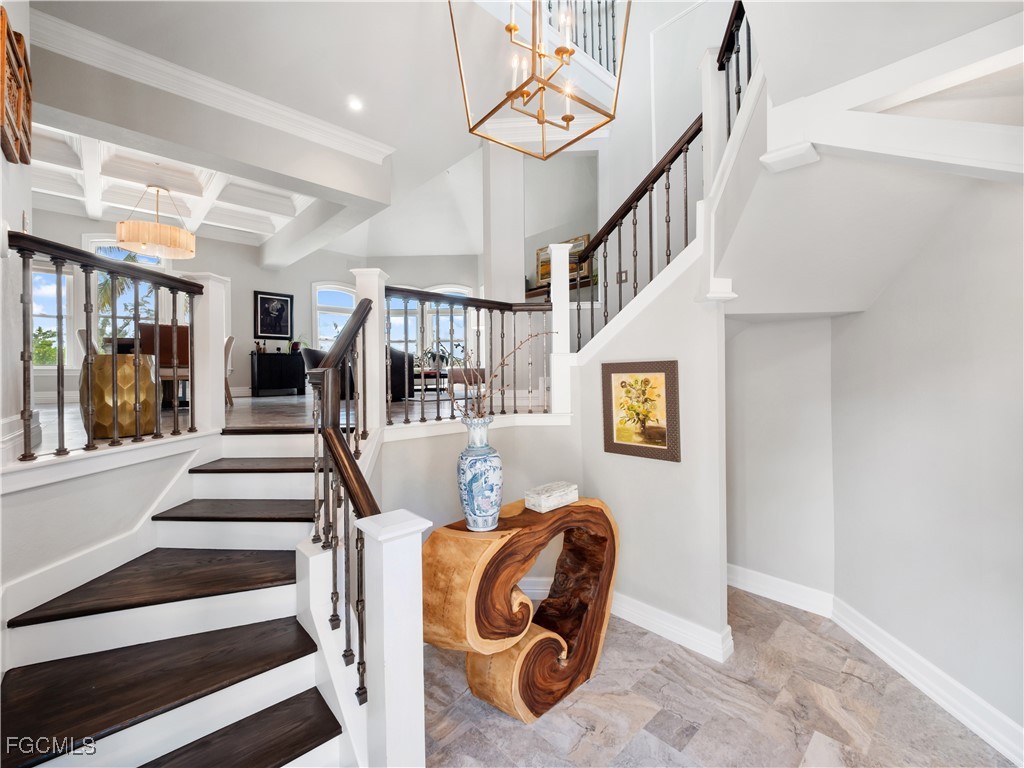 Welcome to St. Charles Harbour, one of Southwest Florida’s most esteemed and prestigious gated yachting communities. This is more than a home; it's a signature Bud Lawrence Designed Home, known for authentic traditional and classical architecture. Perfectly positioned on an oversized corner lot, this stunning elevated residence ensures a high and dry sense of comfort along with a grand design that is truly inviting. Step inside to a breathtaking foyer with a sweeping staircase that sets the tone for the home’s elegance. The main living area is warm and welcoming, filled with natural light and showcasing beautiful updates throughout. A chef’s kitchen with high-end appliances makes entertaining effortless, while multiple living and dining spaces create the perfect setting for gatherings. Upstairs, the private owner’s suite offers a peaceful retreat with serene views and a spacious layout. Guest suites are equally well-appointed, each with their own sense of comfort and style. This home easily converts into a 4 bedroom to accommodate more guests if needed. Enjoy the huge bonus space and recreation area downstairs on the lower level along with a 3 car garage. The outdoor living is nothing short of resort-worthy. A sparkling pool, expansive deck with a full outdoor kitchen and a sunken firepit lounge all overlook the pristine canal and preserve. Boating enthusiasts will appreciate the boating amenities with your own private dock with boat lift and covered canopy, dual floating jet ski docks with quick water access out to the bay and gulf waters. Additional highlights include impact windows and doors, new AC's, and a spacious multi-stall garage. St Charles Yacht Club offers a deep water full service marina to accommodate your larger boating needs, a club house with dining, community pool, tennis, bocce, shuffleboard and more. If you like to also play golf, St Charles Yacht Club enjoys an exclusive access to the adjacent Shell Point private Golf Course. Outside and just minutes away from St Charles Yacht Club you will enjoy the world renowned beaches of Sanibel & Captiva Island, fantastic dining and shopping amenities along with near by Hospital and schools. This home and community offers an exceptional value and experience for living the dream in SWFL.