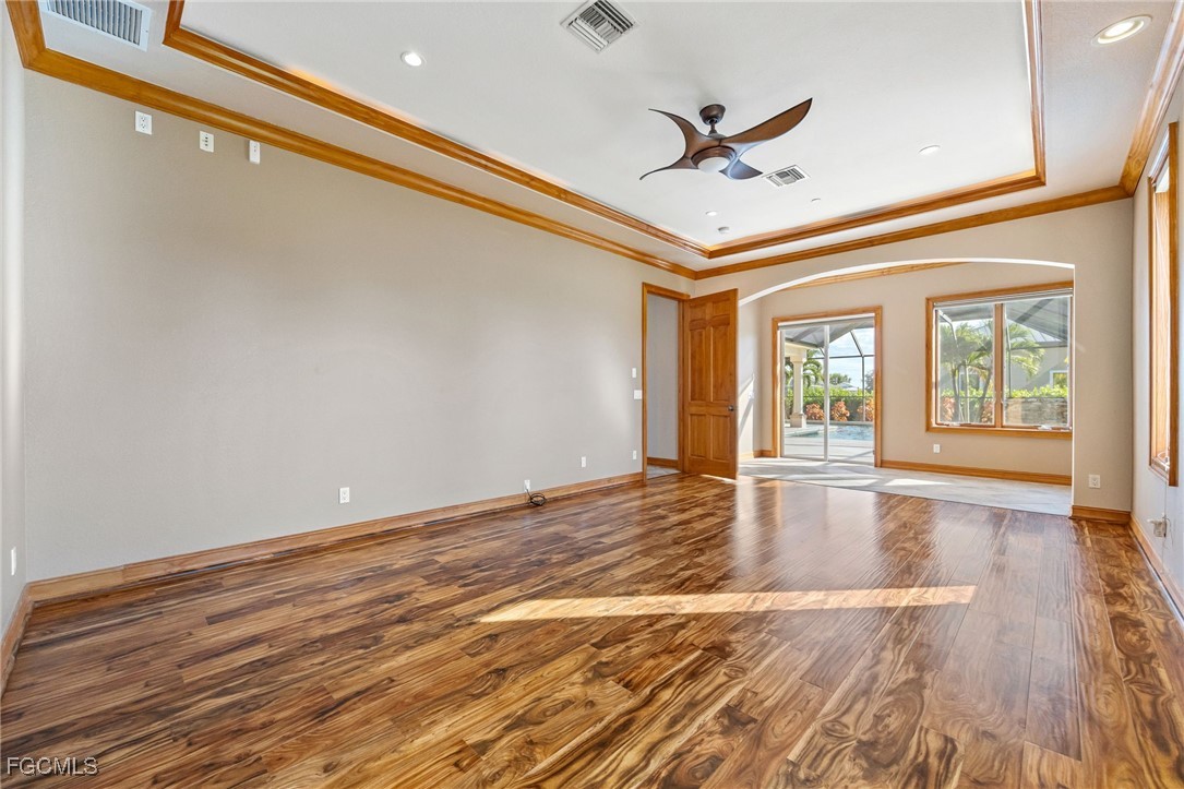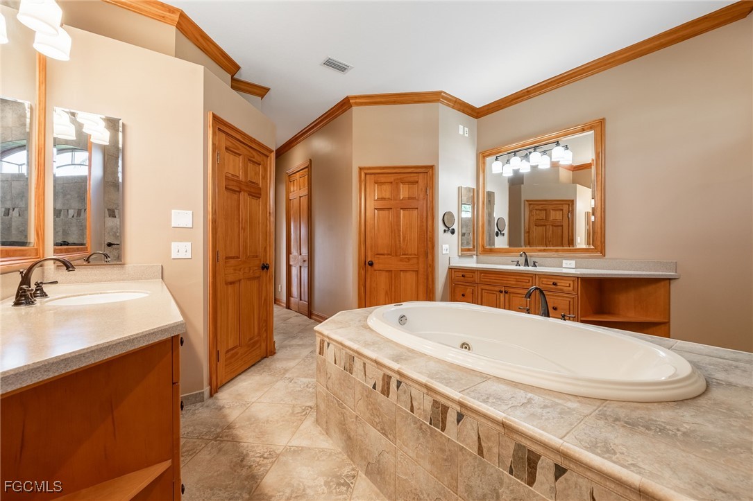 Step into luxury with this stunning 4-bedroom plus den, 4.5-bathroom custom home located on a double lot, 1 acre site in the desirable Hunters Glen neighborhood. From the moment you walk through the front door, you’ll be captivated by the 90-degree stacking sliding doors that seamlessly open the home to the saltwater pool area. Inside, you’ll find custom tile flooring throughout the main living areas and laminate wood plank floors in all bedrooms. The gourmet kitchen is a showstopper with a massive granite island, custom cabinetry, dual GE Profile refrigerators, gas stove, dual ovens and a wet bar with wine and ice maker which is perfect for entertaining. The spacious living area features a built-in entertainment center and real fireplace, adding warmth and charm. The master suite includes a bonus sitting area, while the luxurious master bath offers dual sinks, a Jacuzzi soaking tub, and a walk-in shower. Step outside to your private oasis featuring a sun deck, full pool bath with shower, and a built-in gas grill for outdoor gatherings. The walk-in laundry room includes a powder room and space for two washers and two dryers (gas or electric hookups). Upstairs, you’ll find a bonus room, ideal for a home office, gym, or media space. Additional highlights include a 3-car garage, 500 gal in ground propane tank, whole-house generator, and ample space to add an additional garage or workshop for your RVs, boats, or toys. This beautifully designed home combines comfort, craftsmanship, and functionality-offering everything you need to enjoy the Florida lifestyle to the fullest. This is a must-see!