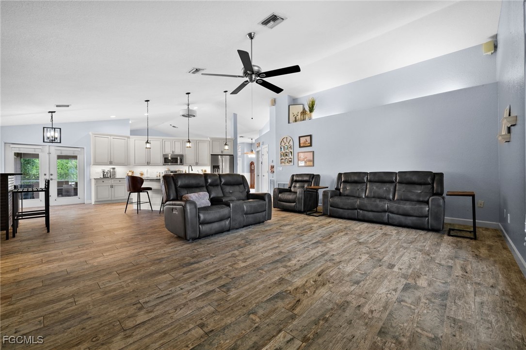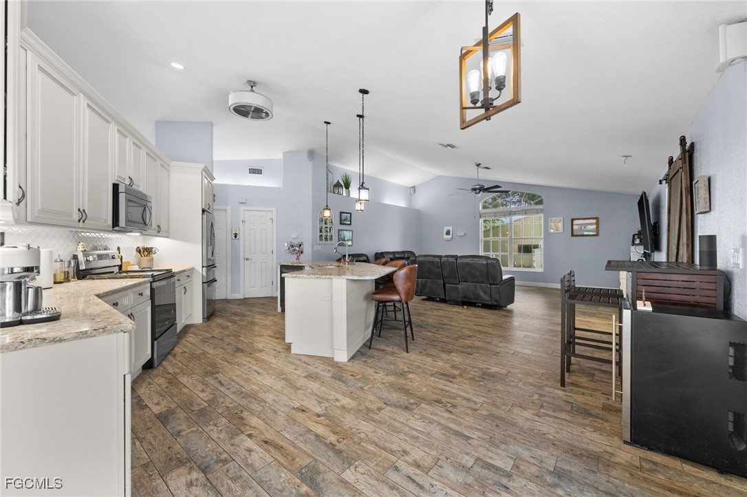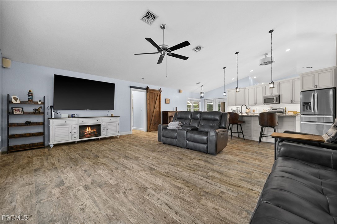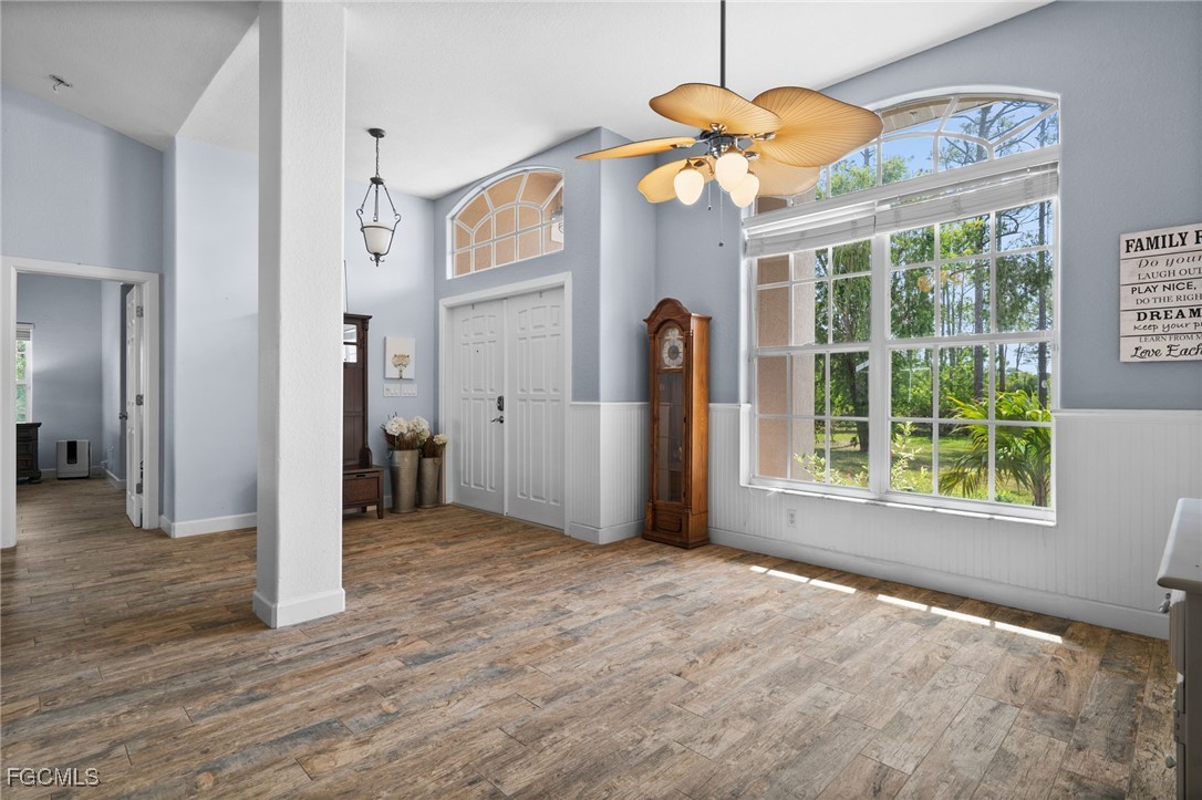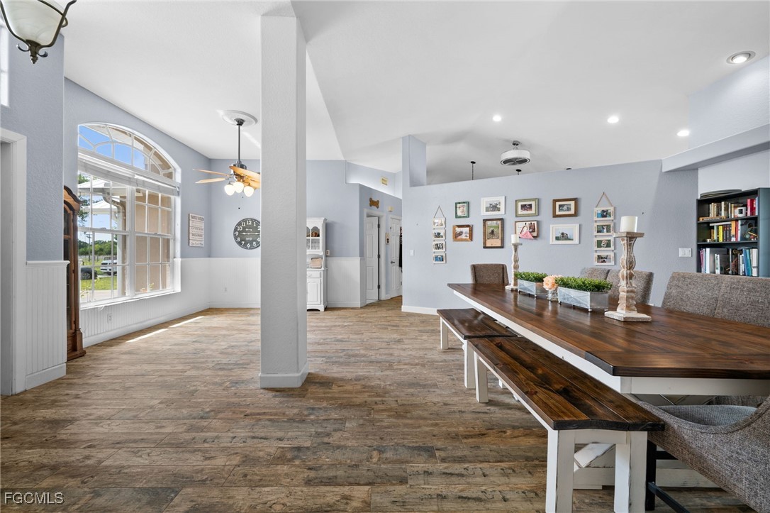 Welcome to 20885 Huffmaster Road! A rare opportunity to own 12.5 serene and fully-fenced acres in North Fort Myers, offering the ideal setting for equestrian living, agricultural pursuits, and peaceful country privacy. This spacious pool home offers over 2,500 sq ft of living space with 4 bedrooms, 3 bathrooms, and a climate-controlled and insulated 2-car garage. Inside, you’ll find a thoughtfully designed split-bedroom floor plan centered around a remodeled kitchen (2018) featuring quartz countertops, island with pendant lighting, stainless steel appliances, tile backsplash, and an inviting breakfast area. The primary suite is a retreat of its own, complete with high ceilings, French doors to the pool, dual walk-in closets, and a luxuriously updated spa-style bathroom boasting a soaker tub, three showerheads, LED accent lighting, Bluetooth speaker, beverage cooler, and chic tile accents. Step outside to your private outdoor oasis, featuring a screened lanai with sparkling pool and a large, covered space under truss for year-round outdoor living and entertaining. A spacious, separately fenced turf area creates the ultimate pet paradise or a private play yard. Improved with your horses and livestock in mind, this sprawling property includes a new pole barn with 5 stalls, a dedicated 20x12 feed shed, detached garage/workshop for storage, RV pad with 50-amp hookup, chicken coop, and upgraded lighting at the entry. Upgrades provide peace of mind, including a new Generac whole-house generator with 500-gallon buried propane tank (2025), mini-split A/C in garage (2025), newer hot water heater (2023), newer pool pump (2024), RO system in kitchen, irrigation system, LED color-changing pool lighting, new electric run to pastures and gate (2025), and a metal roof. And best of all, you won't have to deal with dirt roads to access the property! Homes on acreage of this caliber are incredibly hard to find in Southwest Florida, offering privacy, land, and an equally impressive concrete-block home. Don’t miss this exceptional opportunity. Schedule your private showing today and experience everything 20885 Huffmaster Road offers!