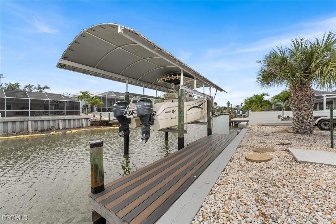 Boaters will love the 10,000 lb boat lift with new cover, bunks, and motors. A new white screen enclosure for the pool is coming soon!