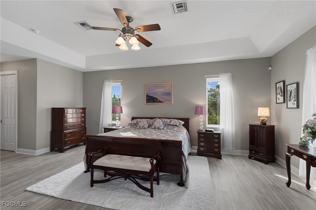 The oversized primary suite serves as a private retreat, offering direct access to the lanai and pool area. The ensuite bathroom includes dual vanities, a soaking tub, and a separate shower for a spa-like experience. One of the guest bedrooms also has its own ensuite, perfect for use as an in-law suite, while the remaining two bedrooms provide plenty of flexibility for guests or a home office.