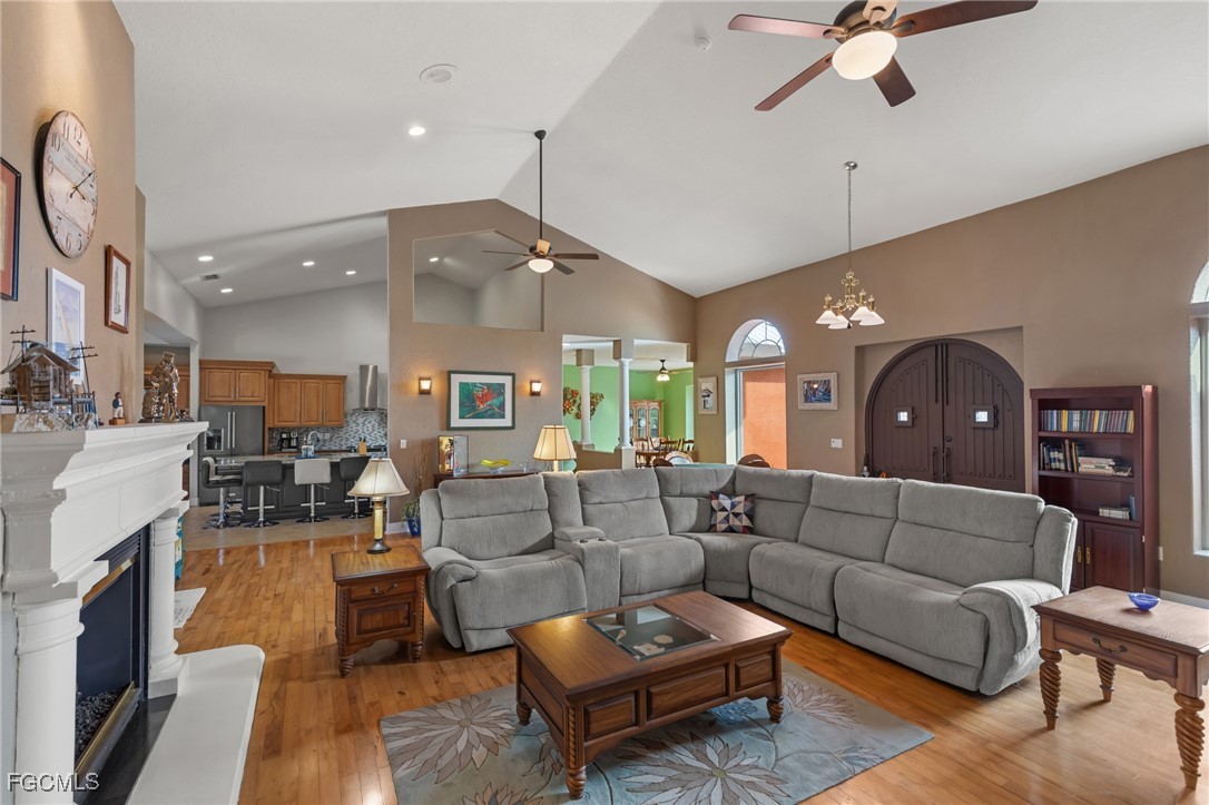 Set on more than 3 acres, this impressive 4-bedroom, 5-bathroom estate (3 full, 2 half) delivers a rare mix of luxury, peace, and space for equestrian living—all without HOA restrictions. Inside, soaring vaulted ceilings and an elegant fireplace anchor the expansive great room, creating a perfect setting for both relaxed living and entertaining. Hardwood flooring flows throughout, adding warmth and natural sophistication.