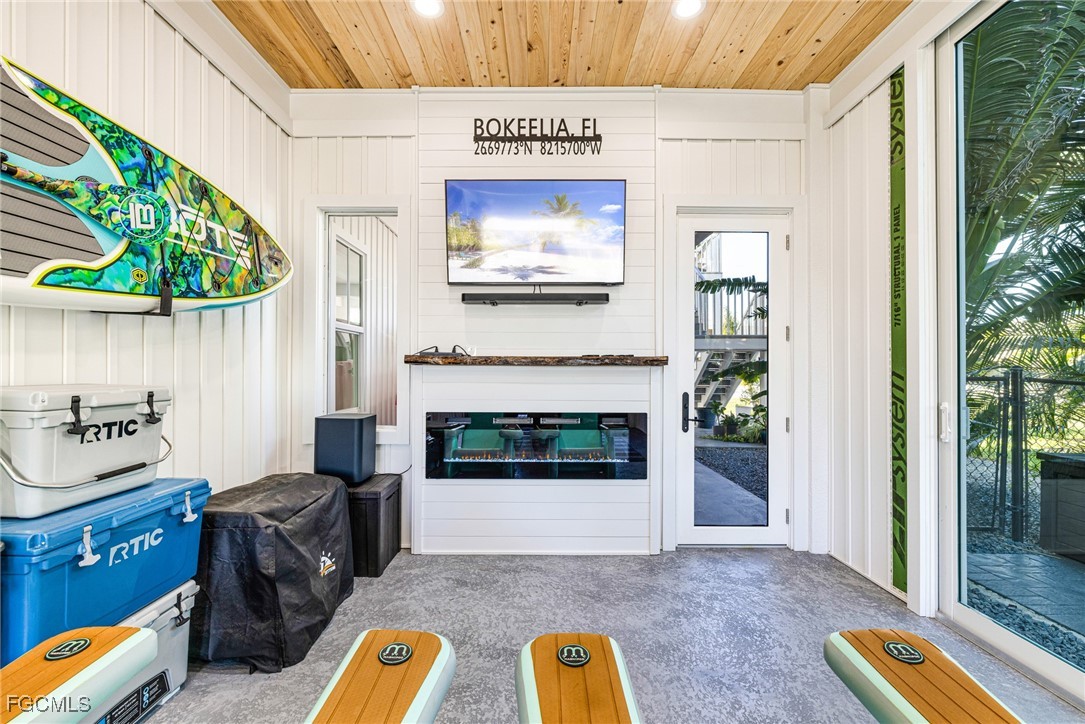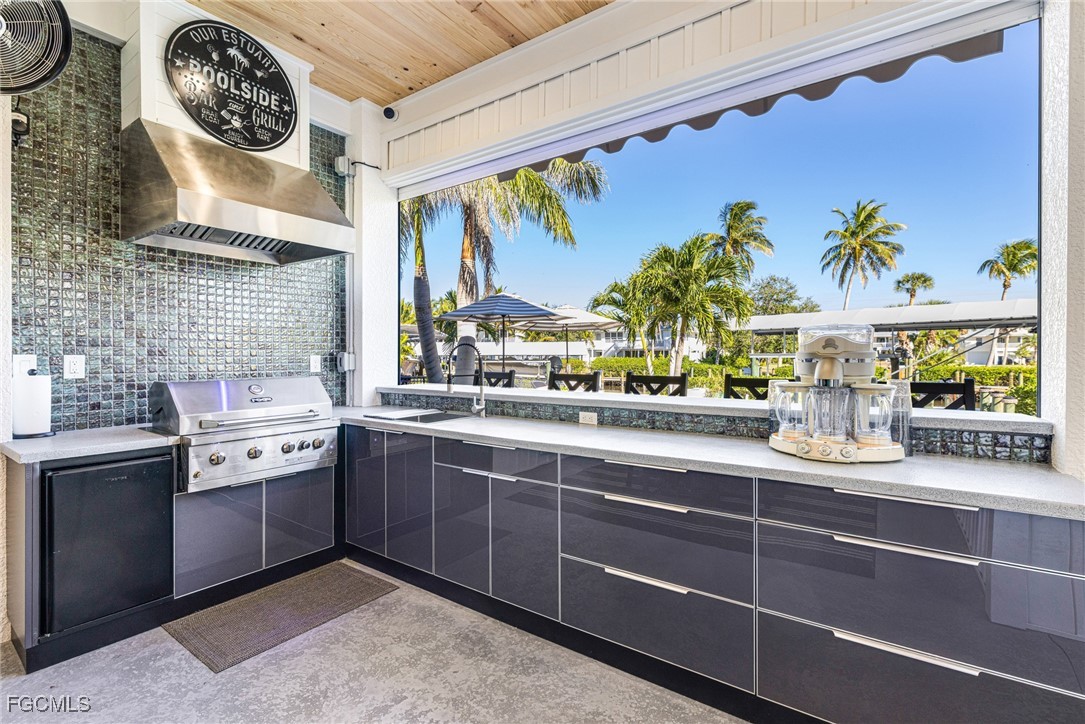 The home features top of the line, custom cabinetry in both the Kitchen and closets. Entering this home to the gorgeous wood flooring and soaring cypress ceilings defines luxury coastal living to the finest. The best part? After a day of boating, you can jump in the pool and grill your catch in your outdoor kitchen which includes a bar, dining area, TV, and fireplace, perfect for entertaining. Additionally, there’s a spacious downstairs guest quarters or party room. This home is designed for easy maintenance, allowing you to focus on enjoyment.