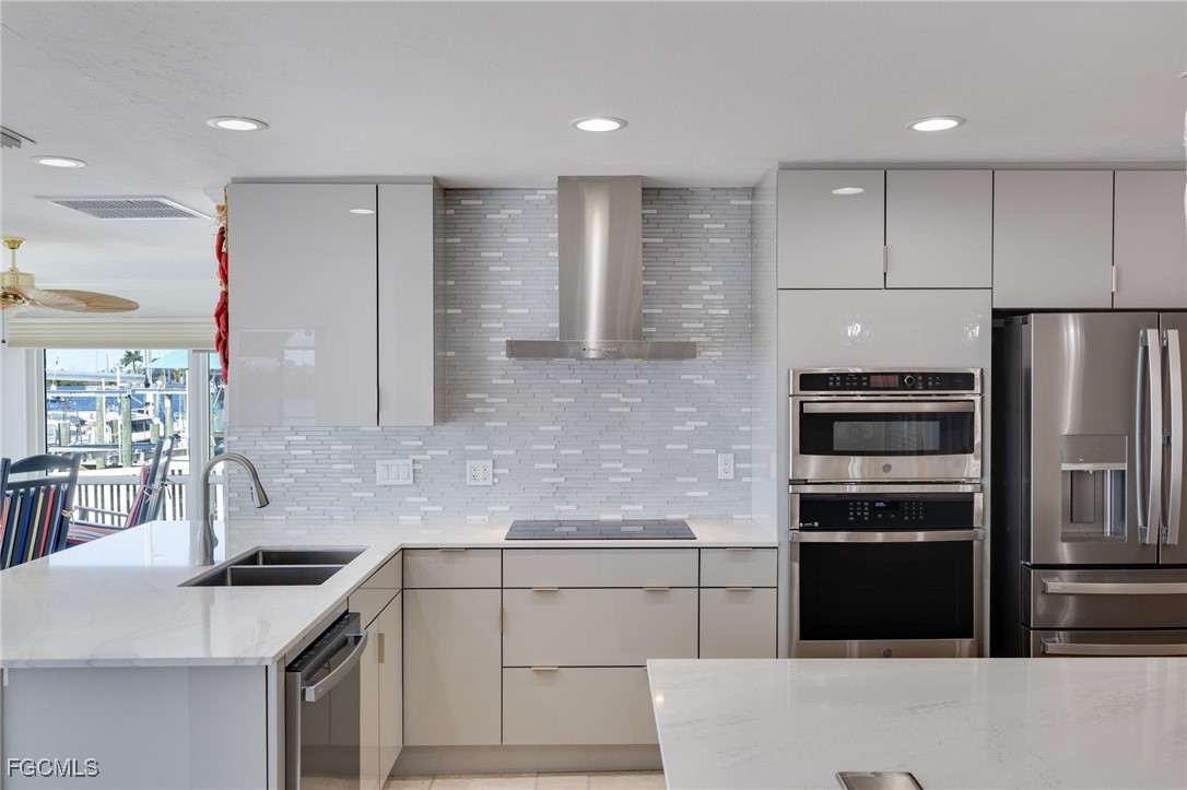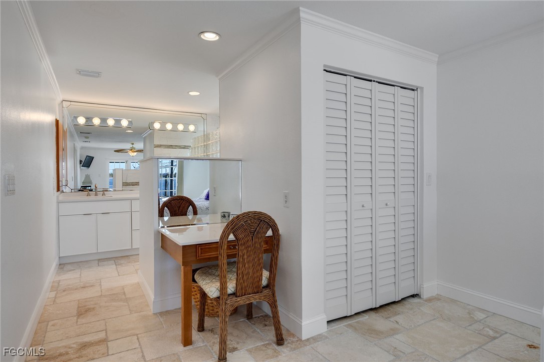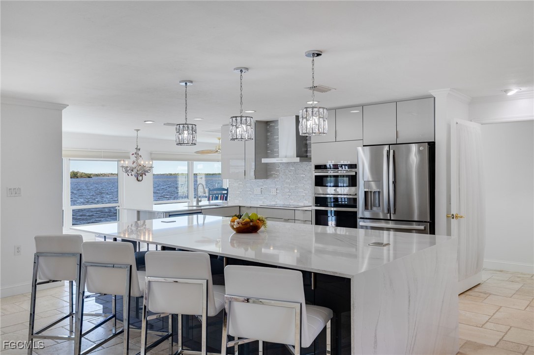 Absolutely stunning property! From the polished travertine throughout the entire home, modern upscale furniture-grade cabinets (Thomasville) with an incredible amount of storage, to the unmatched phenomenal sunsets every night---from your pristine pool if you'd like! THIS is the island home we dream of! The kitchen boasts gorgeous, white Cambria quartz, including a huge island with spectacular waterfall design that's seen the moment you walk in the door. All appliances are new GE Profile and the microwave utilizes Advantium technology making it dual purpose as a second wall oven as well. Bathrooms have been beautifully upgraded and all windows feature custom blinds, some electric. The resort-style pool has an integrated spa at one end and an integrated water feature at the other, with unobstructed views across the bay! The entire home is concrete block and secure with impact windows and doors, and would be a perfect candidate for flood panels----the home flooded minimally and was professionally remediated. Solar panels allow for year around average electric bills of $110 with credits enrolled in the LCEC Net Metering Program. New AC and an additional mini-split system in the garage expand your ability to "project through all seasons" as well in the oversized garage. Priced to sell, this home is a must-see.