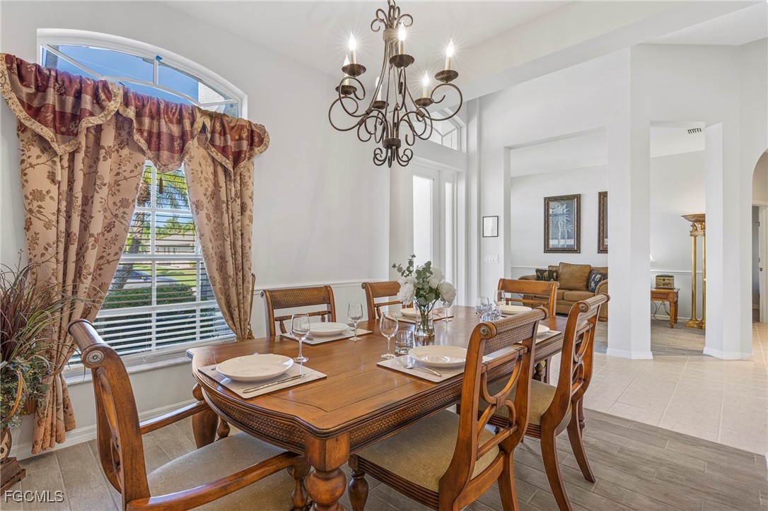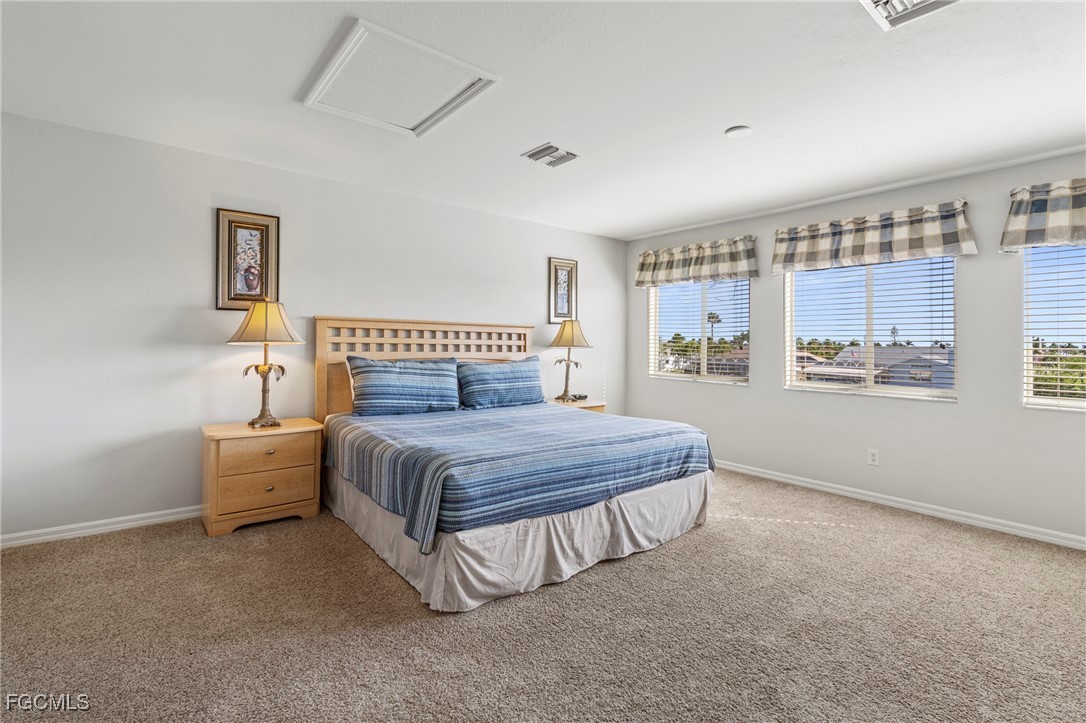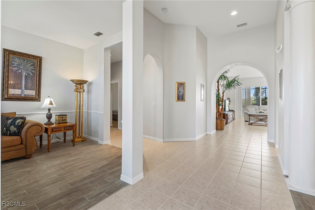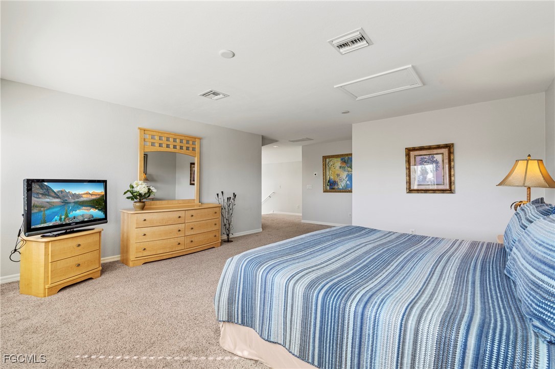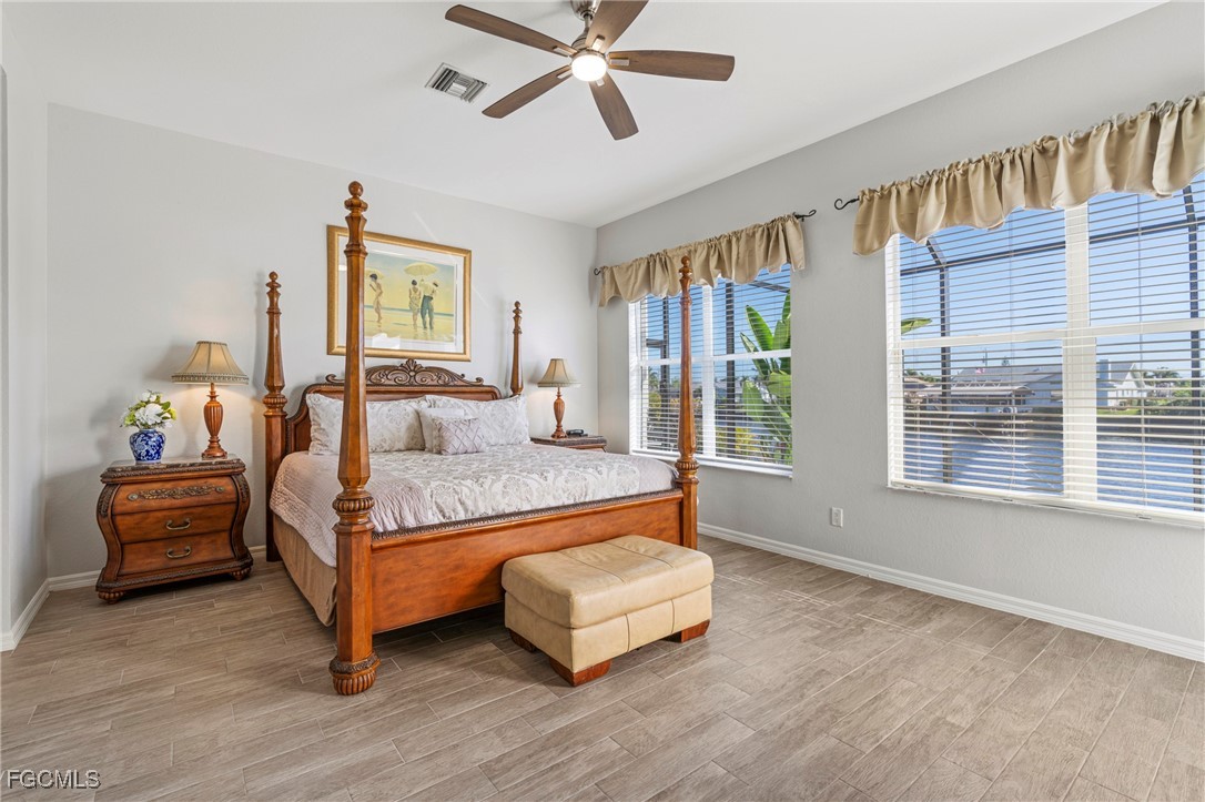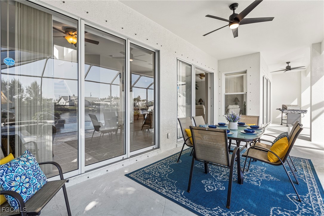 TURNKEY! This super spacious 4 bedroom+den/3.5 bathroom villa is located in beautiful SW Cape Coral off of El Dorado Pkwy. The lot is located right on the Merrick Canal, which is one of the widest canals in the Cape. You'll enjoy gorgeous views of the infinity pool, the spa, and the beautiful canal. You’re only 5 minutes away from enjoying Cape Harbour Marina, with all the restaurants, bars, shops, and the beautiful luxurious boats in the marina. 2 primary en-suite bedrooms. NEW ROOF 2023. Was NOT flooded during Ian.