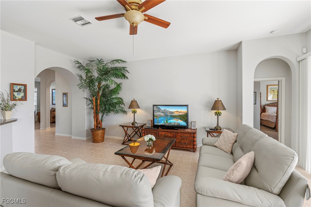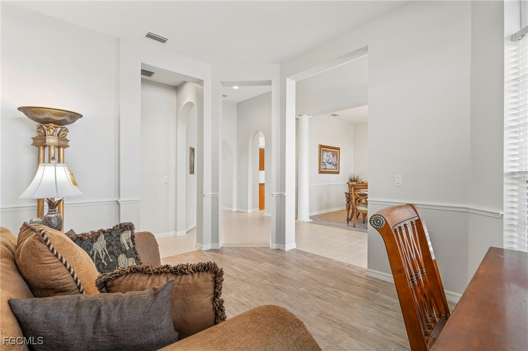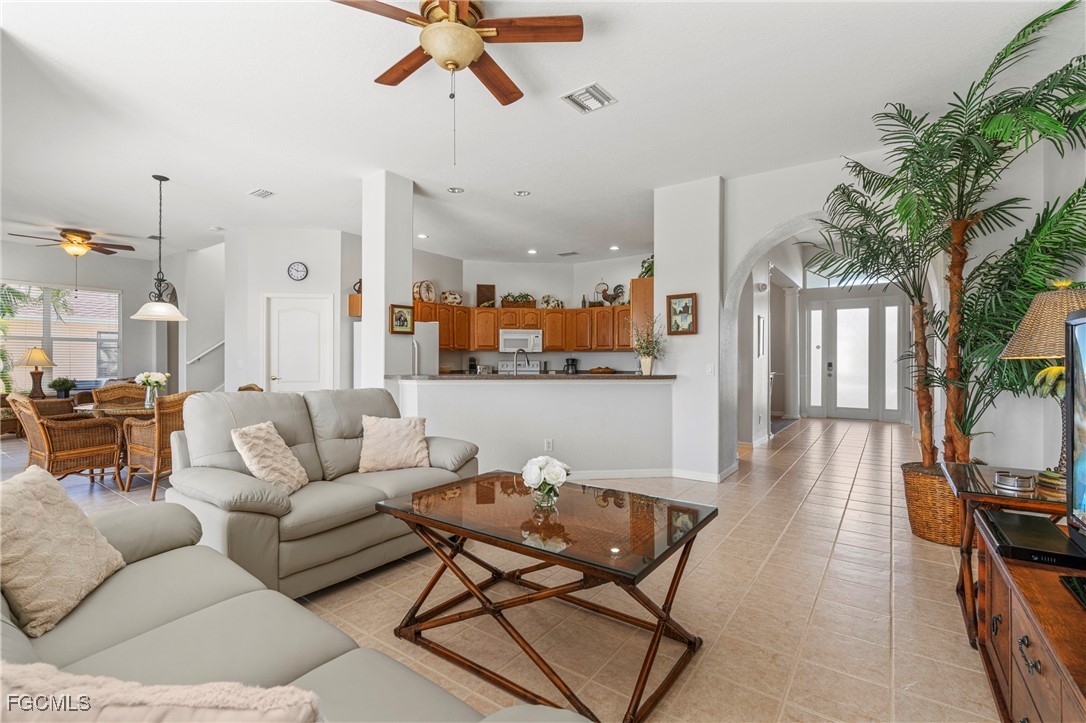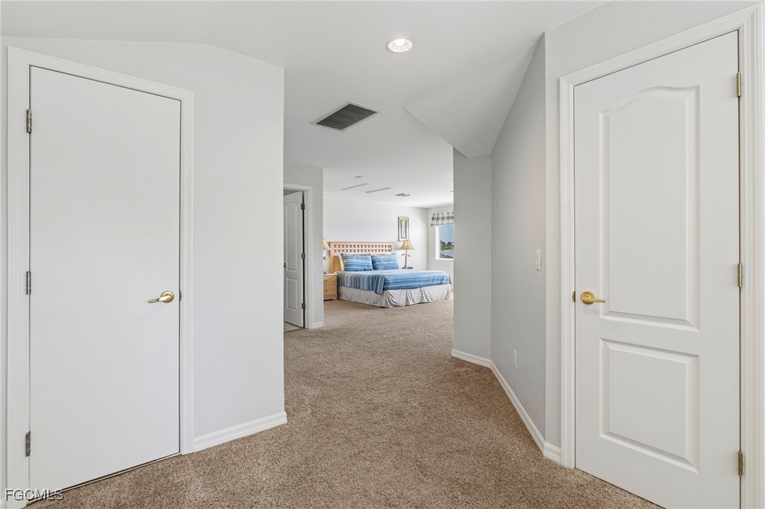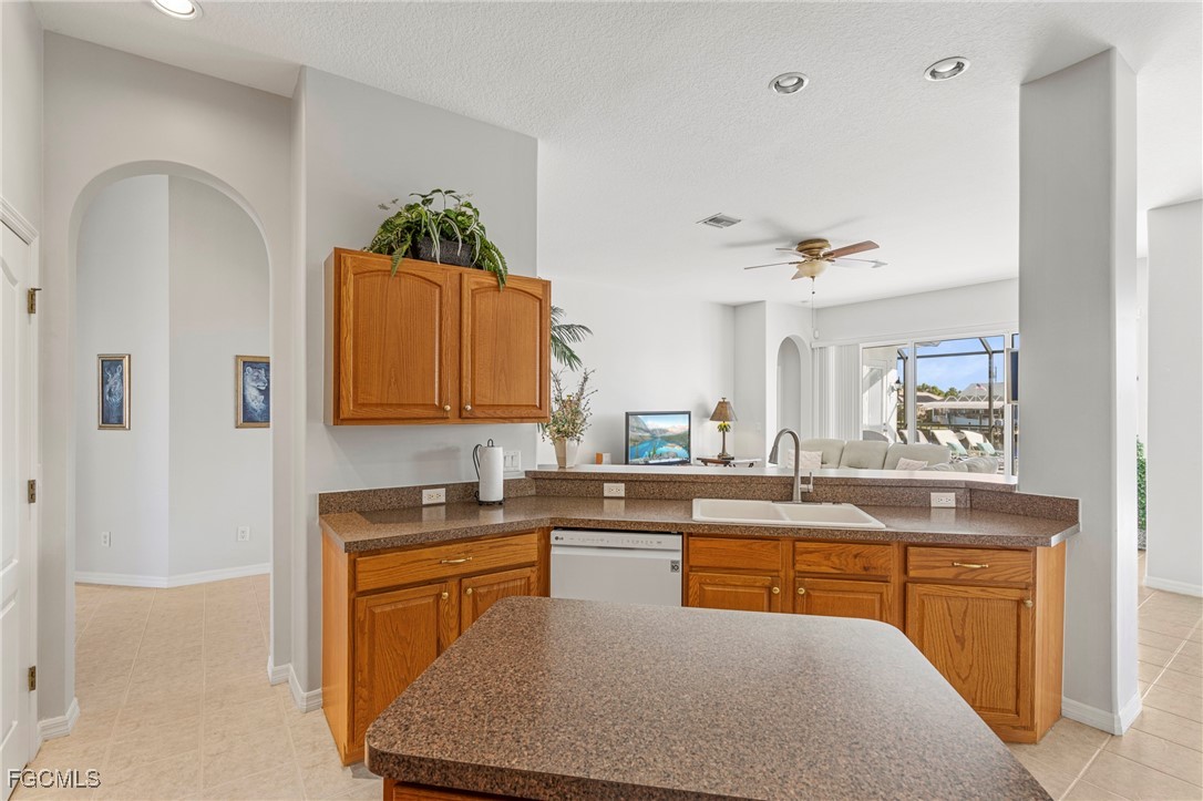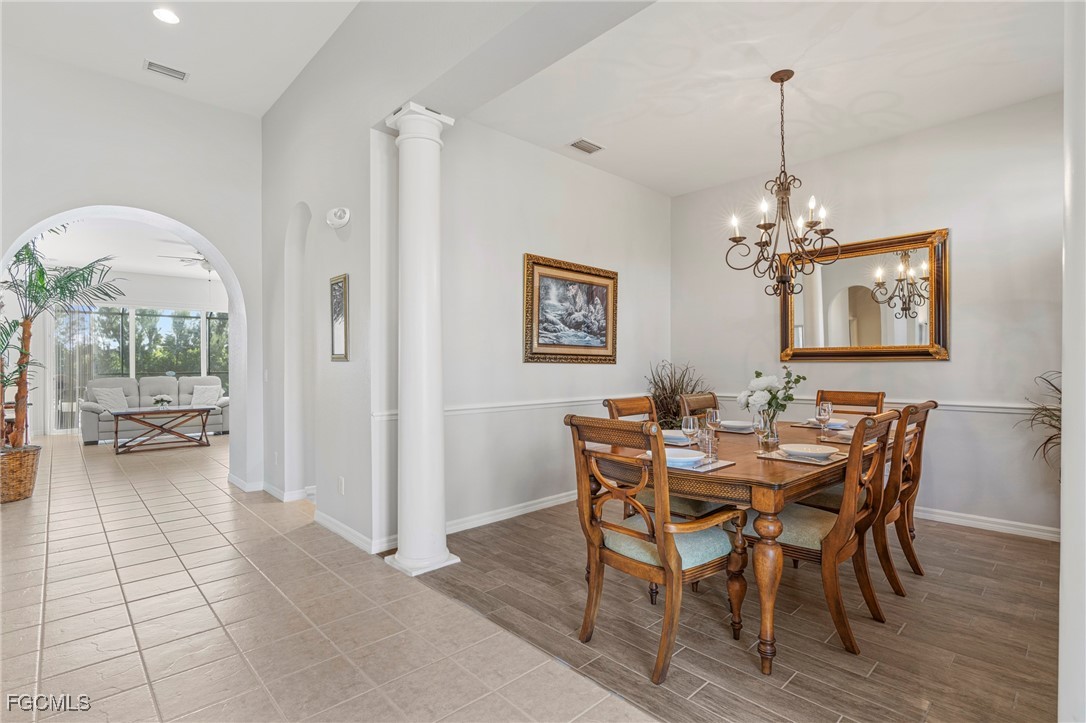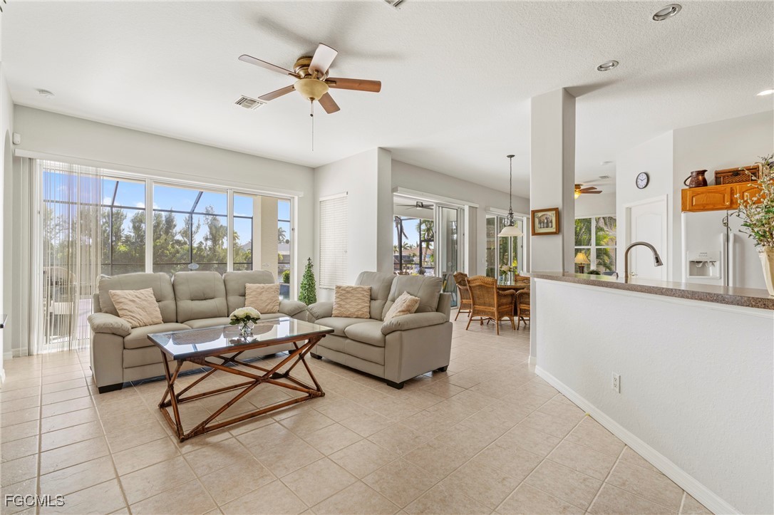 TURNKEY! This super spacious 4 bedroom+den/3.5 bathroom villa is located in beautiful SW Cape Coral off of El Dorado Pkwy. The lot is located right on the Merrick Canal, which is one of the widest canals in the Cape. You'll enjoy gorgeous views of the infinity pool, the spa, and the beautiful canal. You’re only 5 minutes away from enjoying Cape Harbour Marina, with all the restaurants, bars, shops, and the beautiful luxurious boats in the marina. 2 primary en-suite bedrooms. NEW ROOF 2023. Was NOT flooded during Ian.